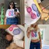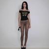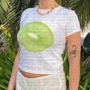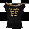 Playera de Verano de un Hombro con Estampado de Letras de Manga Corta para Mujer 2025 Nuevo Estilo Sexy Transfronterizo Europeo y Americano Top Corto