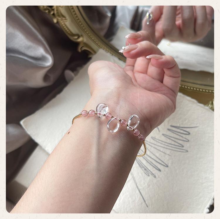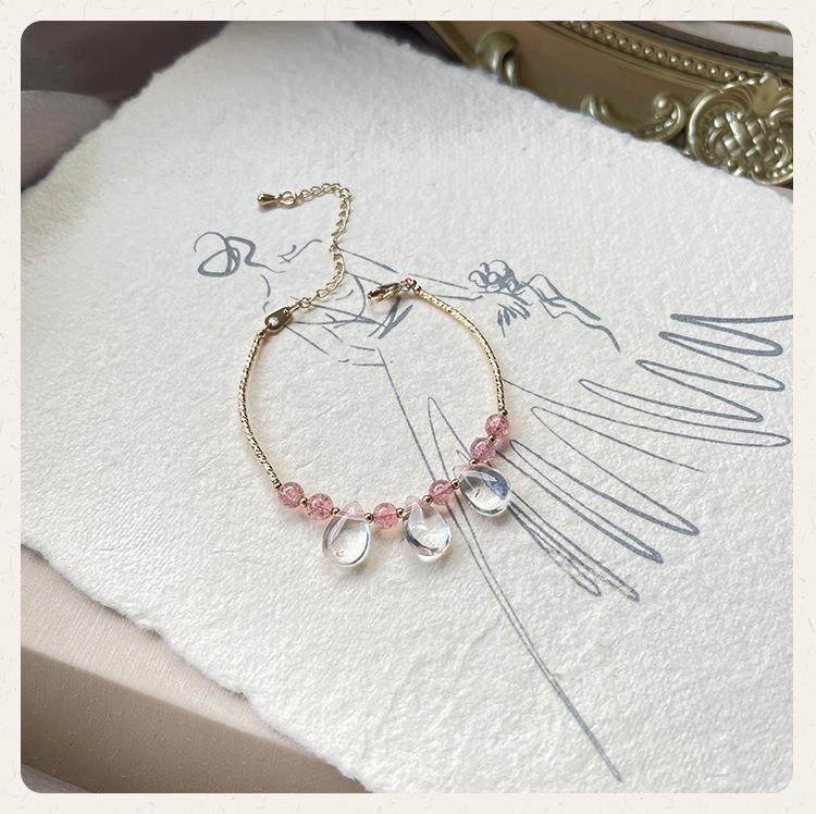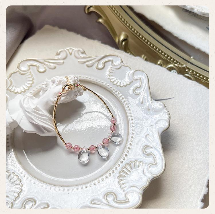 Pulsera de cristal natural para mujer, pulsera de cristal de fresa, cristal blanco, gota de agua, estilo ins, exquisita, linda, mano pequeña, delgada