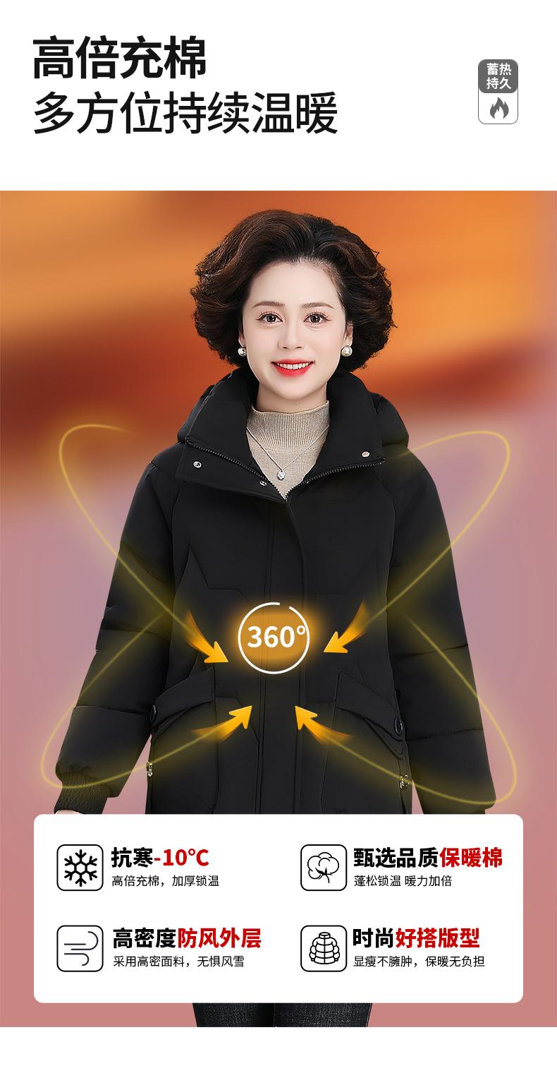 Chaqueta acolchada de algodón para personas de mediana edad y mayores, otoño e invierno 2024, nueva chaqueta acolchada de algodón para mujer, invierno, madre, estilo extranjero, abrigo acolchado de algodón, talla grande