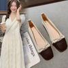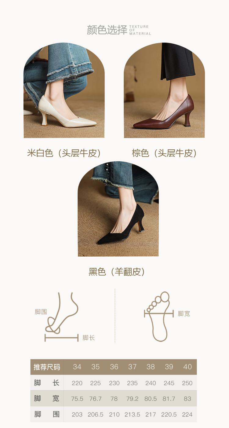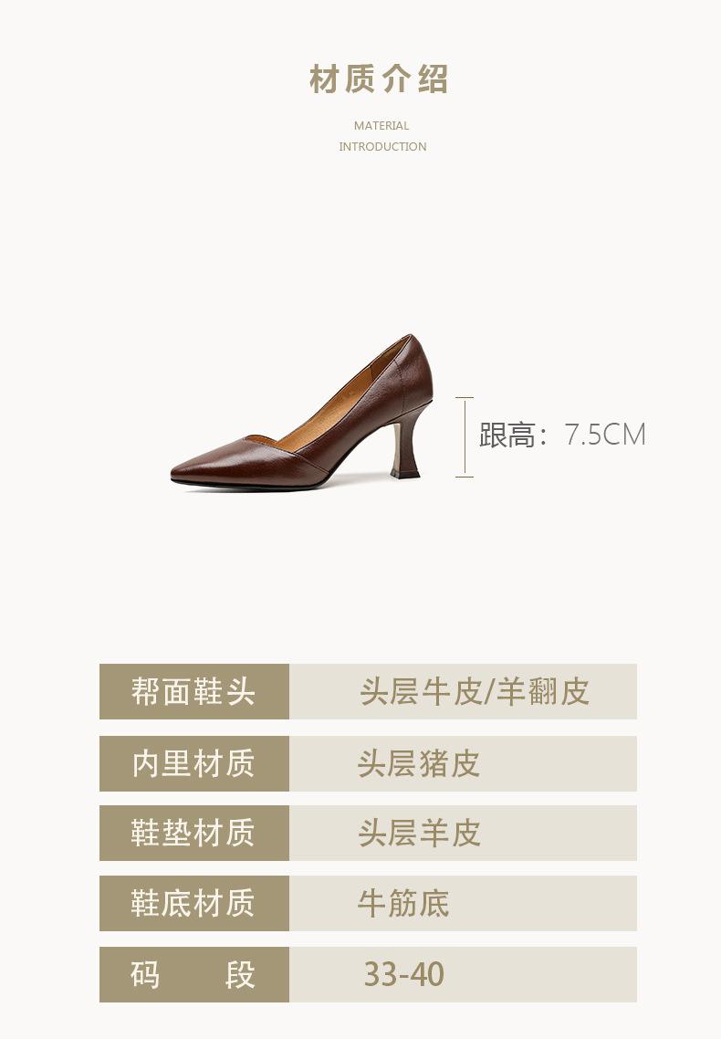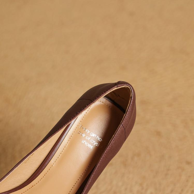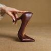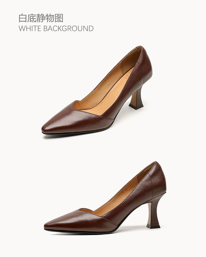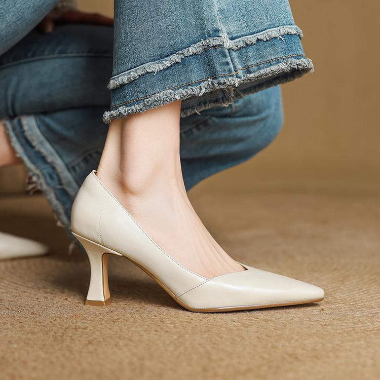 Zapatos de Cuero Pequeños de Tacón Grueso Cómodo de Punta para Mujer, Moda Nueva, Talla Grande, Escote Bajo, Tacones Altos Poco Profundos