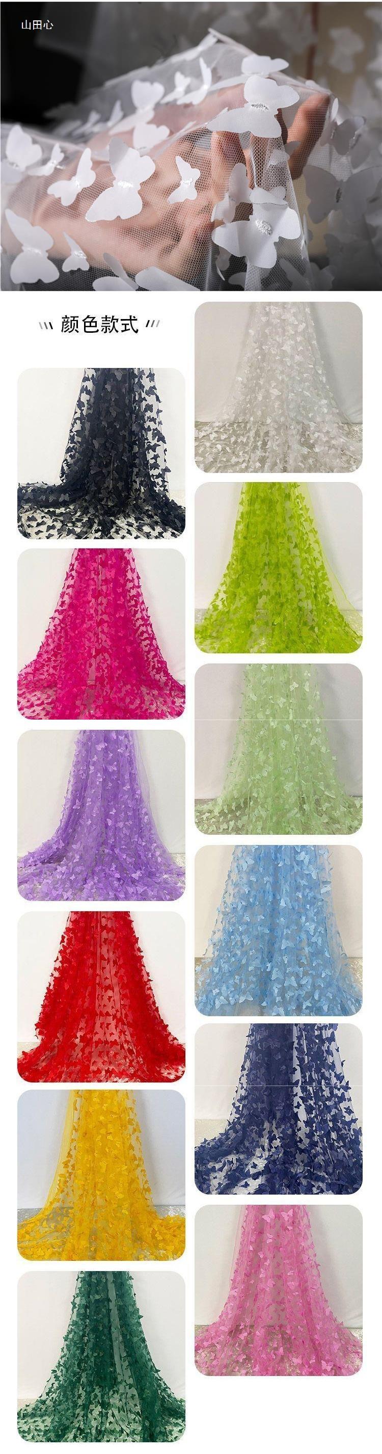 Encaje de Ensueño Mariposa Malla Mariposa Voladora Tridimensional Nuevo Encaje Creativo Bordado Tela de Hilo Traslúcido