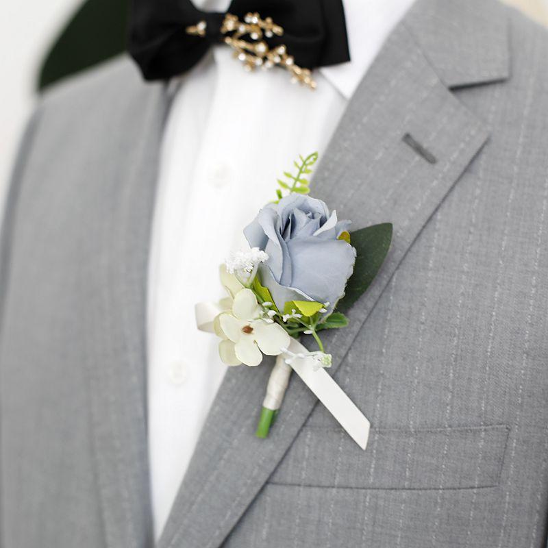 Corsage de Boda para Padrinos y Novio, Flor de Muñeca de Boda de Rosa Artificial para Novia y Dama de Honor, Decoración Floral Empaquetada