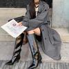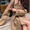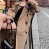 Abrigo para Mujer Estilo Nuevo Primavera y Otoño 2025 Forma Solapa Grande Doble Botonadura Largo Medio Estilo Coreano Gabardina Abrigo de Mujer