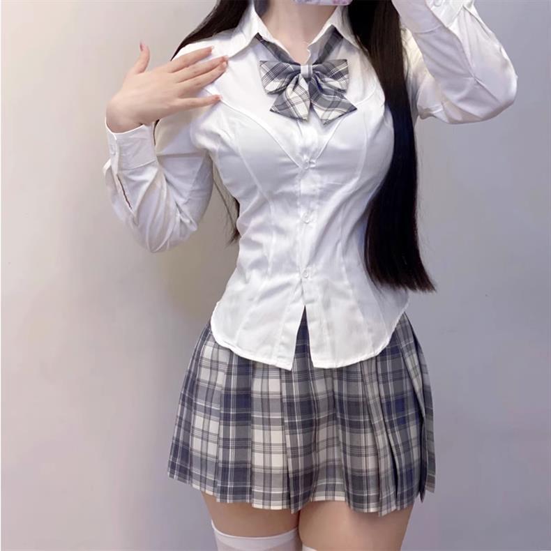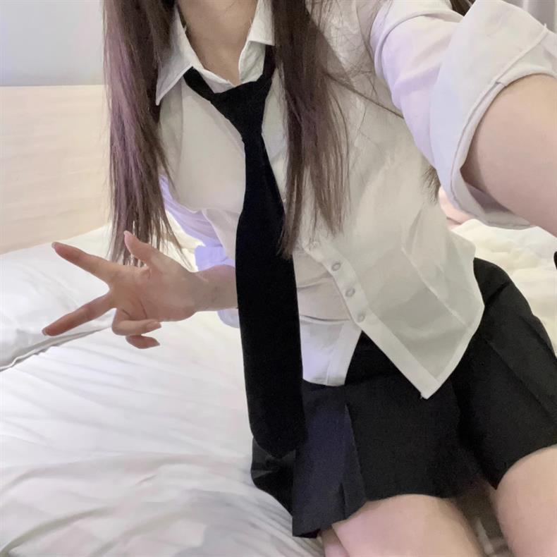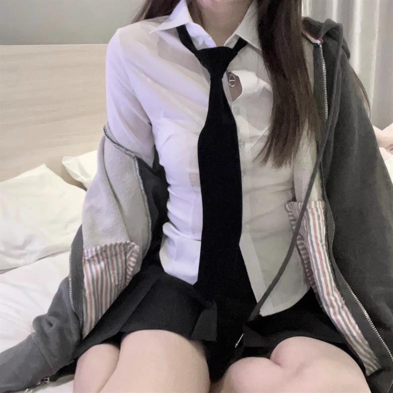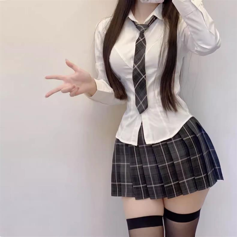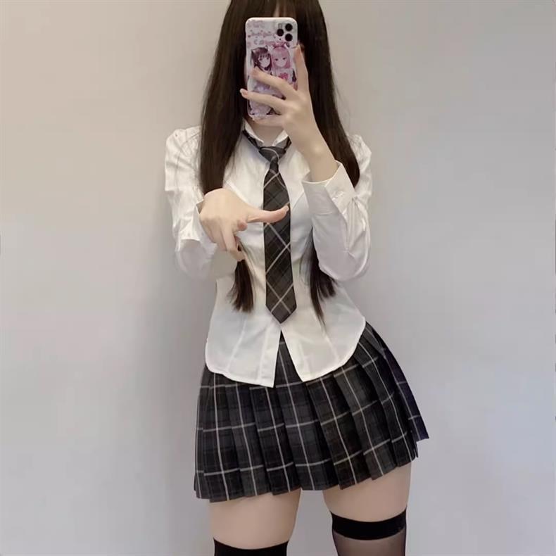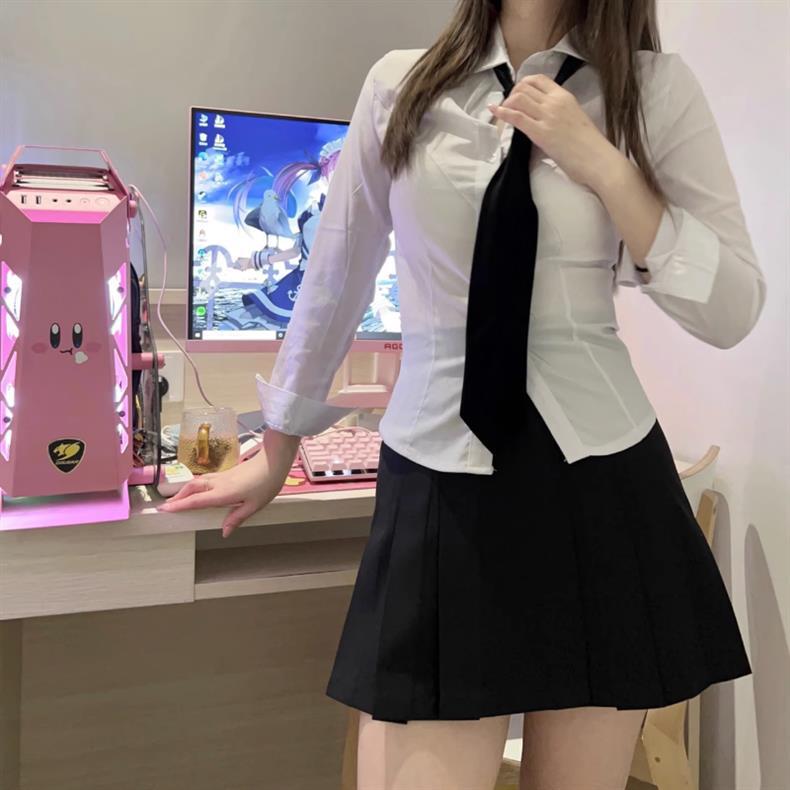 Camisa negra de seda ajustada a la cintura, traje de falda de uniforme JK, conjunto completo de verano, puro, sexy, chica hot, genuino, dulce y picante, traje de tres piezas