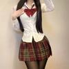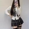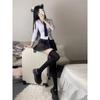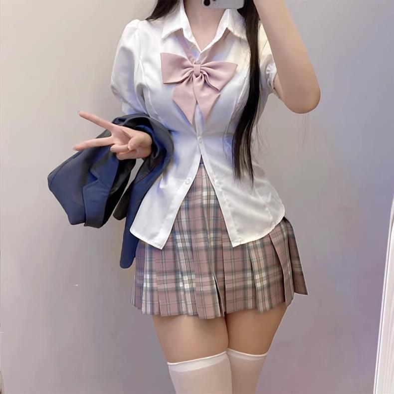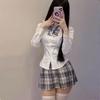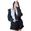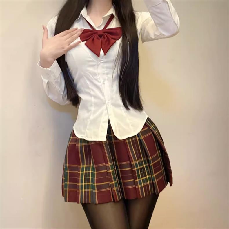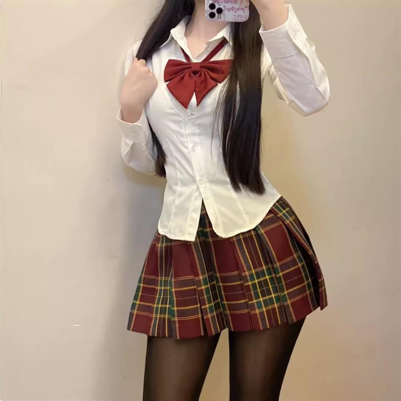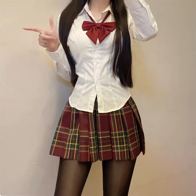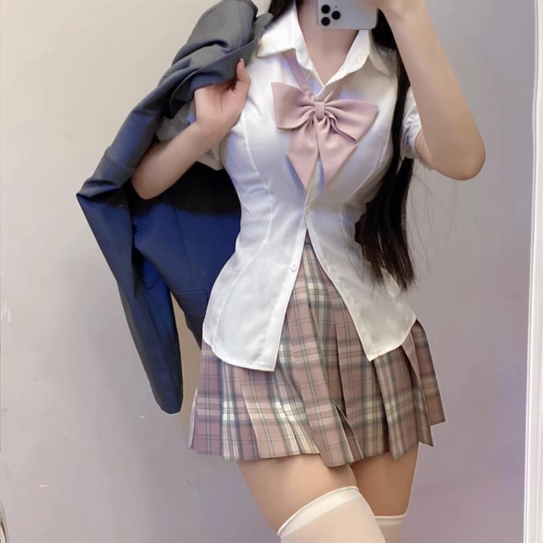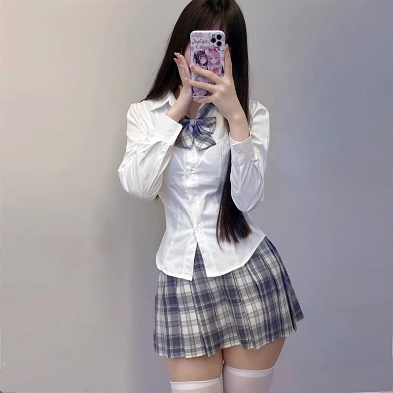 Camisa negra de seda ajustada a la cintura, traje de falda de uniforme JK, conjunto completo de verano, puro, sexy, chica hot, genuino, dulce y picante, traje de tres piezas