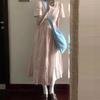 Verano 2025 Nuevo Vacaciones Junto al Mar Super Guapo Vestido Largo Delgado Elegante Francés Rosa Vestido con Lazo Mujeres