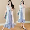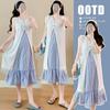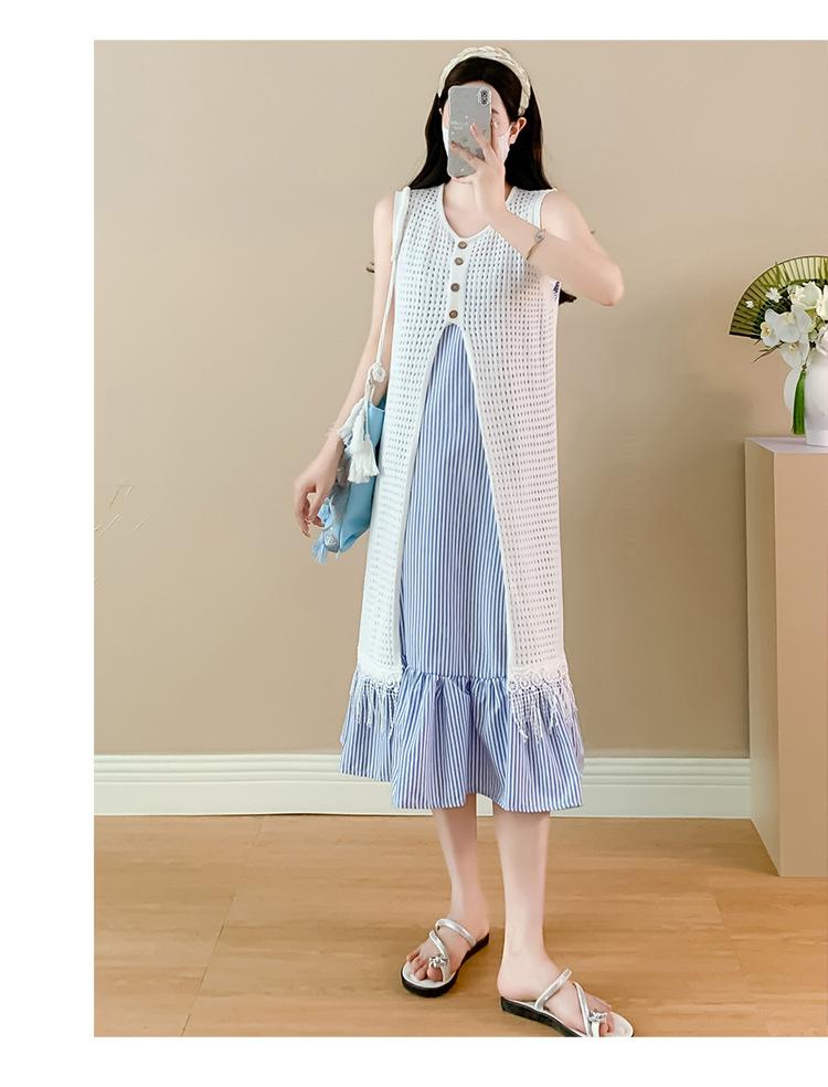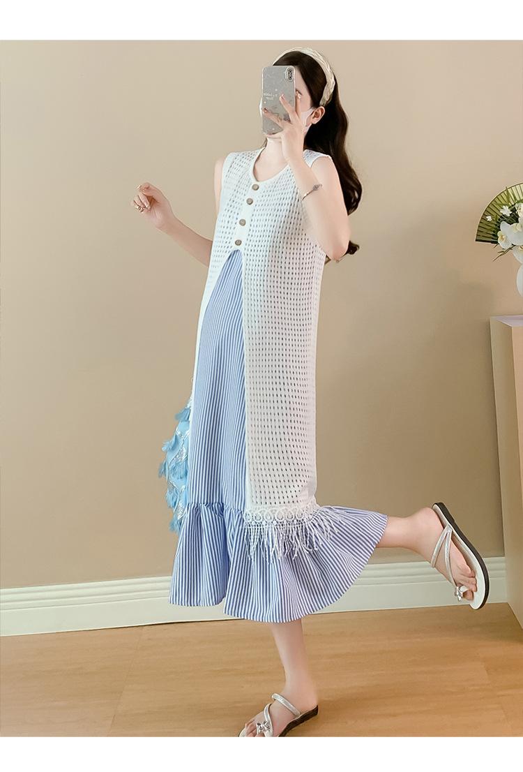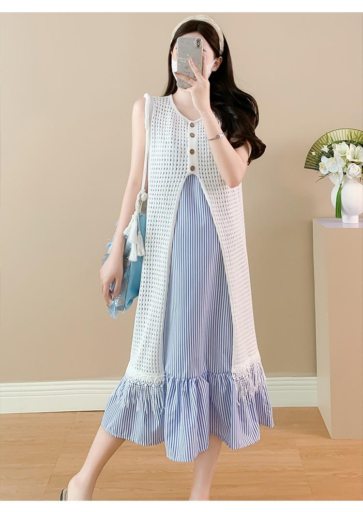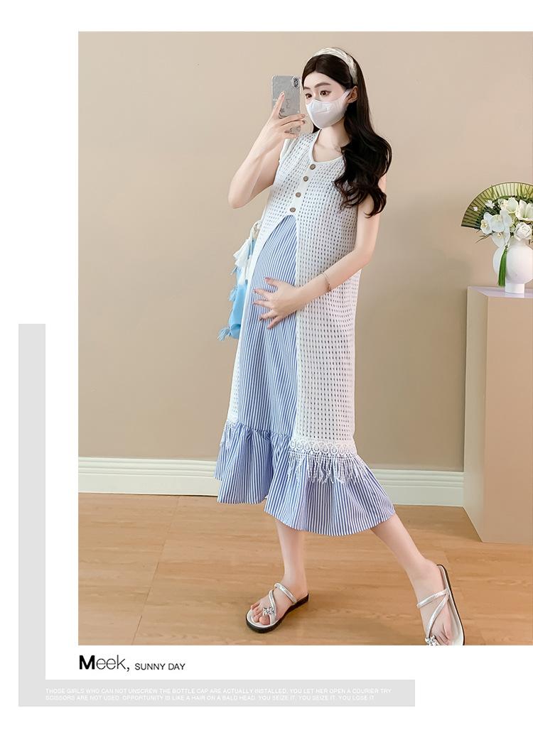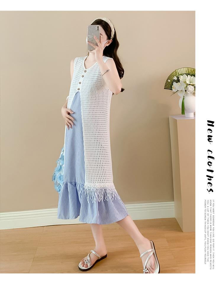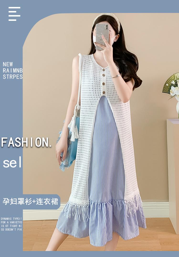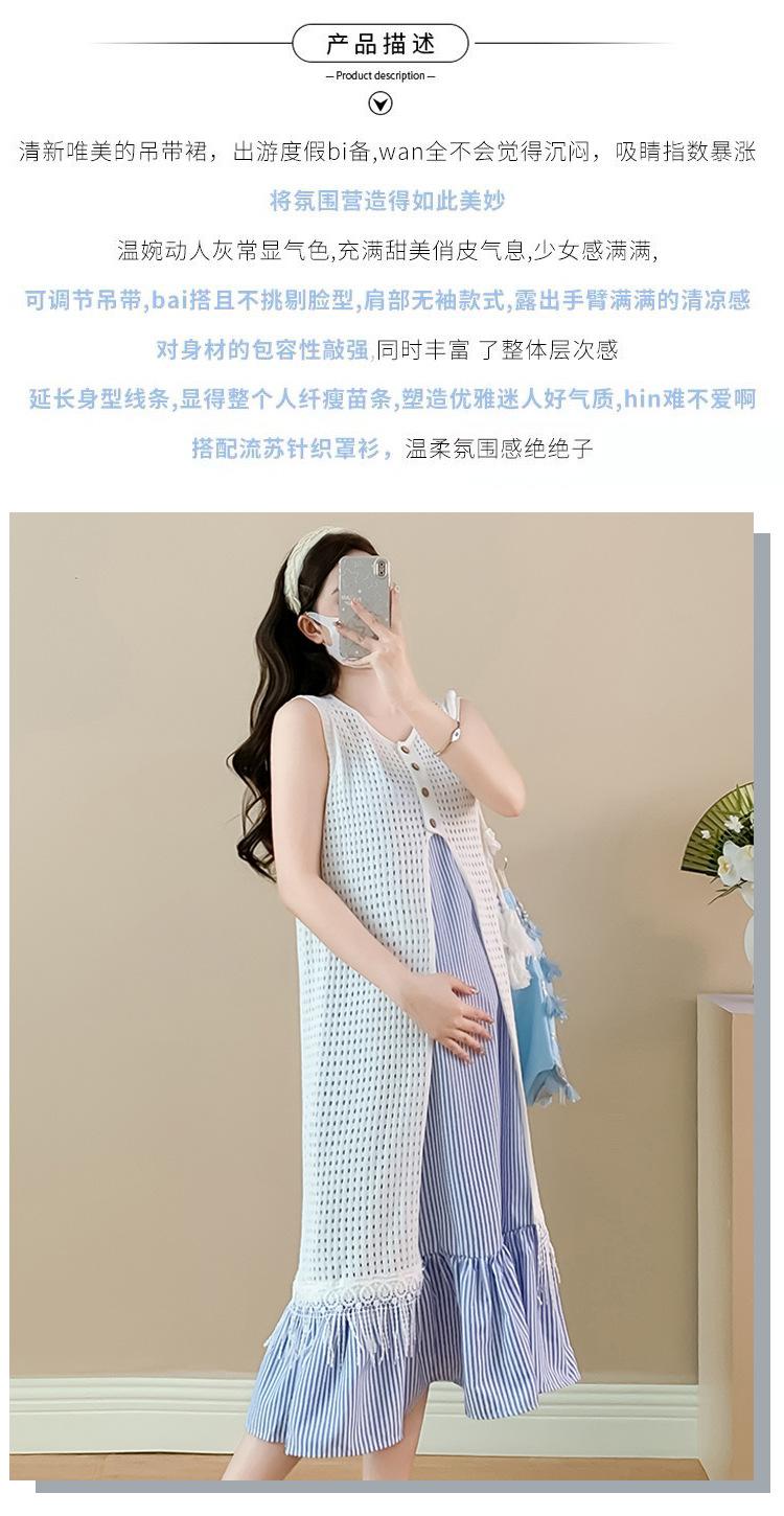 Maternidad 2025 Verano Nuevo Estilo Bolsos Francés Suelto Falda Cubre Vientre Conjunto de Dos Piezas Vestido de Mujer Embarazada