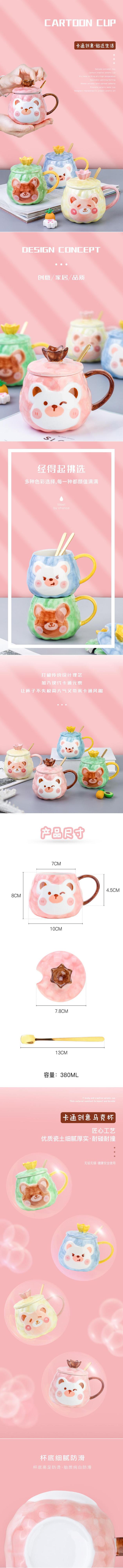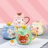 Taza de Agua Creativa Taza de Oso con Tapa Cuchara Femenina Taza de Cerámica Linda Gran Capacidad Taza de Leche de Alto Valor para Uso Doméstico