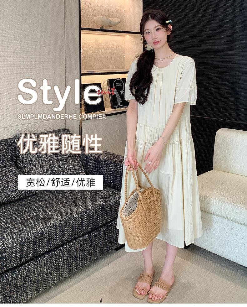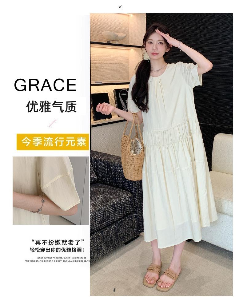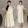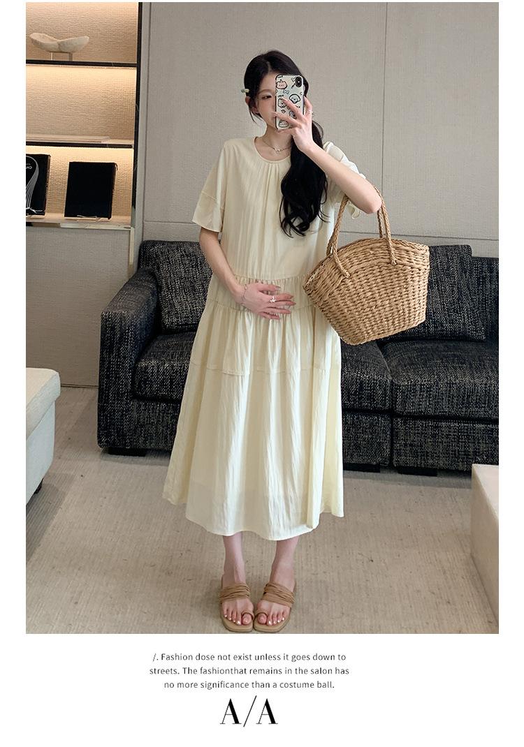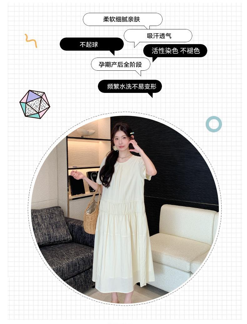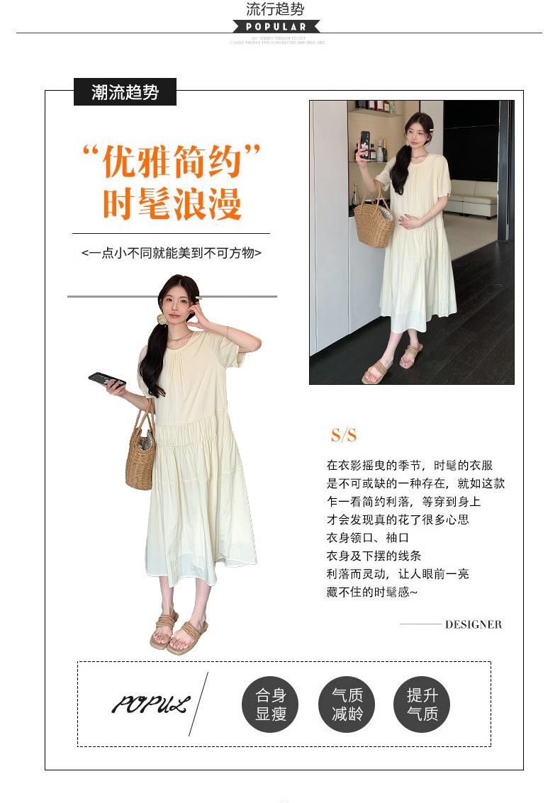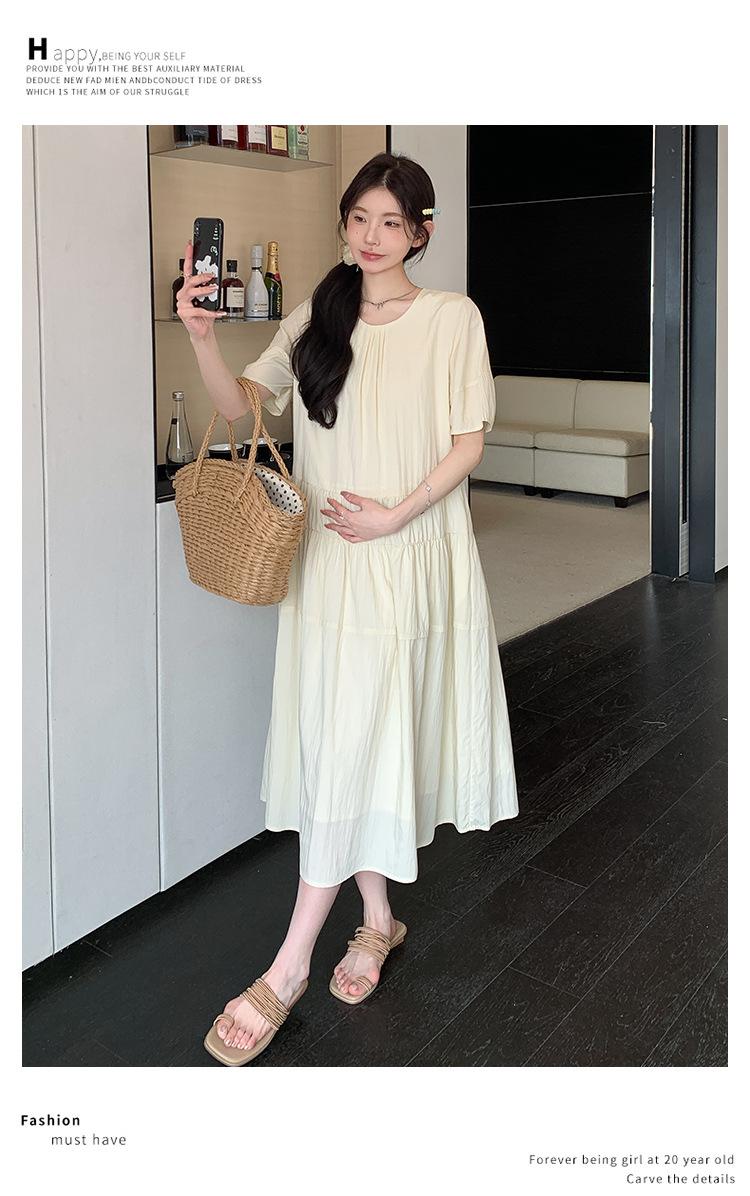 Maternidad 2025 Verano Nuevo Estilo Coreano Temperamento Simple Media Longitud Suelto Talla Grande Vestido para Mujeres Embarazadas