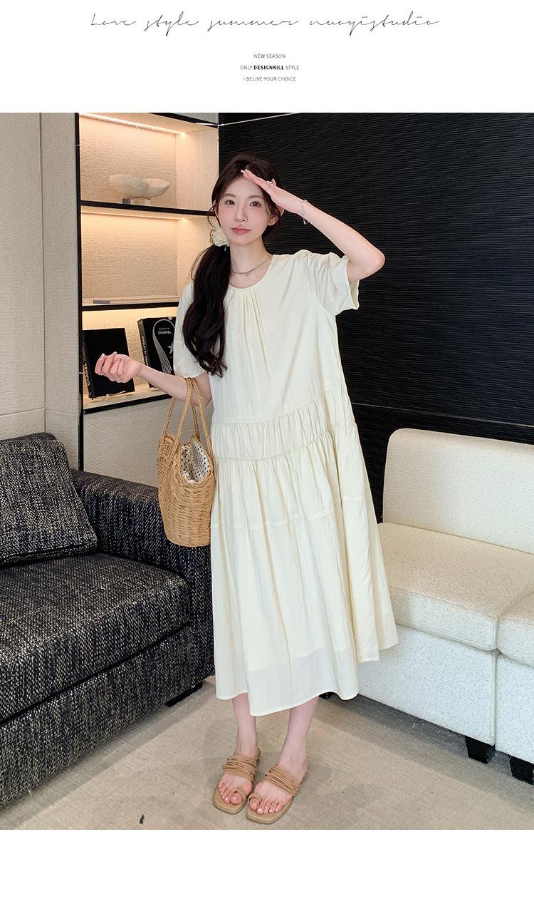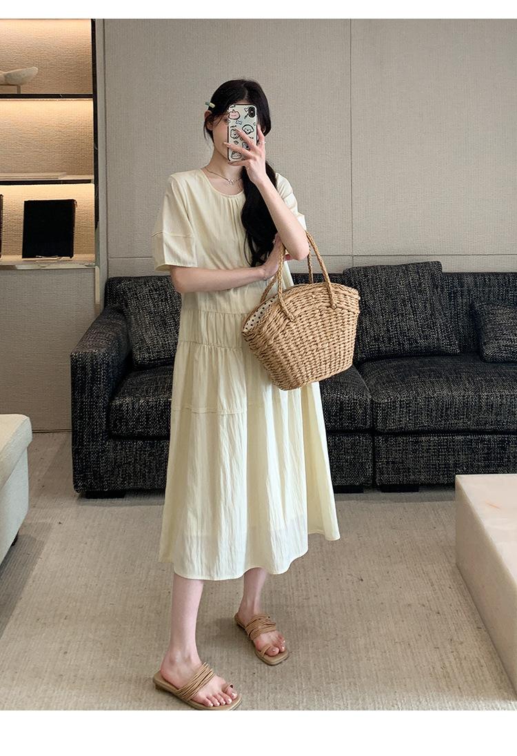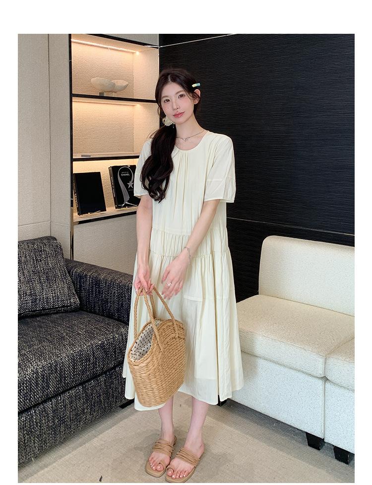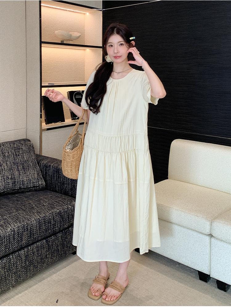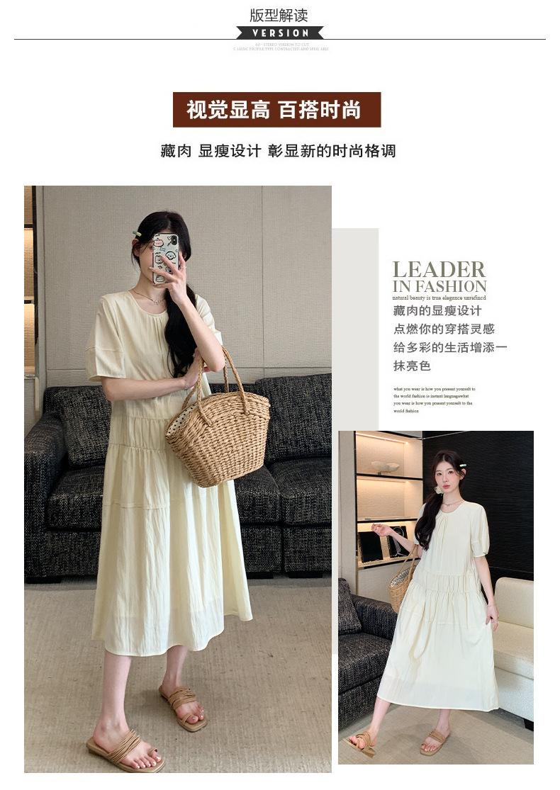 Maternidad 2025 Verano Nuevo Estilo Coreano Temperamento Simple Media Longitud Suelto Talla Grande Vestido para Mujeres Embarazadas