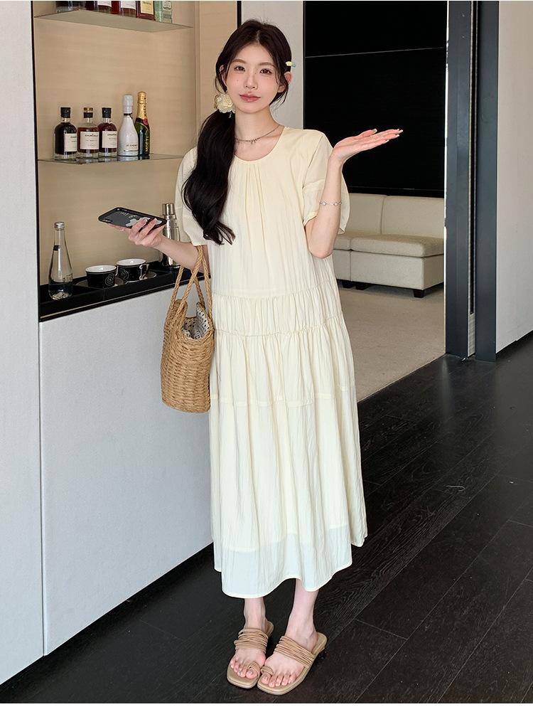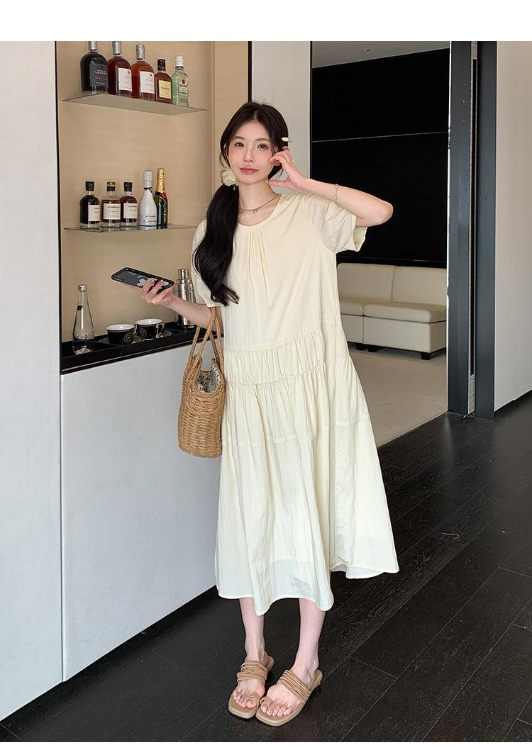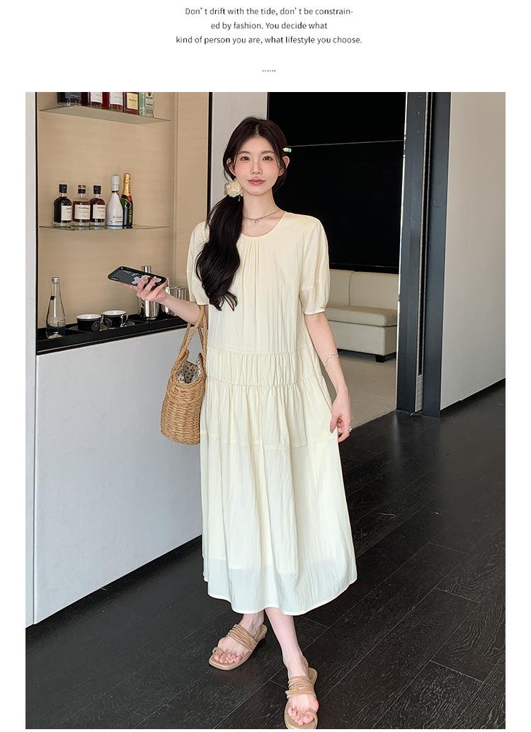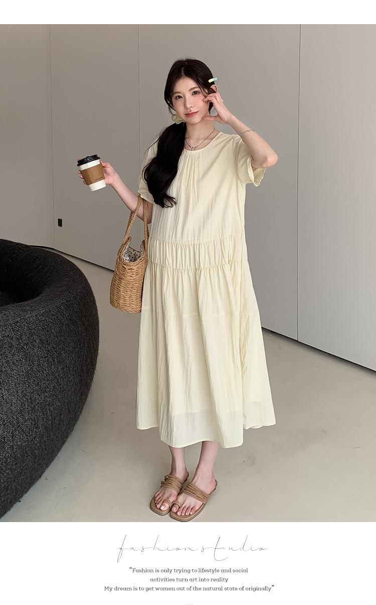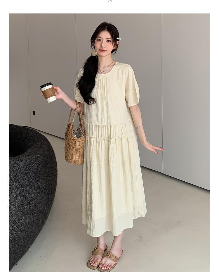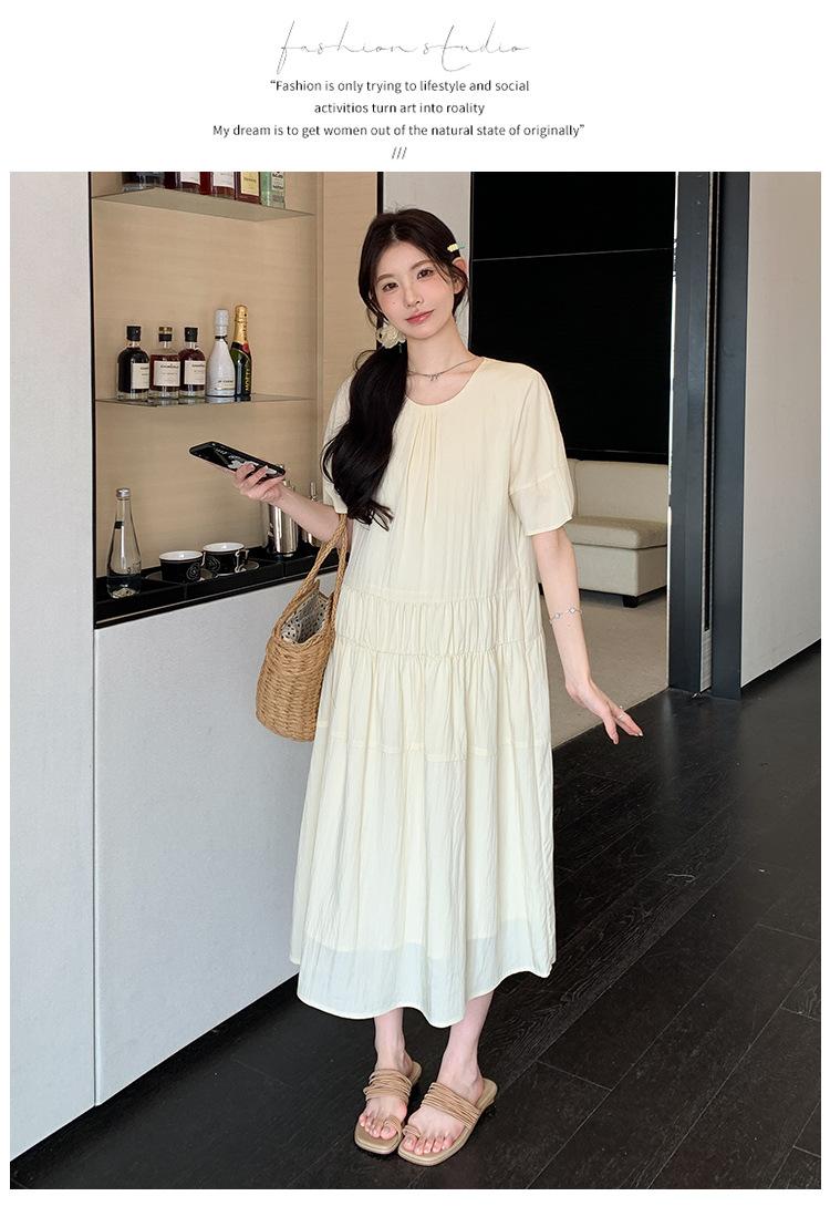 Maternidad 2025 Verano Nuevo Estilo Coreano Temperamento Simple Media Longitud Suelto Talla Grande Vestido para Mujeres Embarazadas