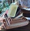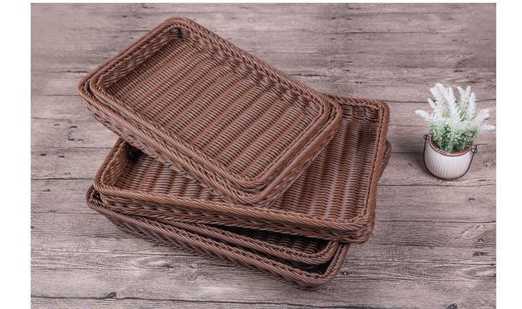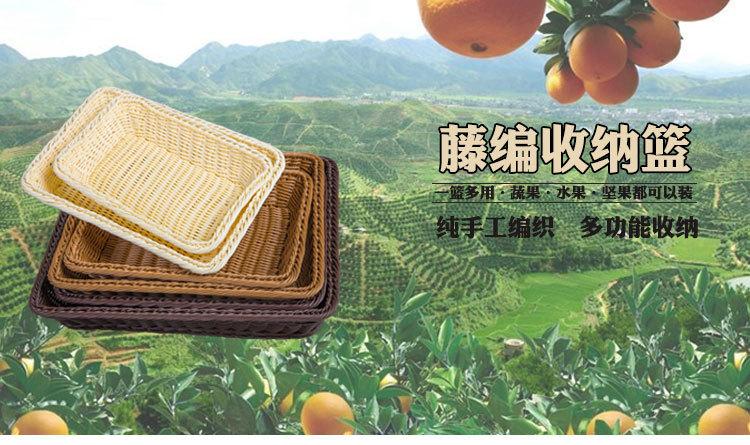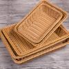 Cesta de Frutas de Imitación Ratán Exhibidor de Ratán Azul Rectangular Exhibidor de Pan Cesta de Verduras Bandeja de Ratán Almacenamiento Cesta de Plástico