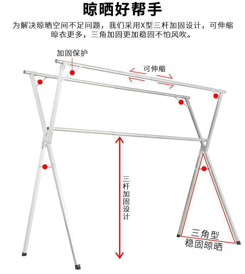 Tendedero de Piso de Acero Inoxidable al por Mayor, Tendedero Plegable Telescópico, Tendedero de Doble Barra, Tendedero de Balcón