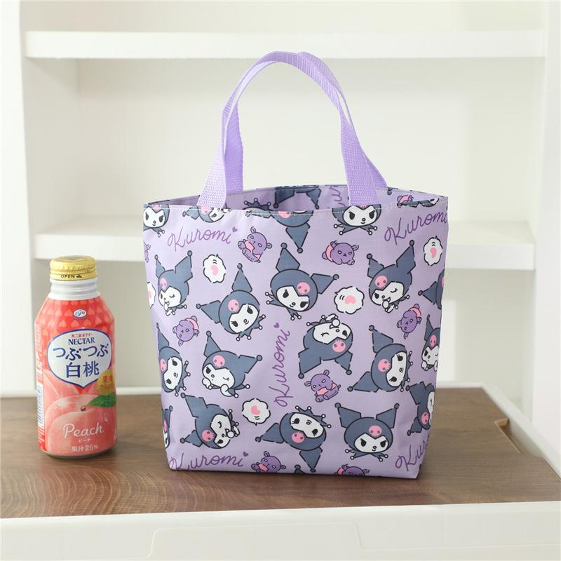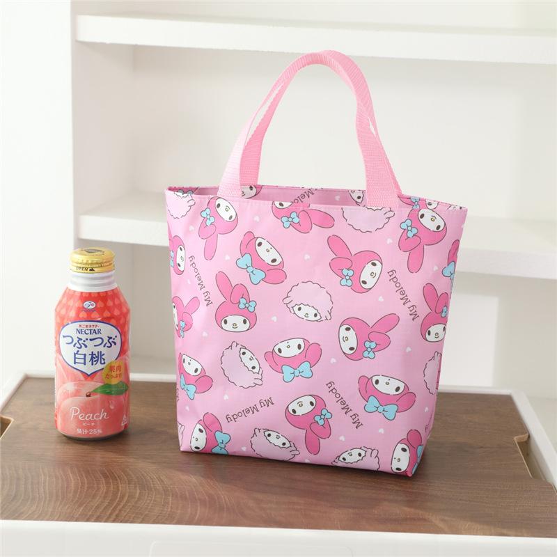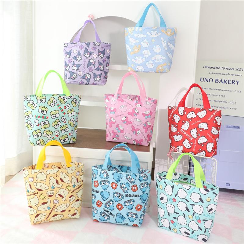 Bolsa de compras con cremallera y estampado de dibujos animados japoneses, pequeña lonchera para estudiantes, bolsa de almuerzo práctica para trabajadores de oficina, bolsa de almuerzo