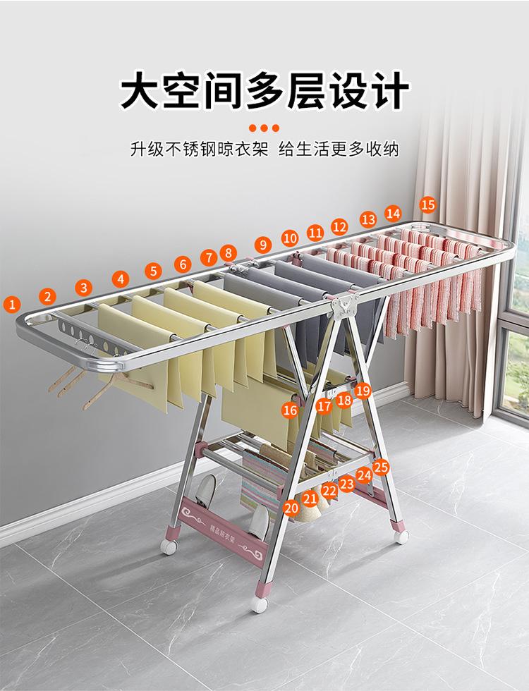 Tendedero de Ropa de Acero Inoxidable, Tendedero de Ropa Plegable de Pie para Interior, Barra para Colgar y Secar Edredones para Balcón y Bebé