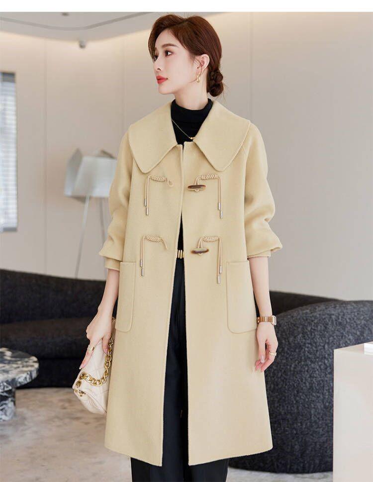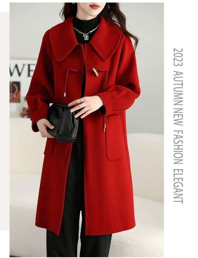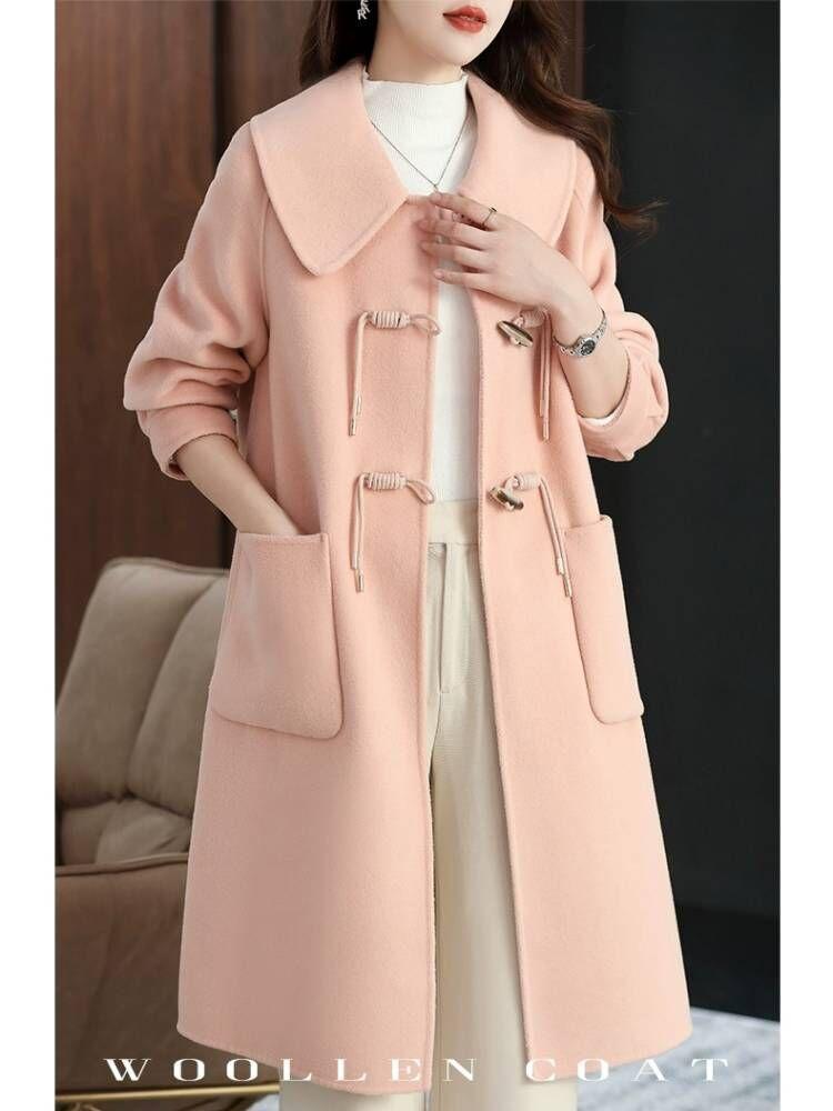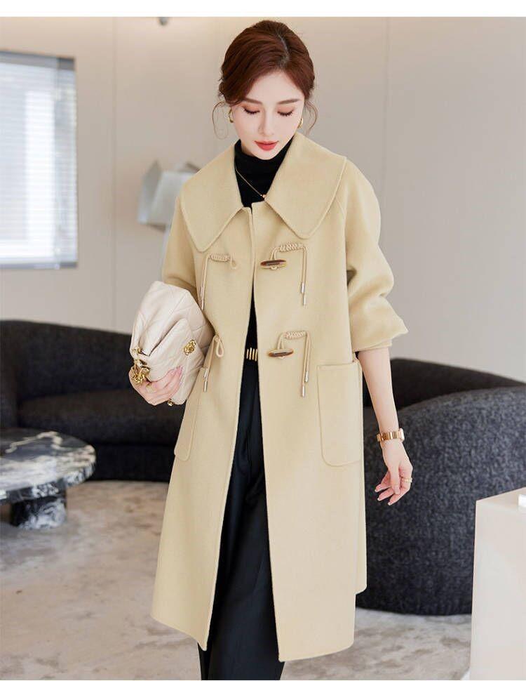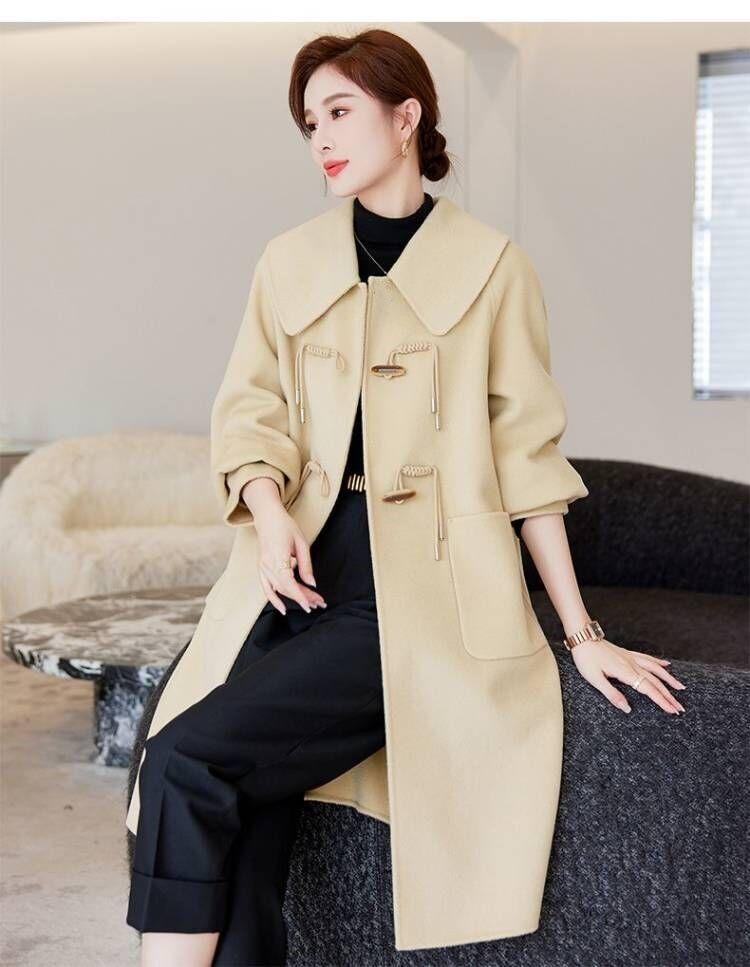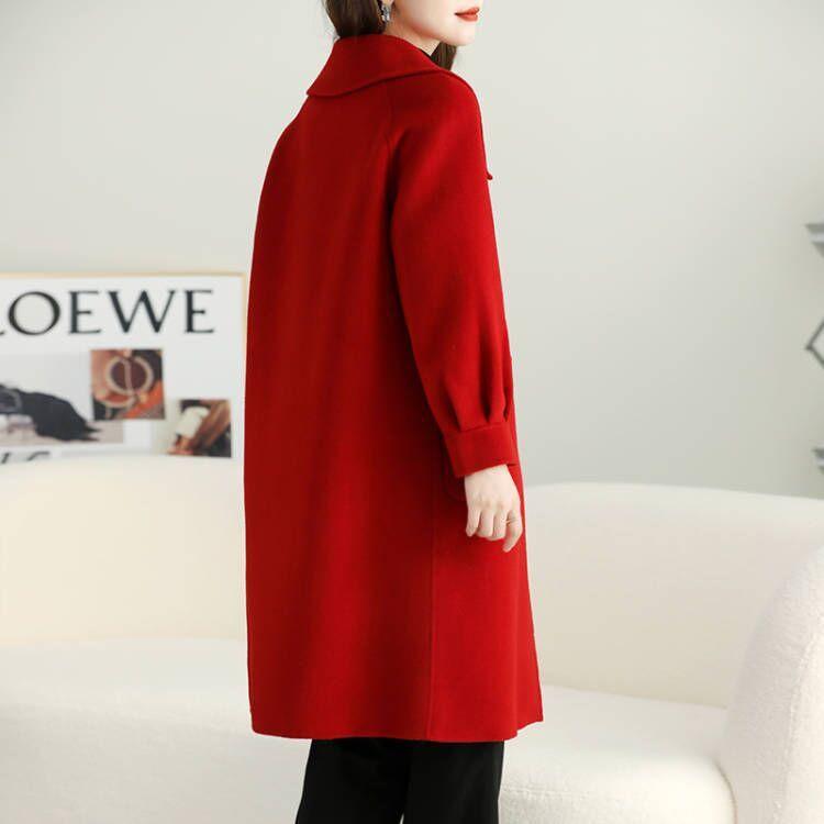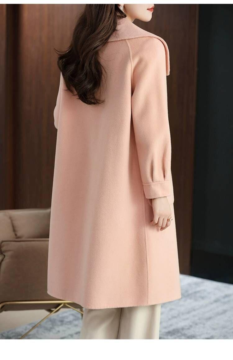 Abrigo de tweed de doble cara para mujer de largo medio 2023 nuevo otoño e invierno viento Hepburn lana doble cara forro polar corte holgado abrigo de alta gama para mujer