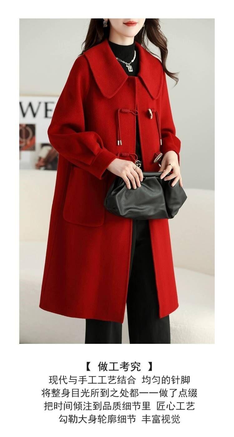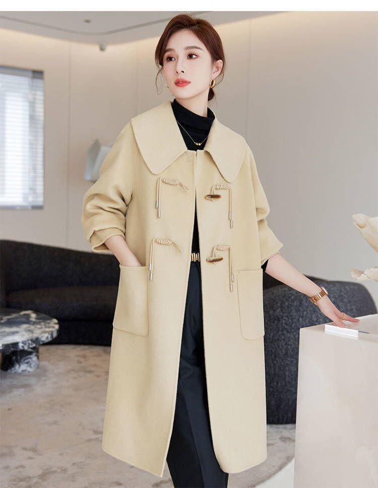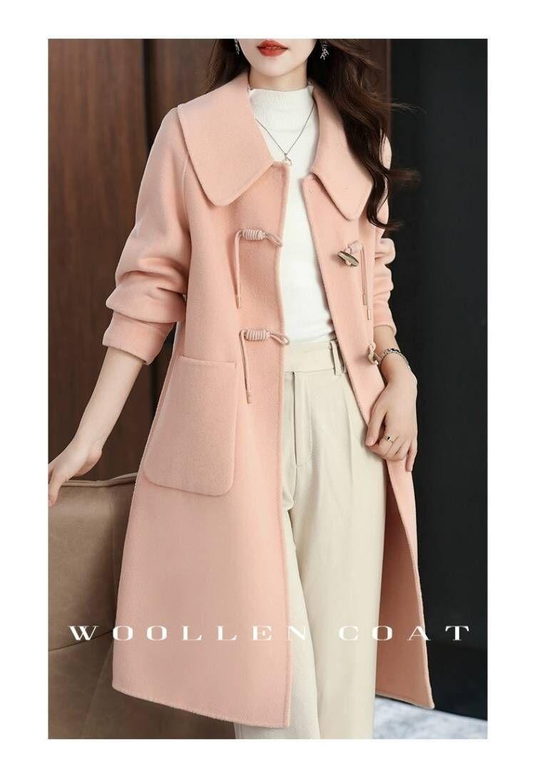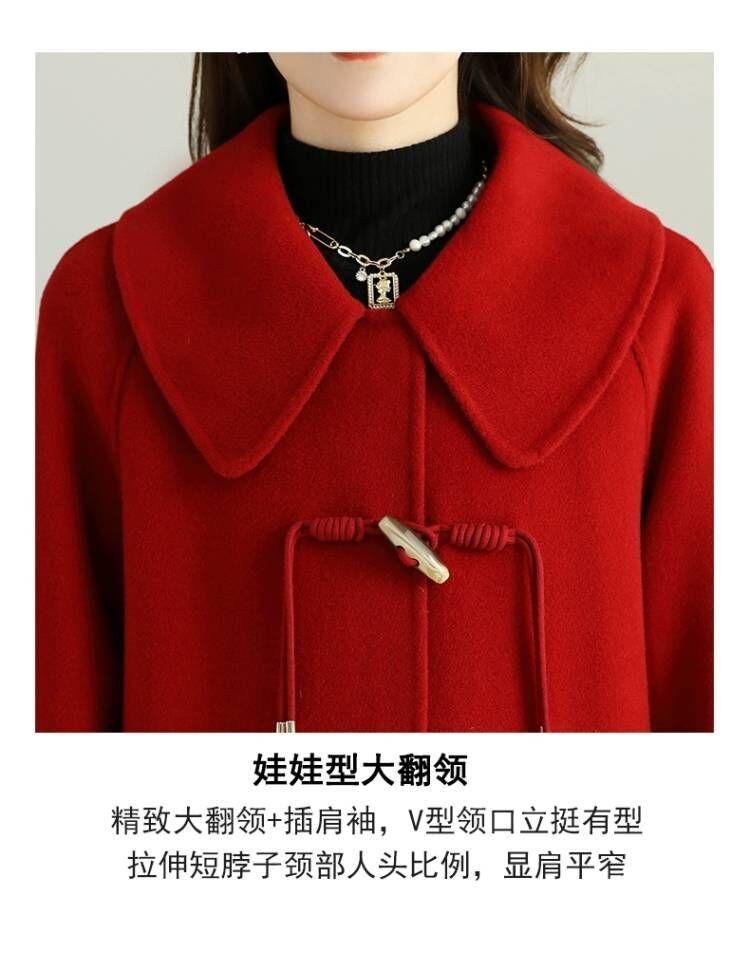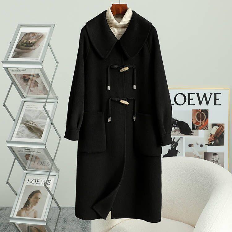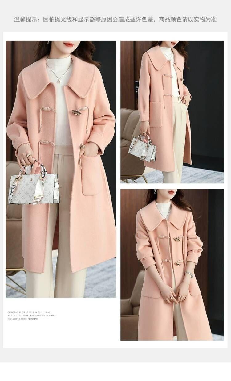 Abrigo de tweed de doble cara para mujer de largo medio 2023 nuevo otoño e invierno viento Hepburn lana doble cara forro polar corte holgado abrigo de alta gama para mujer