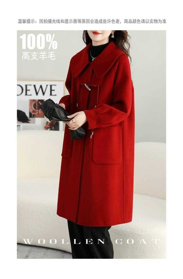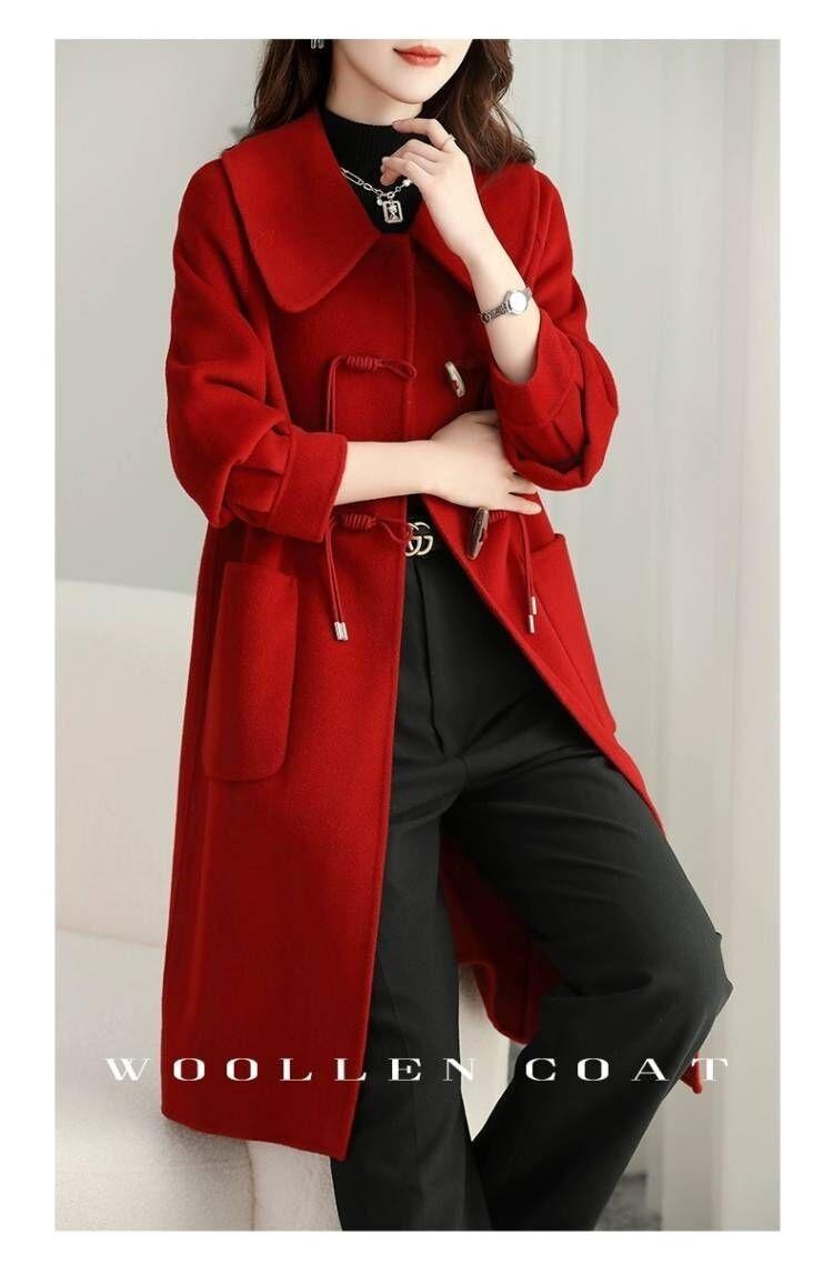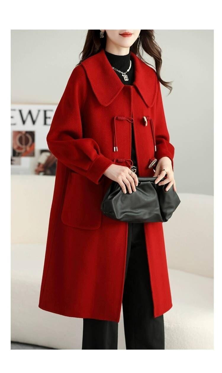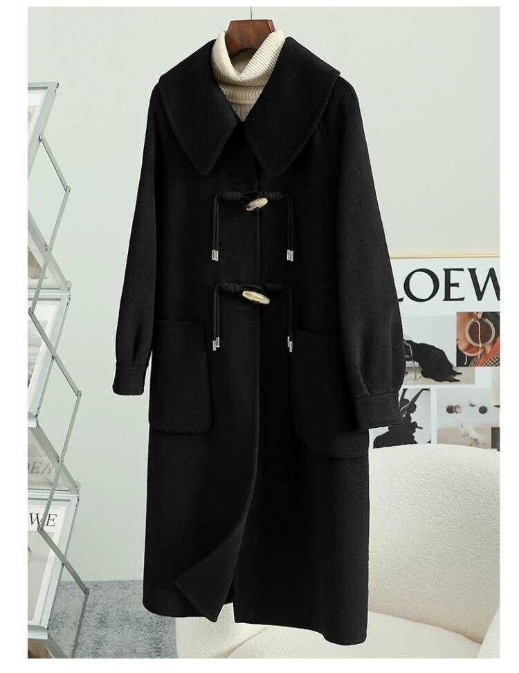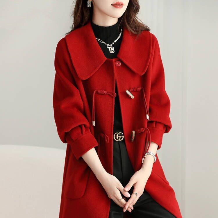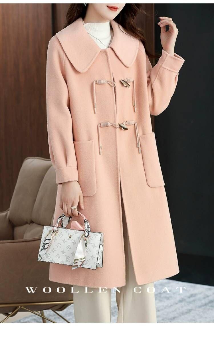 Abrigo de tweed de doble cara para mujer de largo medio 2023 nuevo otoño e invierno viento Hepburn lana doble cara forro polar corte holgado abrigo de alta gama para mujer