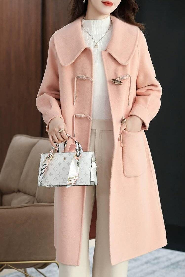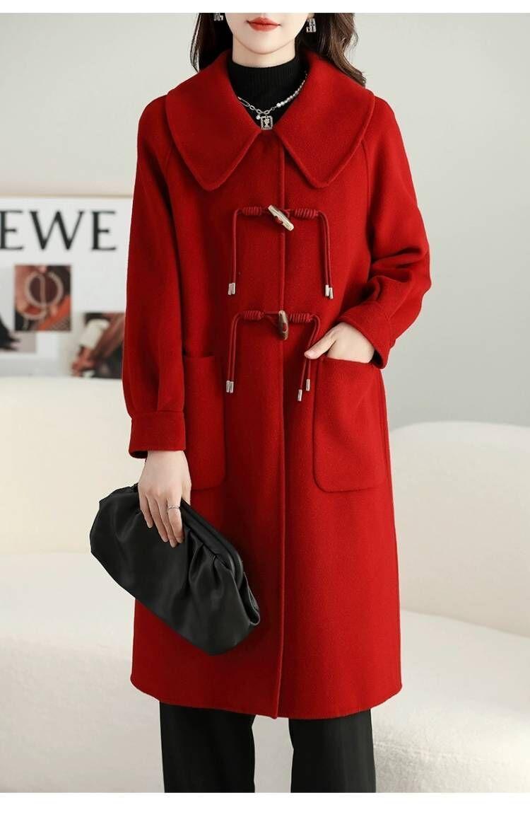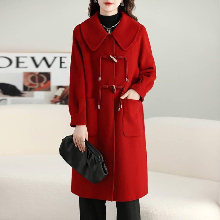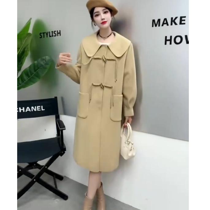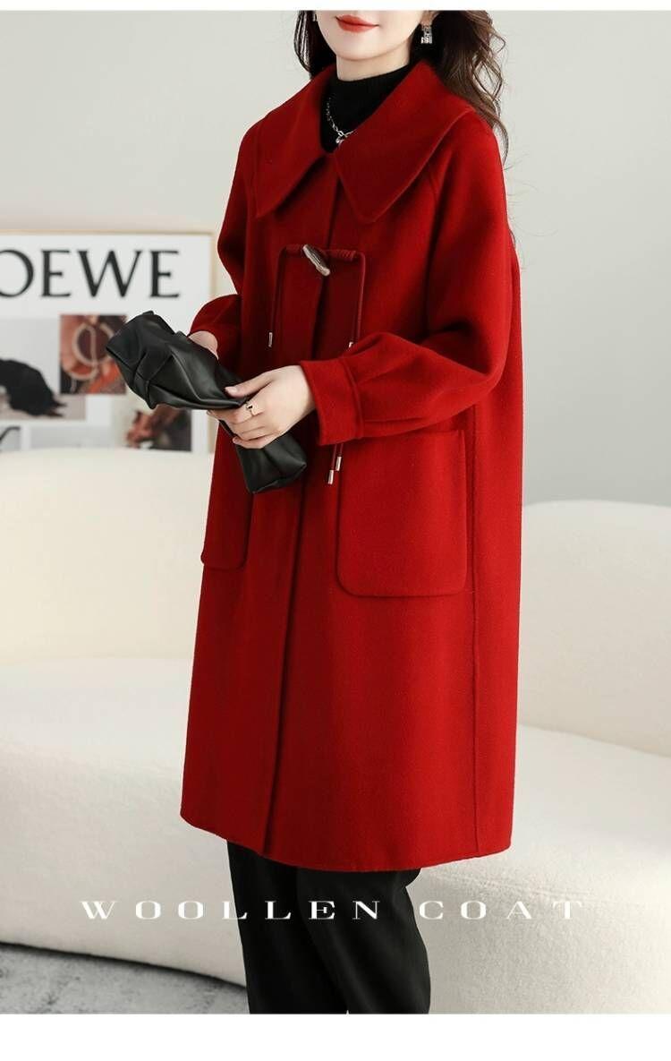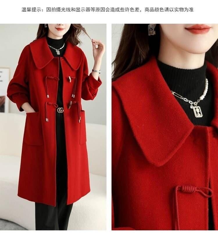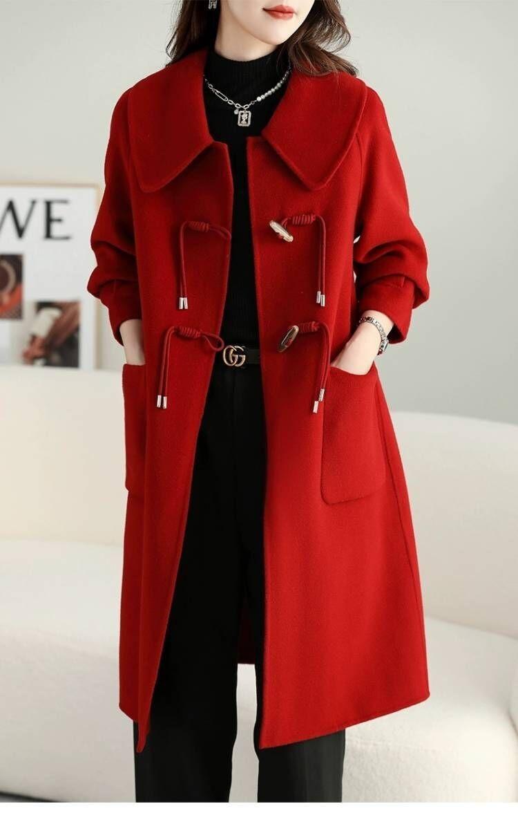Abrigo de tweed de doble cara para mujer de largo medio 2023 nuevo otoño e invierno viento Hepburn lana doble cara forro polar corte holgado abrigo de alta gama para mujer