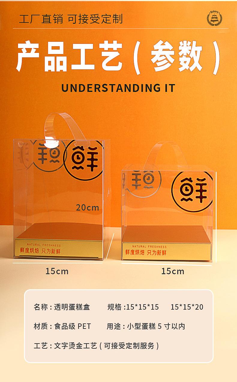 Venta al por mayor directa de fábrica transparente 4 pulgadas 4 pulgadas 5 pulgadas de alto doble capa caja portátil para pastel pastel de cumpleaños mousse