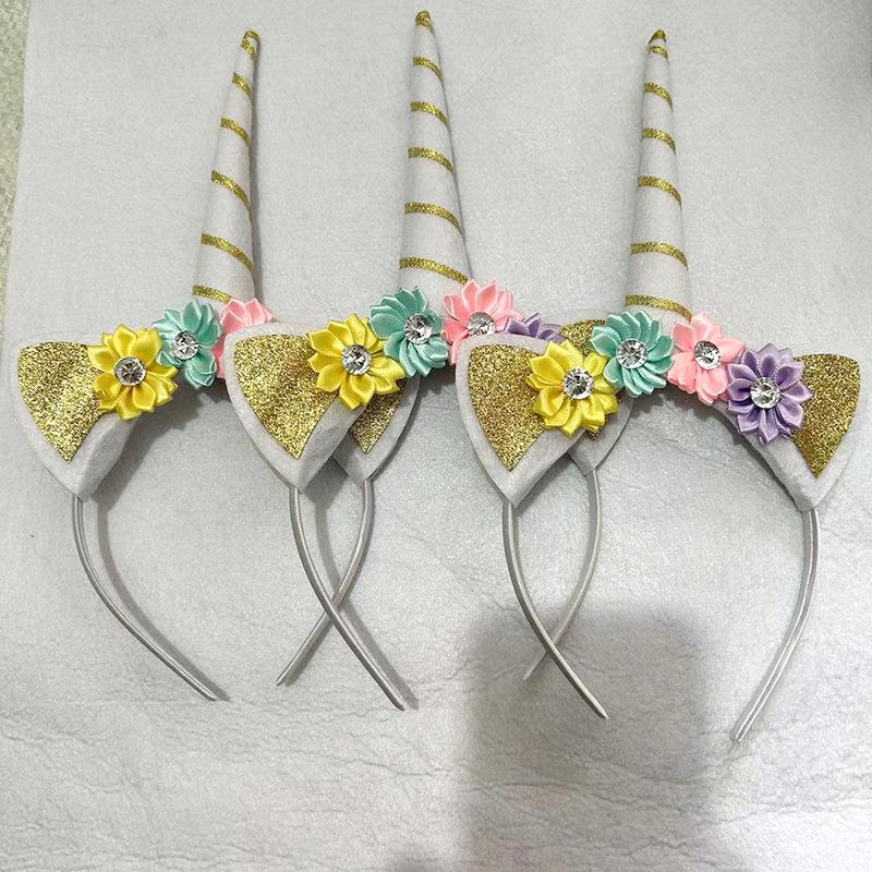Diadema de unicornio europea y americana transfronteriza Amazon diadema de Halloween diadema de unicornio de flores para fiestas navideñas infantiles