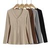 Suéter de Punto Cárdigan con Cuello en V y Bloques de Color con Adorno de Moda 2025 Primavera Nuevo Europeo y Americano Transfronterizo para Mujer Casual