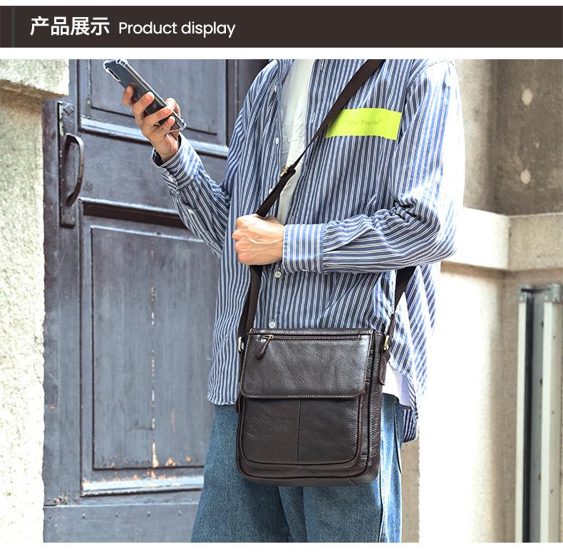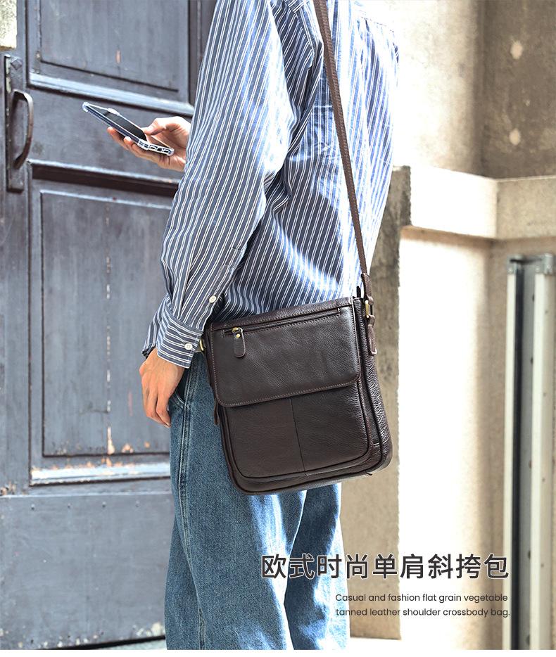 Comercio Exterior Nueva Bolsa Cruzada para Hombre Retro Cuero Genuino Bolsa para Hombre Bolsa Casual para Viajero Bolsa de Hombro para Hombre Venta Caliente Transfronteriza