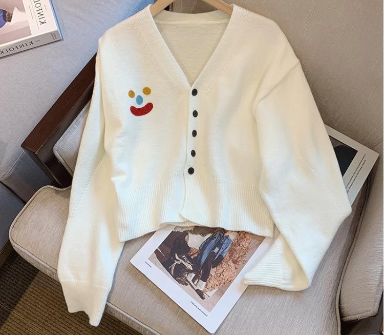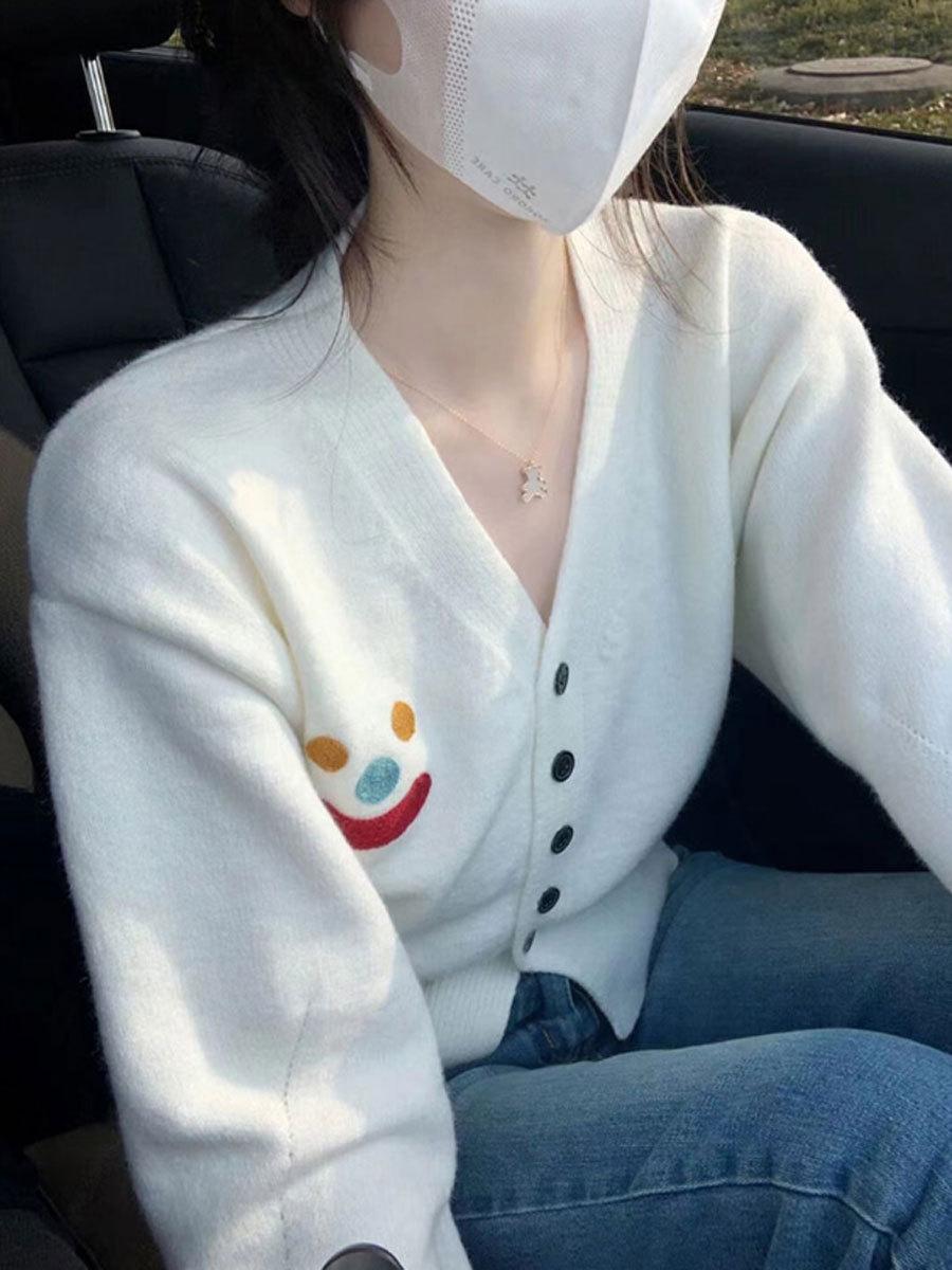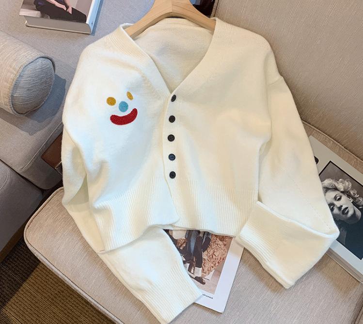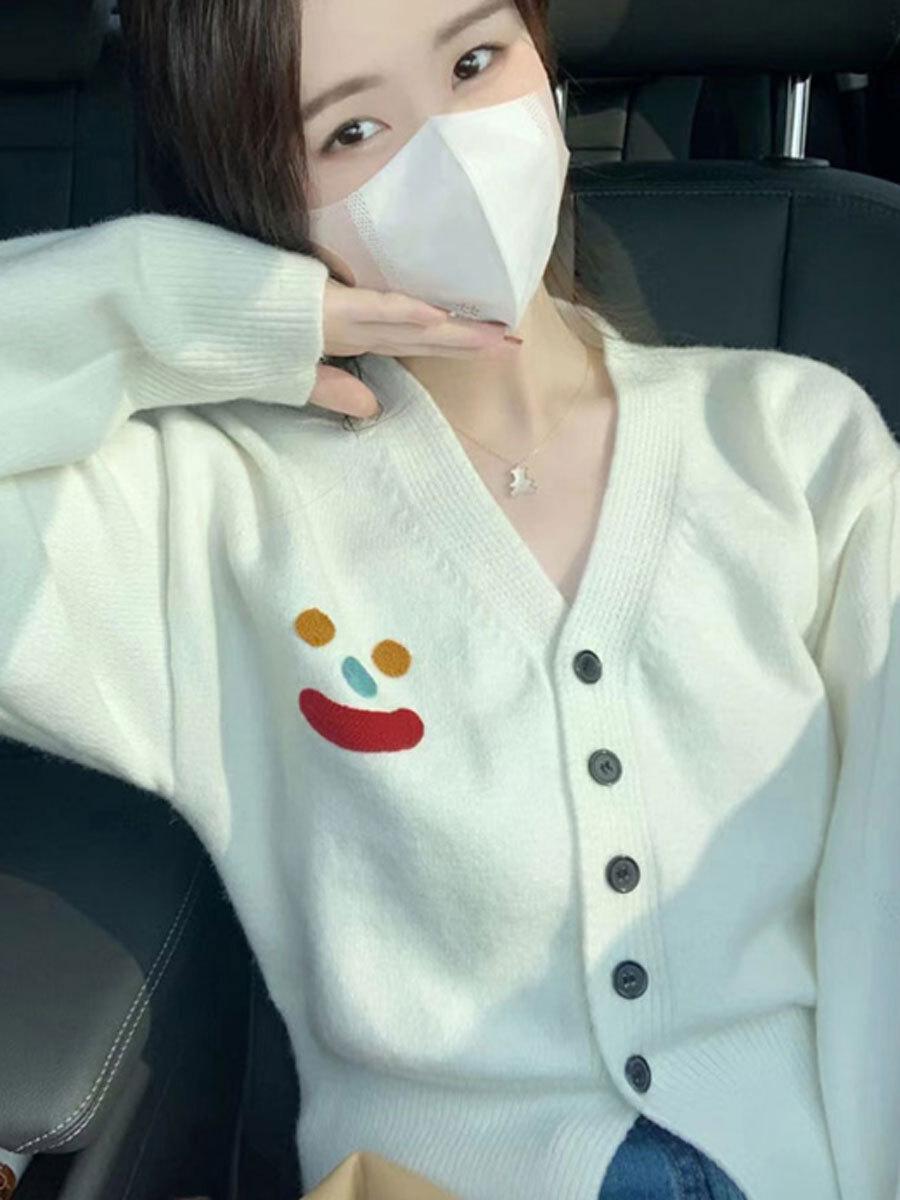 Top Cárdigan de Punto con Cuello en V para Mujer para Comercio Exterior, 2025 Otoño Nuevo Suave y Dulce Chaqueta Suéter Petite de Tendencia