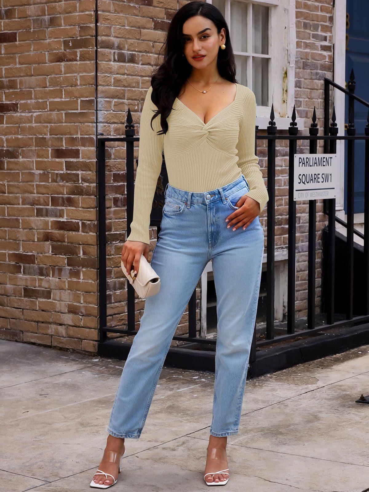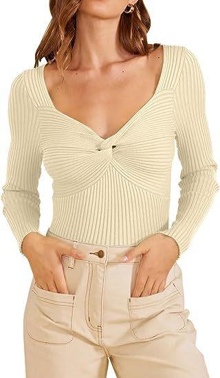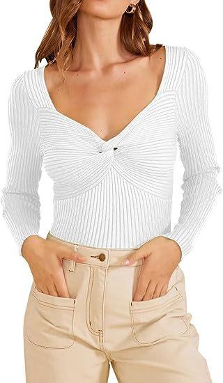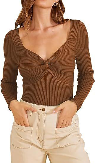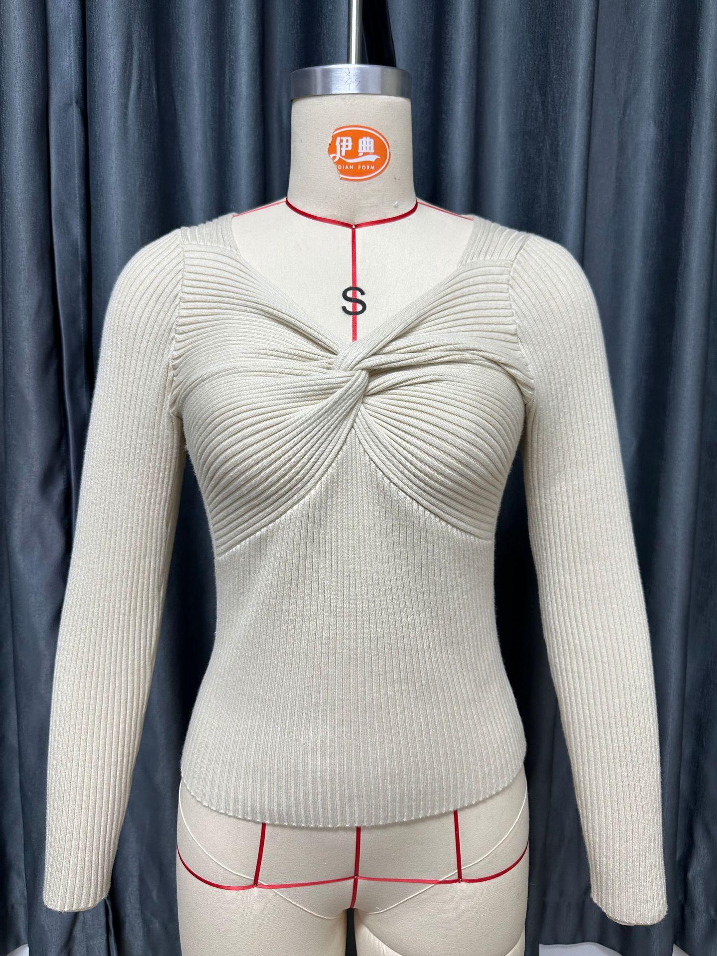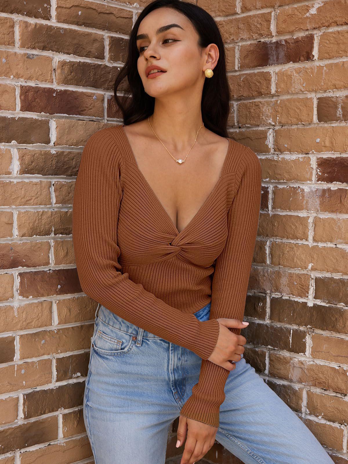 Ropa popular de otoño e invierno transfronteriza 2023 Amazon AliExpress estación independiente suéter de temperamento de manga larga cruzado en el pecho para mujer