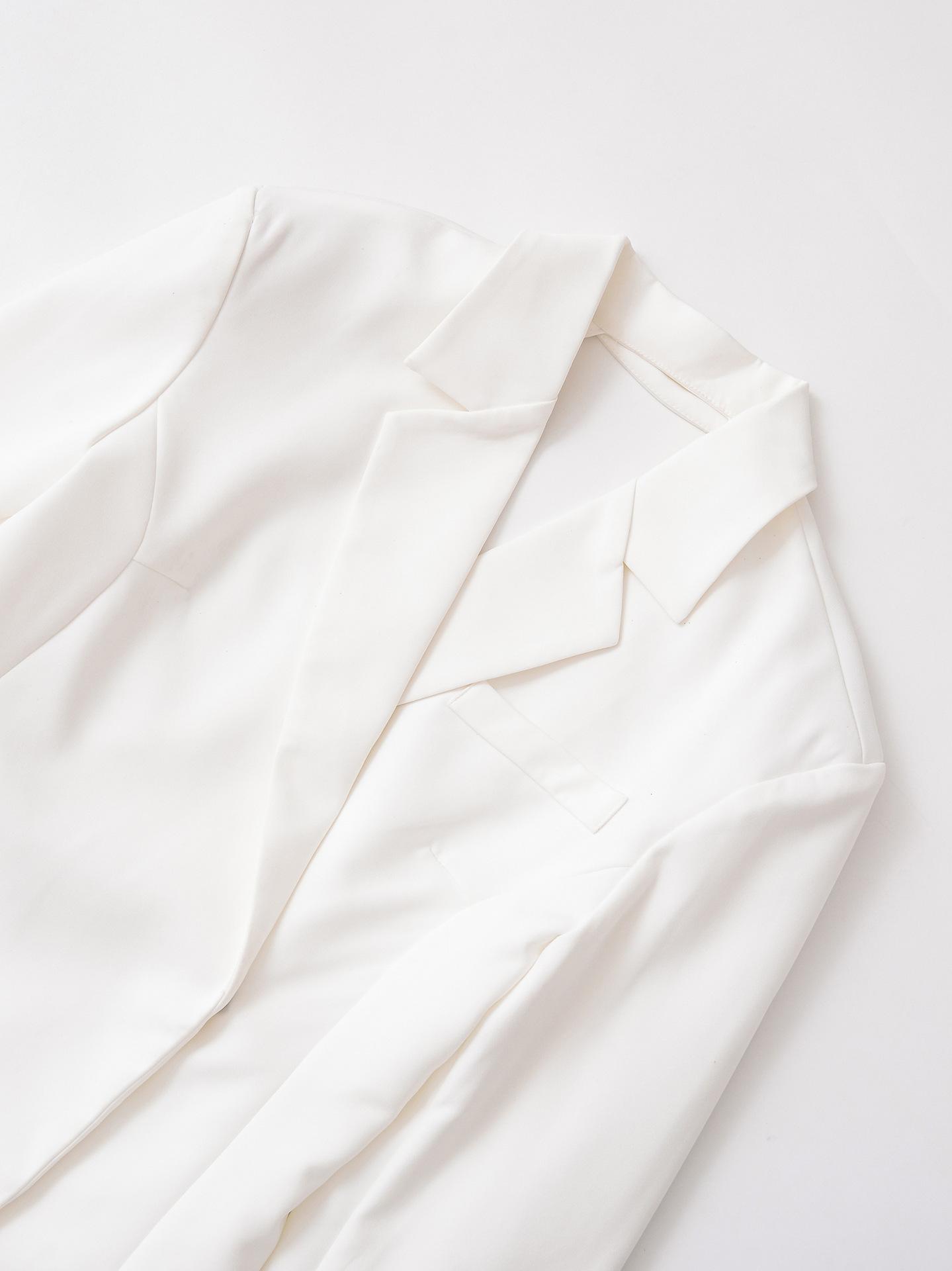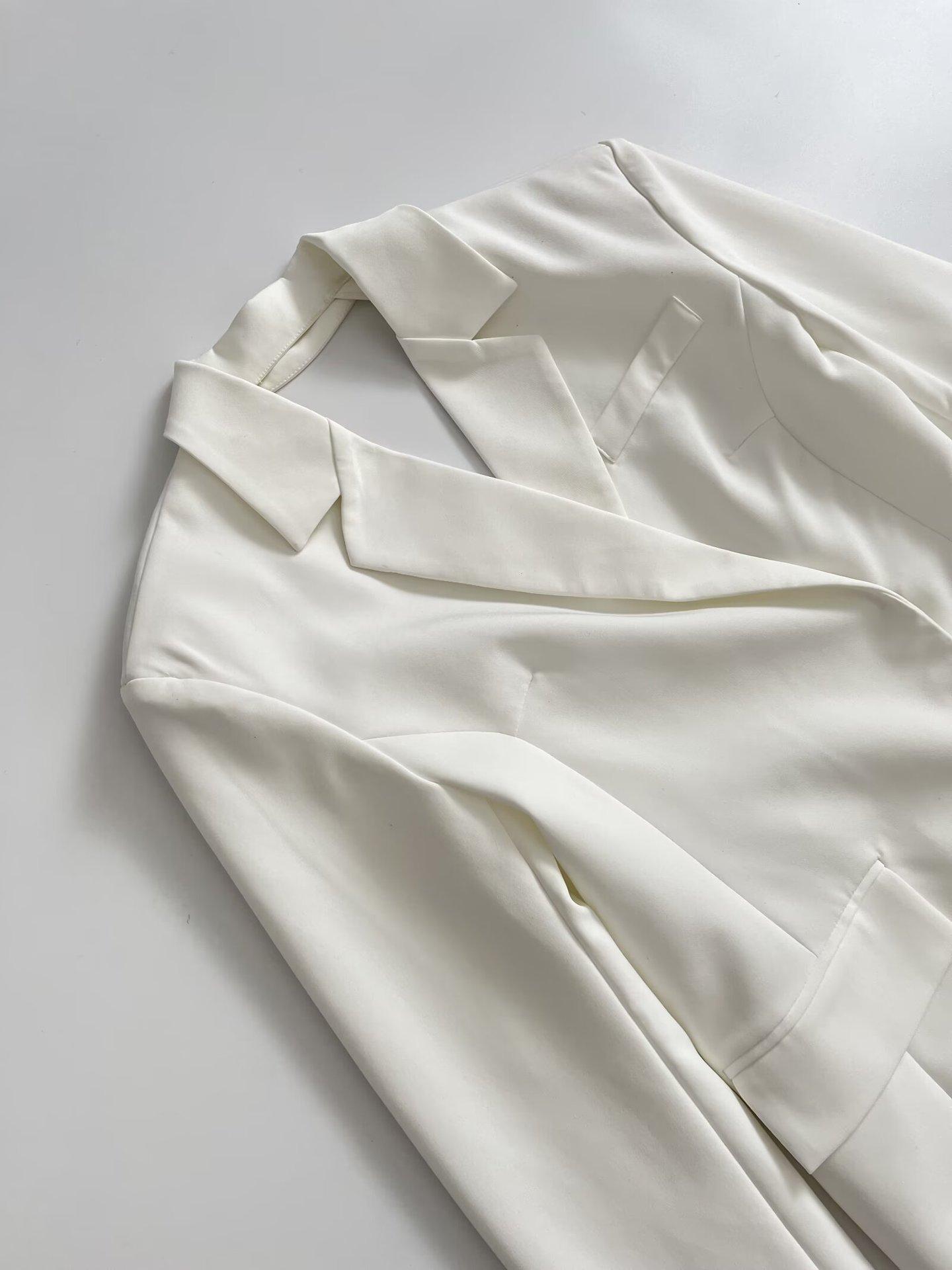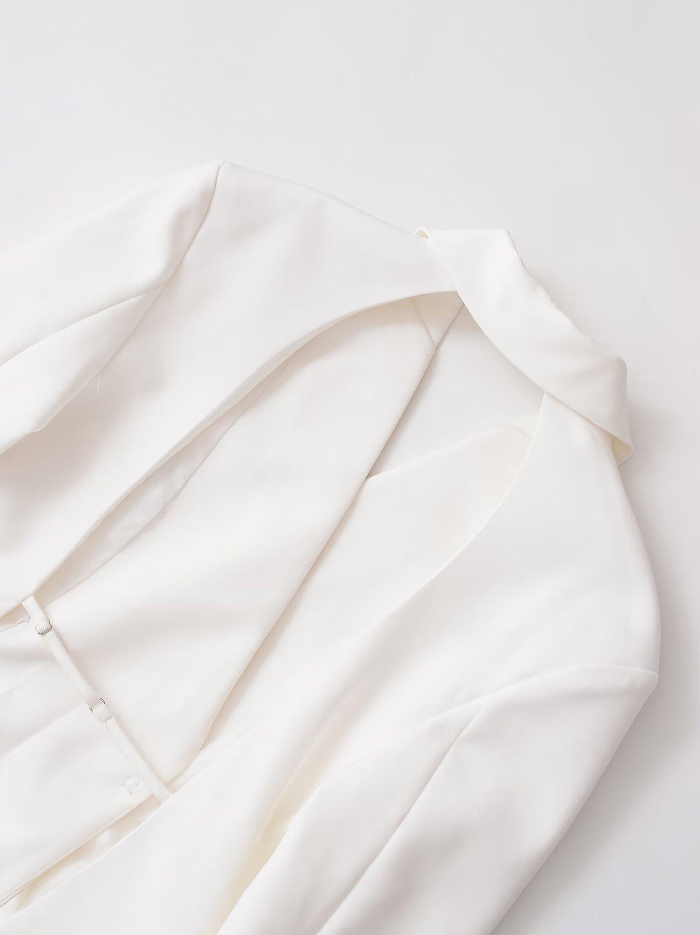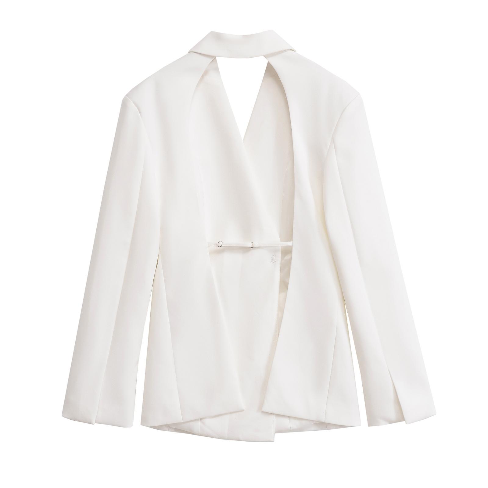 Estilo Europeo y Americano Otoño Nuevo Elegante Chaqueta de Traje Casual Slim con Decoración Cut Out en la Espalda para Mujer Blanco