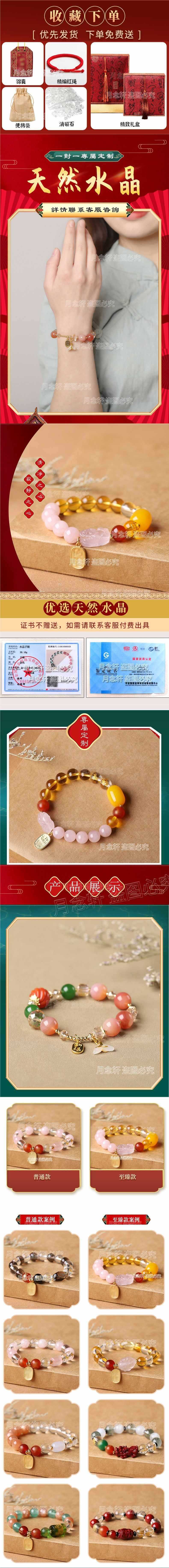 Pulsera de Cristal Natural diy Hecha a Mano Nicho para Damas Mujeres Jade Versátil Cristal Rosa Cristal Fresa