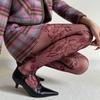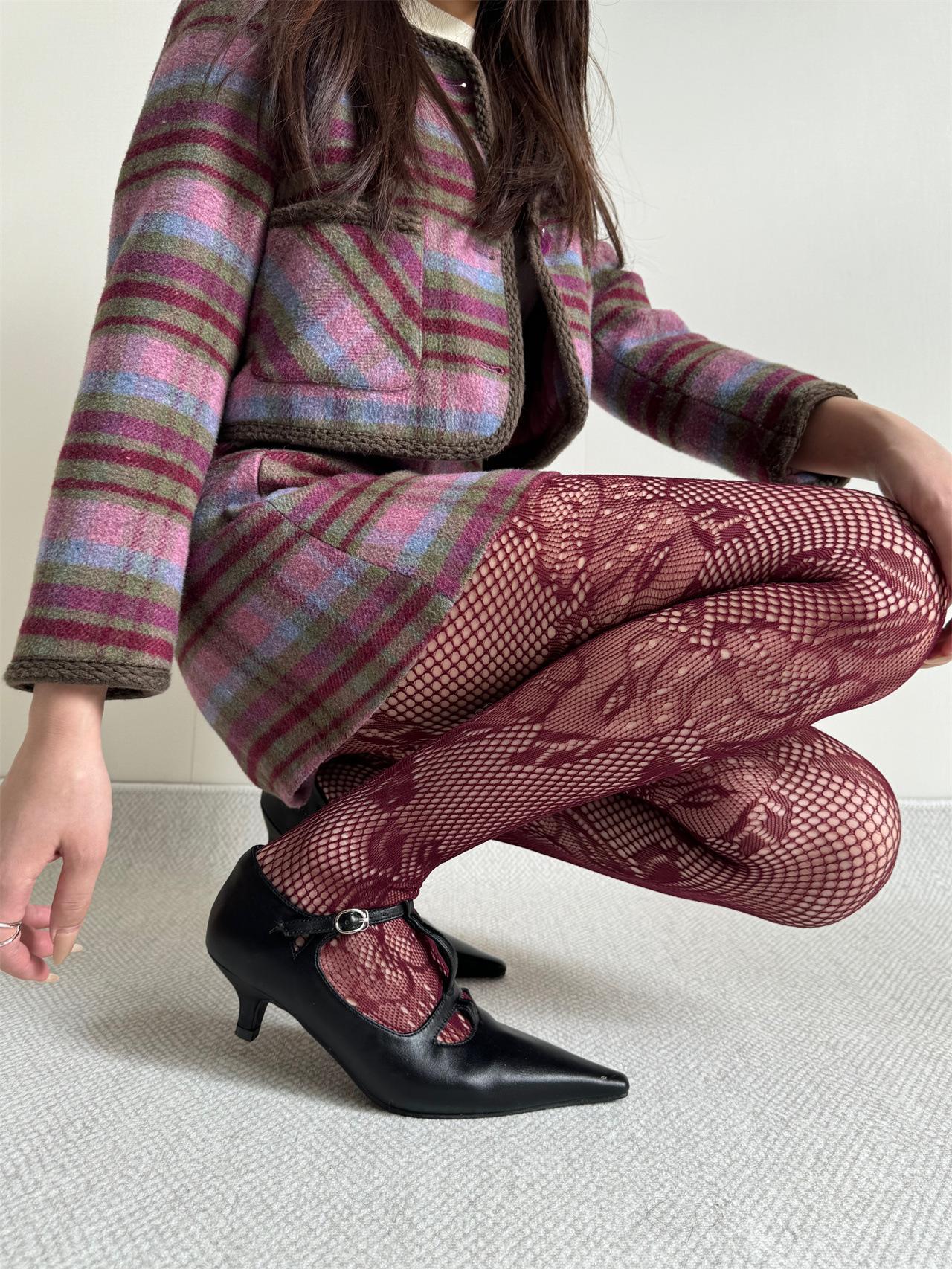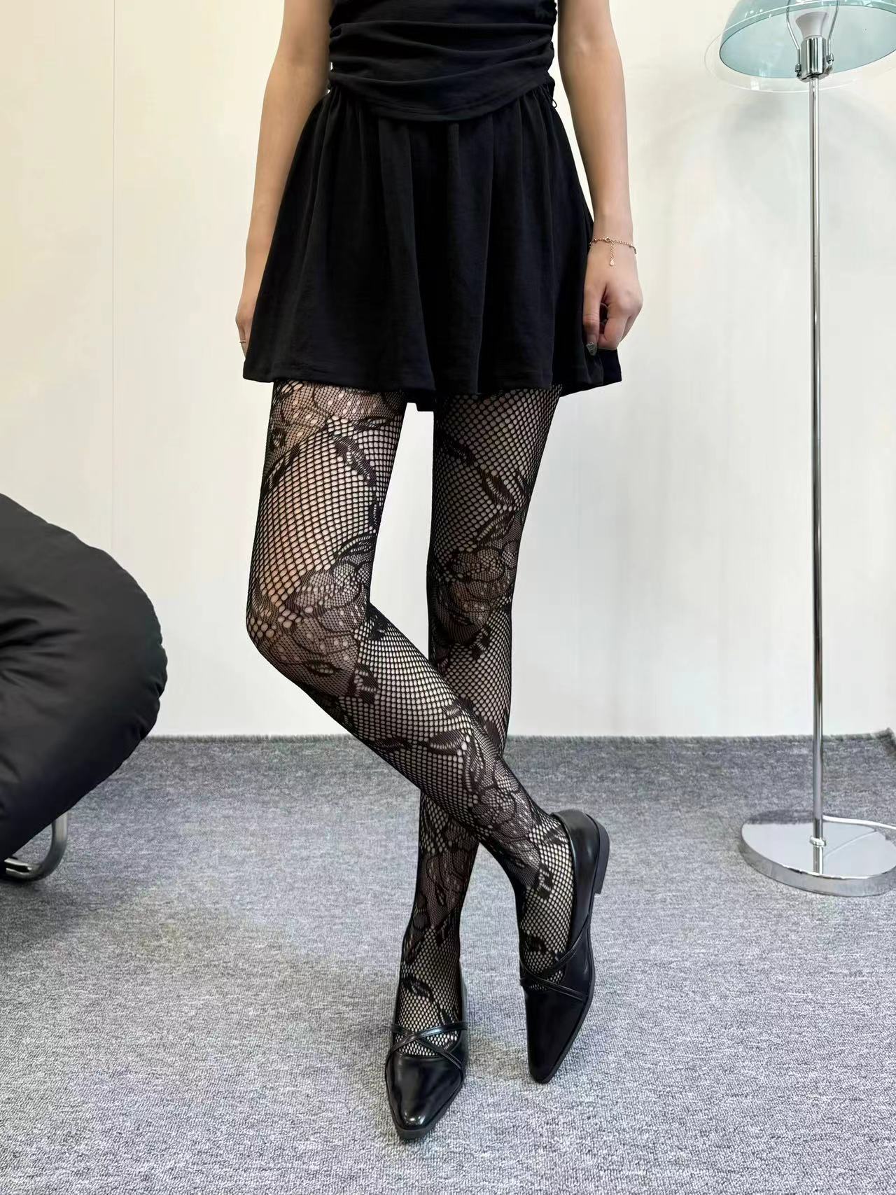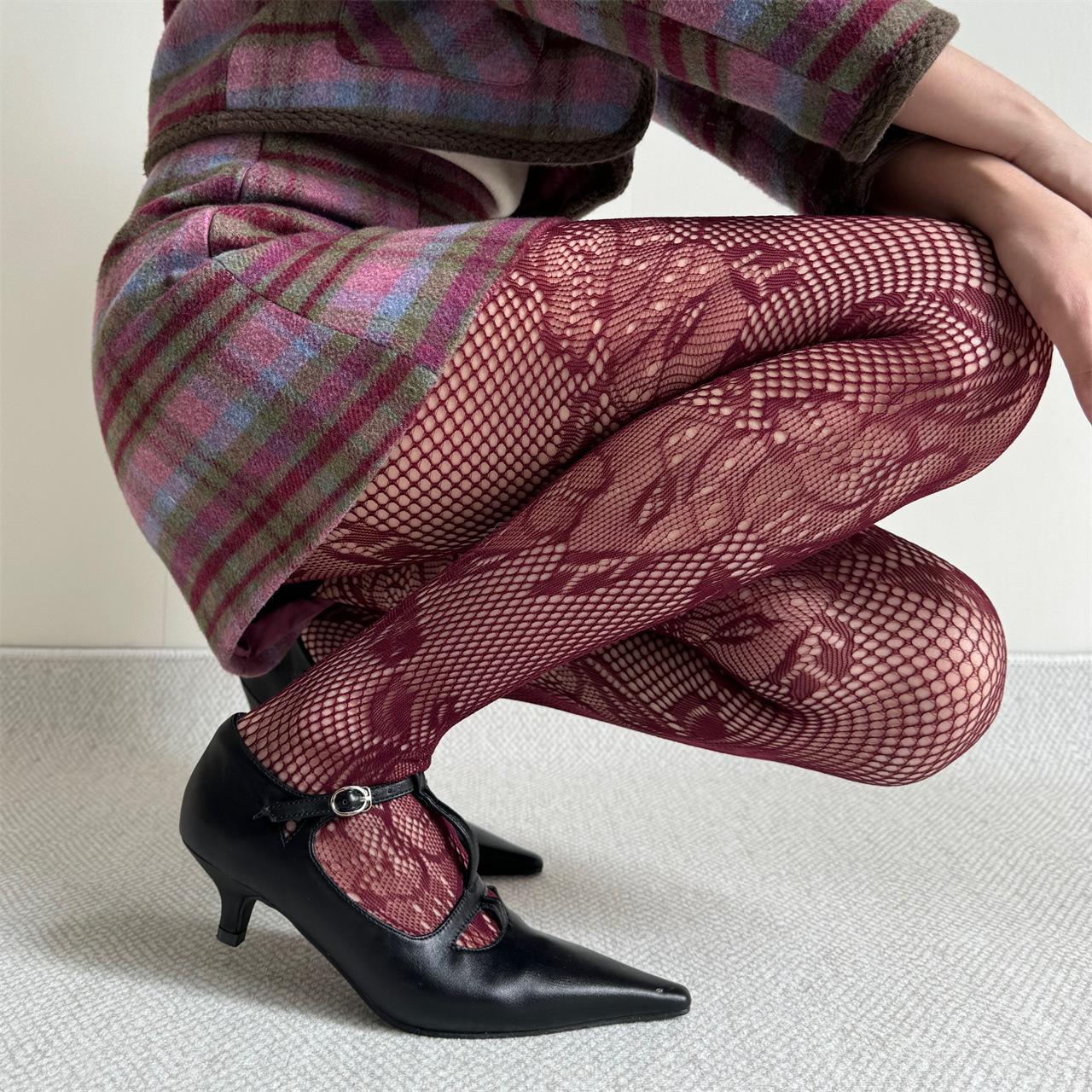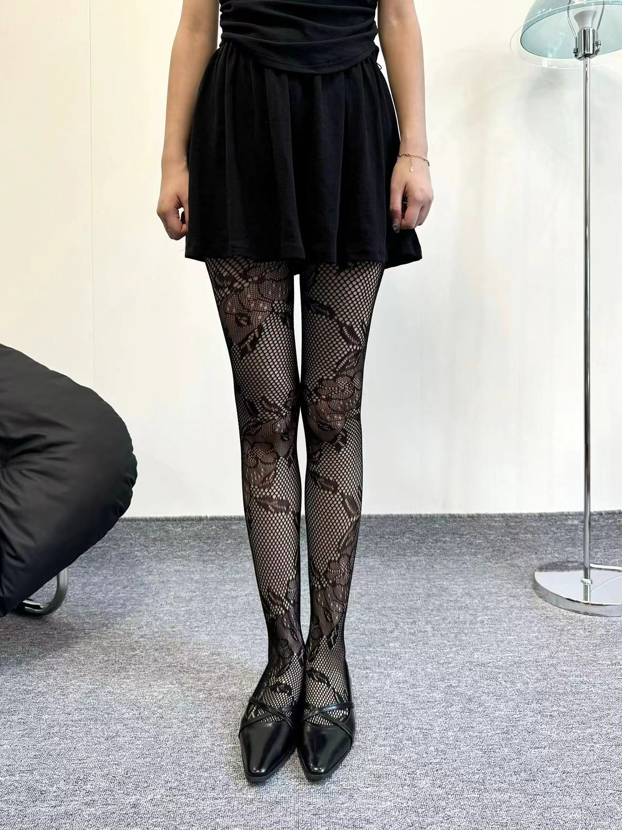 Medias delgadas color blanco puro Ropa de mujer coreana Otoño Retro Encaje Red de pesca Medias Calcetines sexys huecos con flores para las piernas