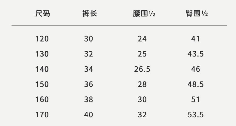 120cm, 130cm, 140cm, 150cm, 160cm, 170cm