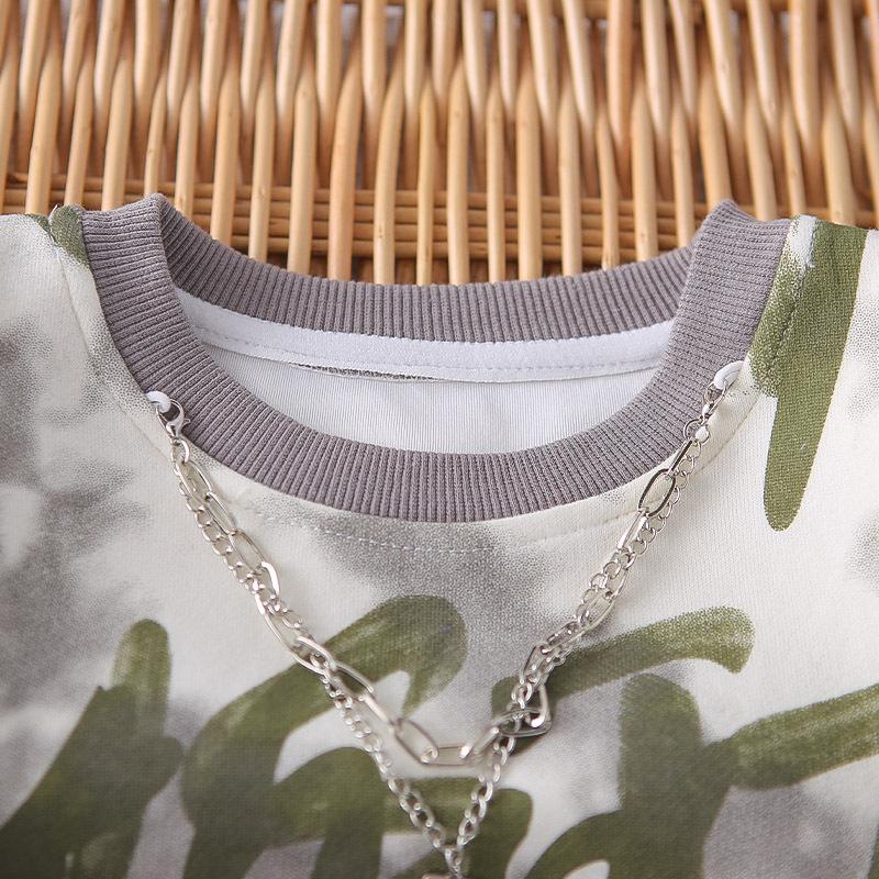 Blue xb2502 necklace graffiti letter long sleeve suit, Green xb2502 necklace graffiti letter long sleeve suit