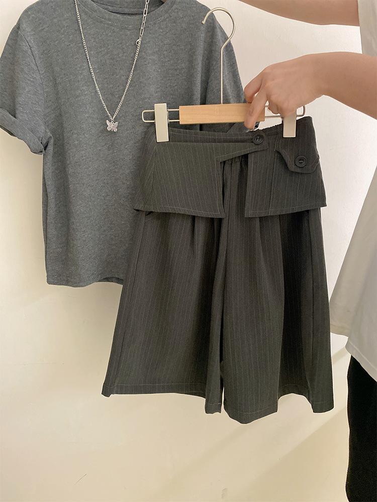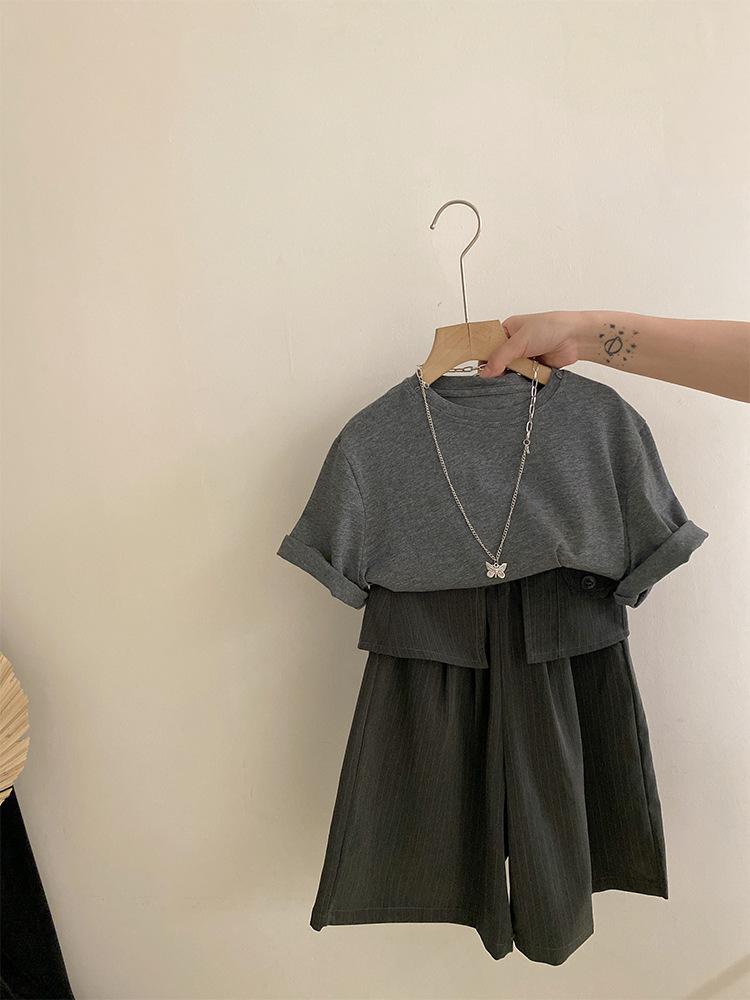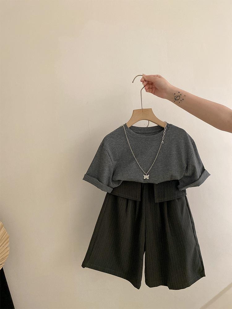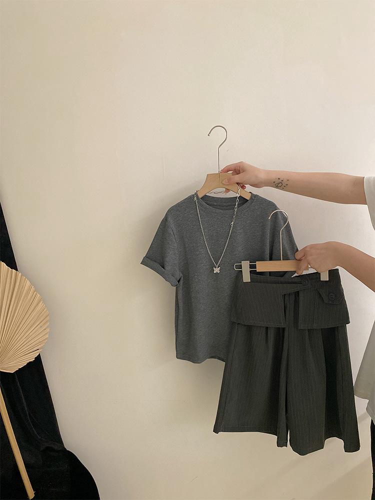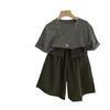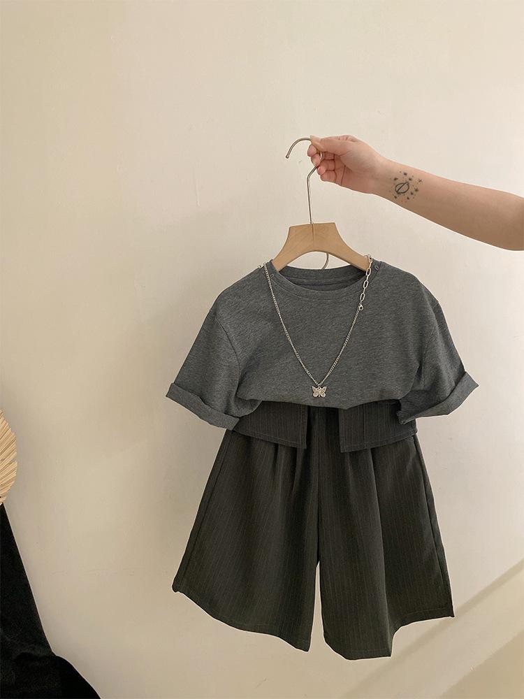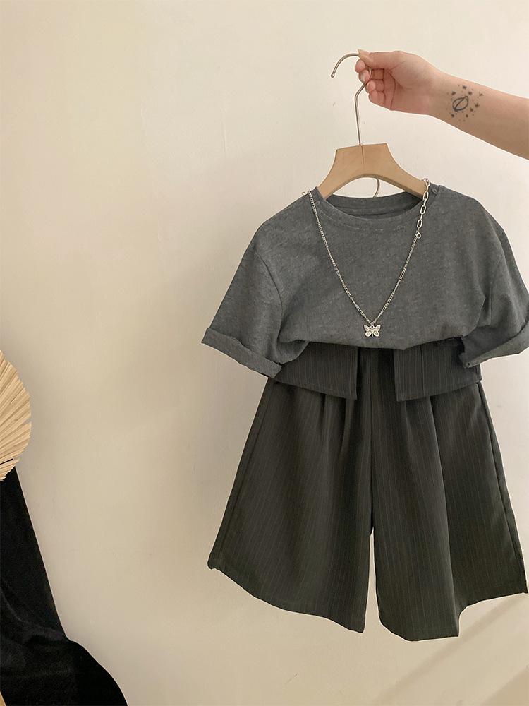 Estilo Coreano Moda para Niñas Moderno Color Sólido Versátil Manga Corta 2025 Verano Nuevo Pantalón Casual Suelto Elegante Conjunto de Dos Piezas