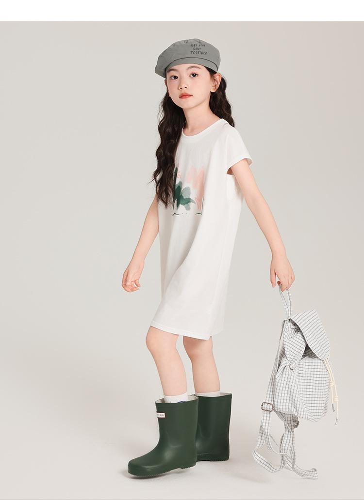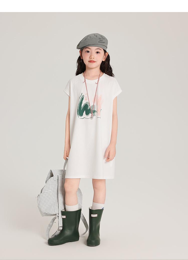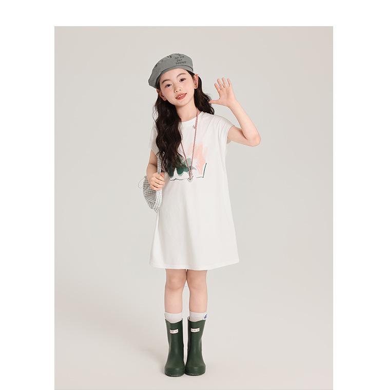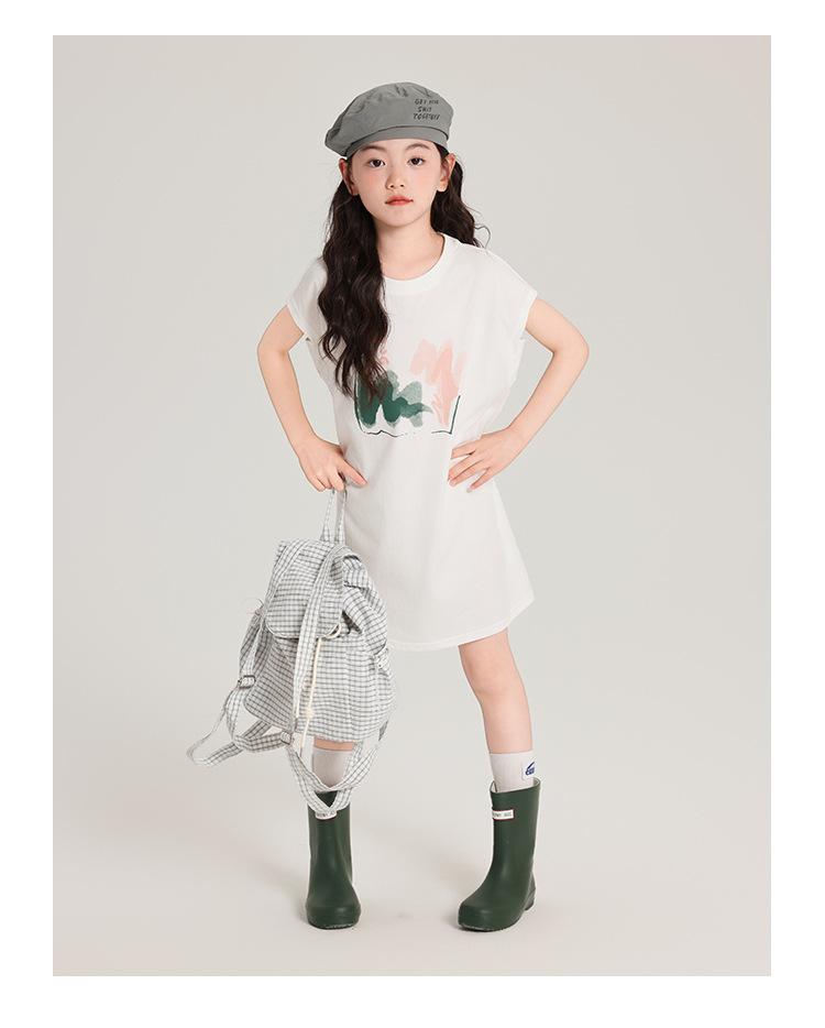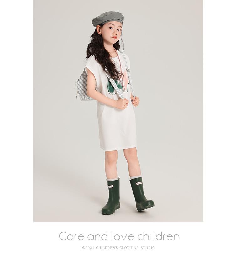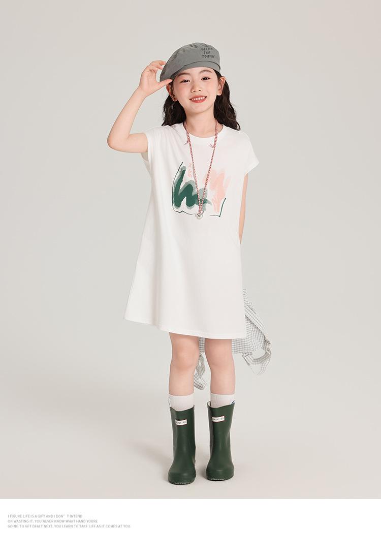 Pudding Ropa para Niños Haru Verano Falda Larga para Niñas 2025 Verano Nuevo Vestido Versátil de Manga Corta para Niños