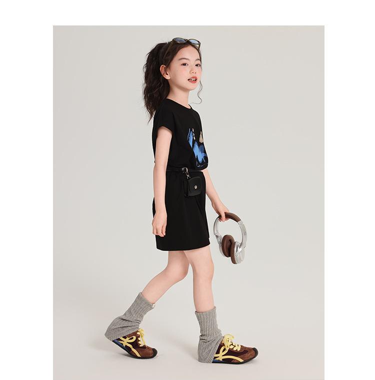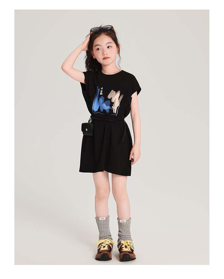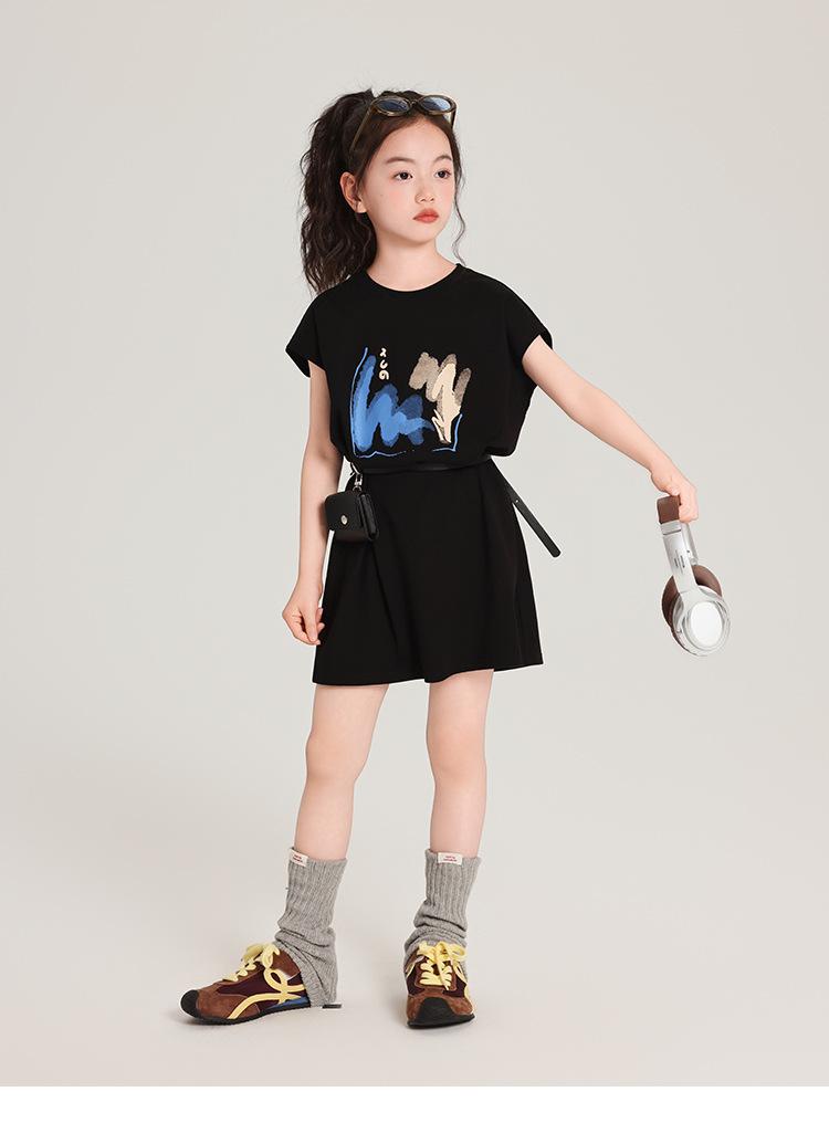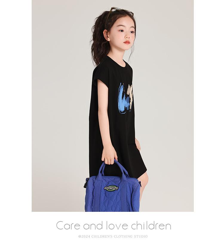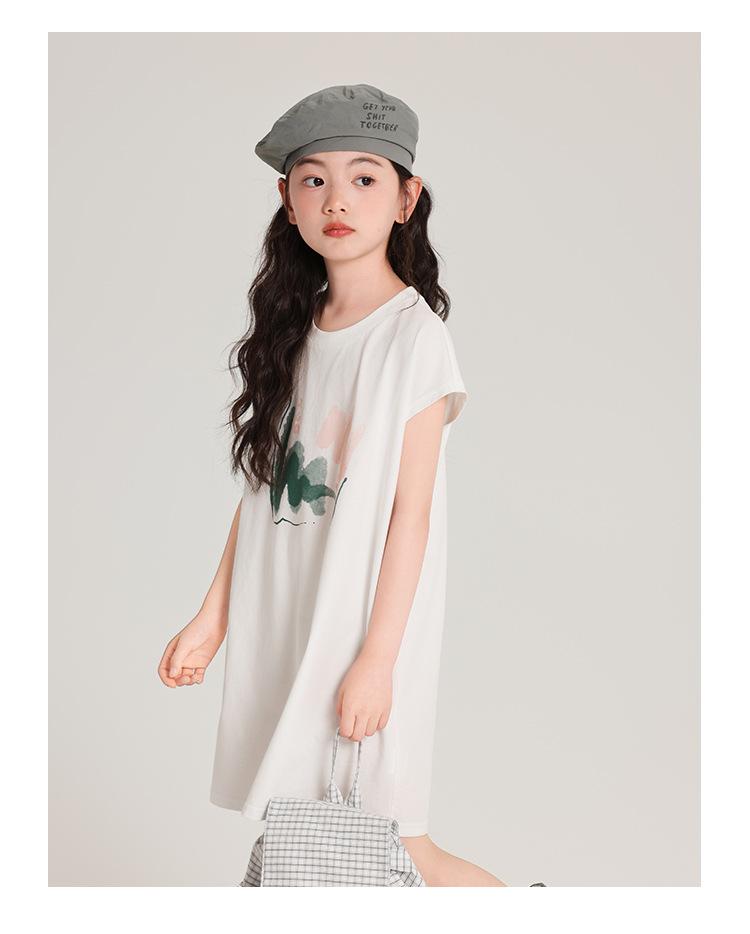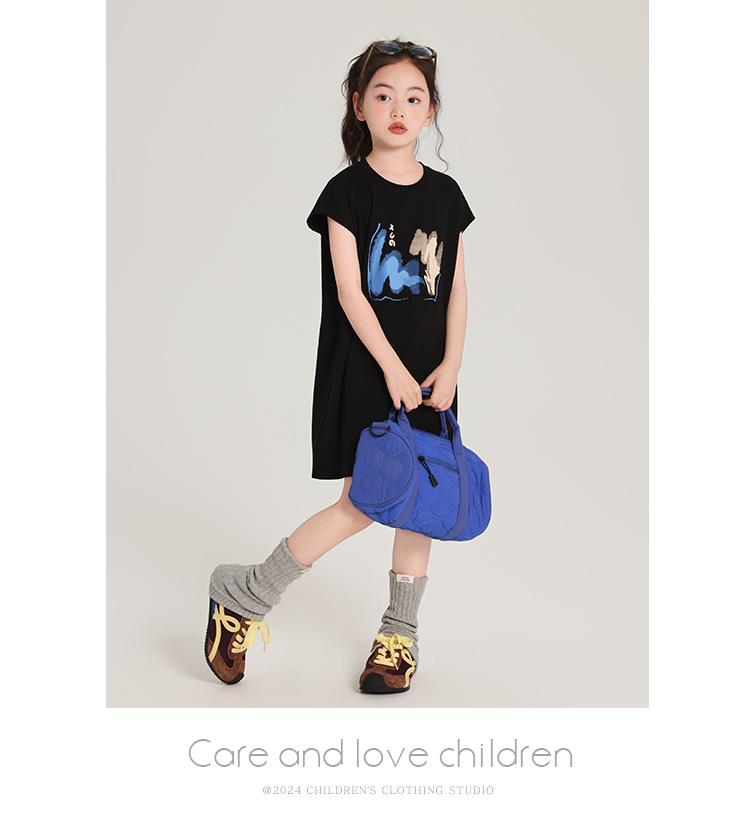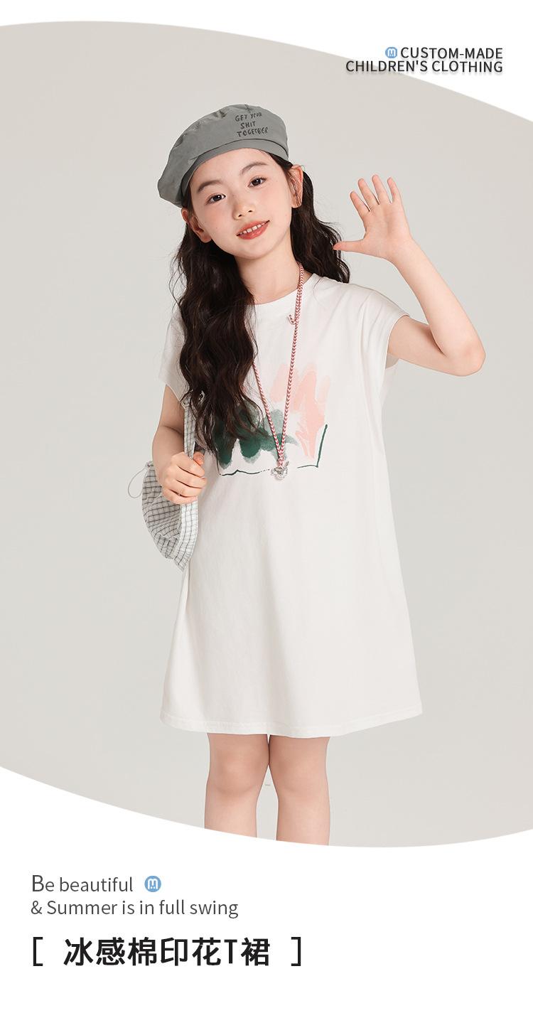 Pudding Ropa para Niños Haru Verano Falda Larga para Niñas 2025 Verano Nuevo Vestido Versátil de Manga Corta para Niños