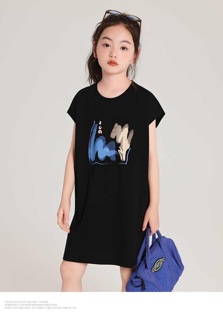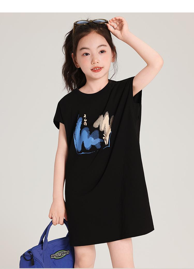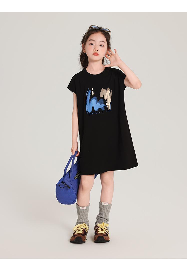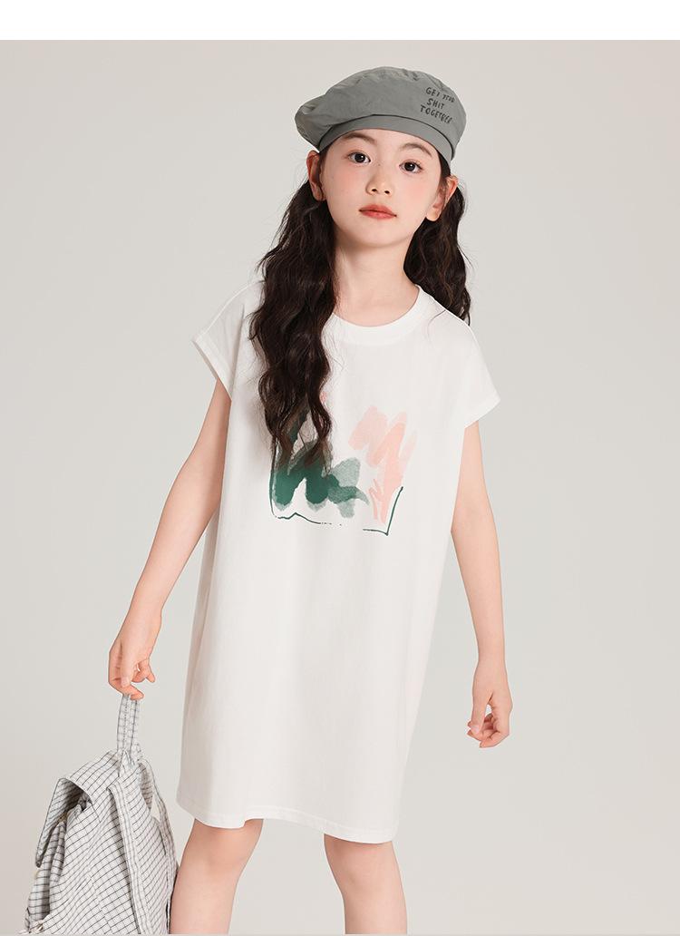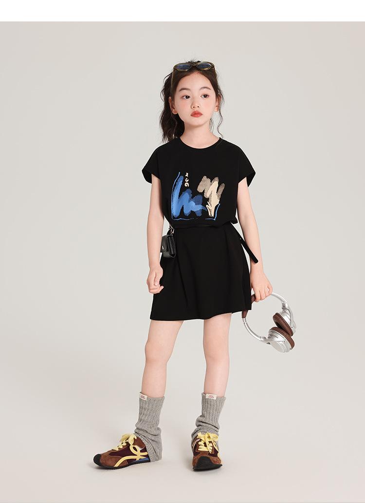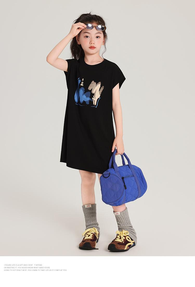 Pudding Ropa para Niños Haru Verano Falda Larga para Niñas 2025 Verano Nuevo Vestido Versátil de Manga Corta para Niños
