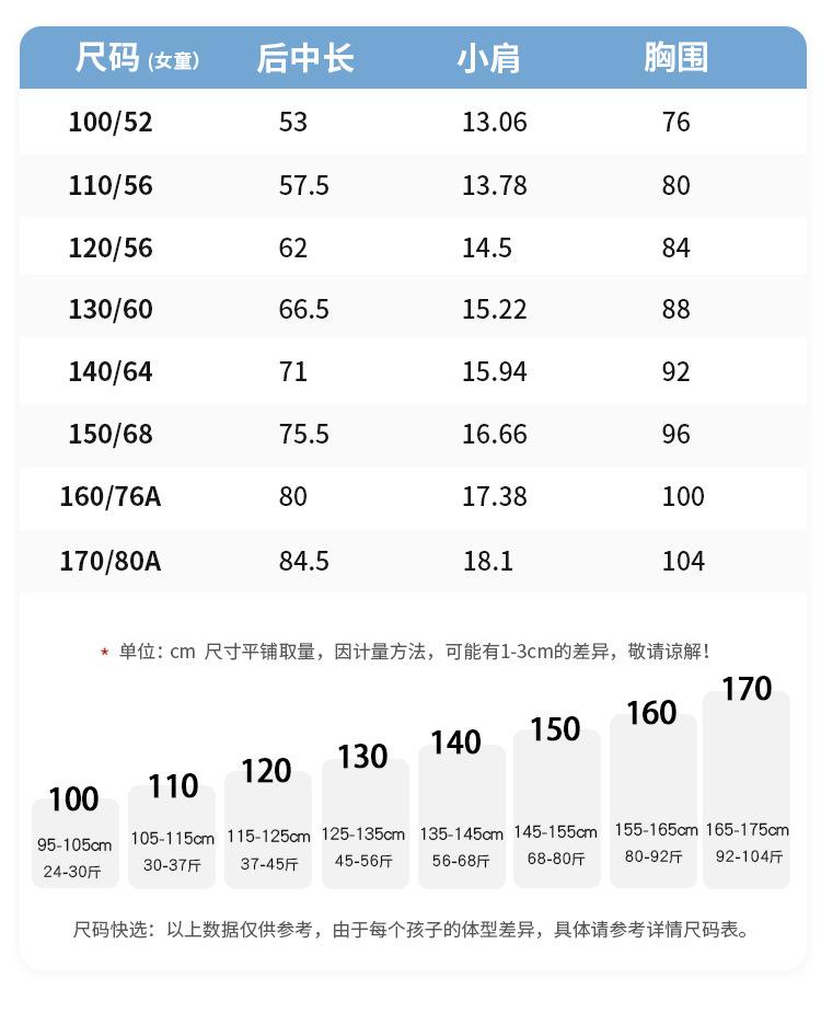 Recommended height for size 100 is 95-105cm, Size 110 recommended height 105-115cm, Size 120 recommended heigh...