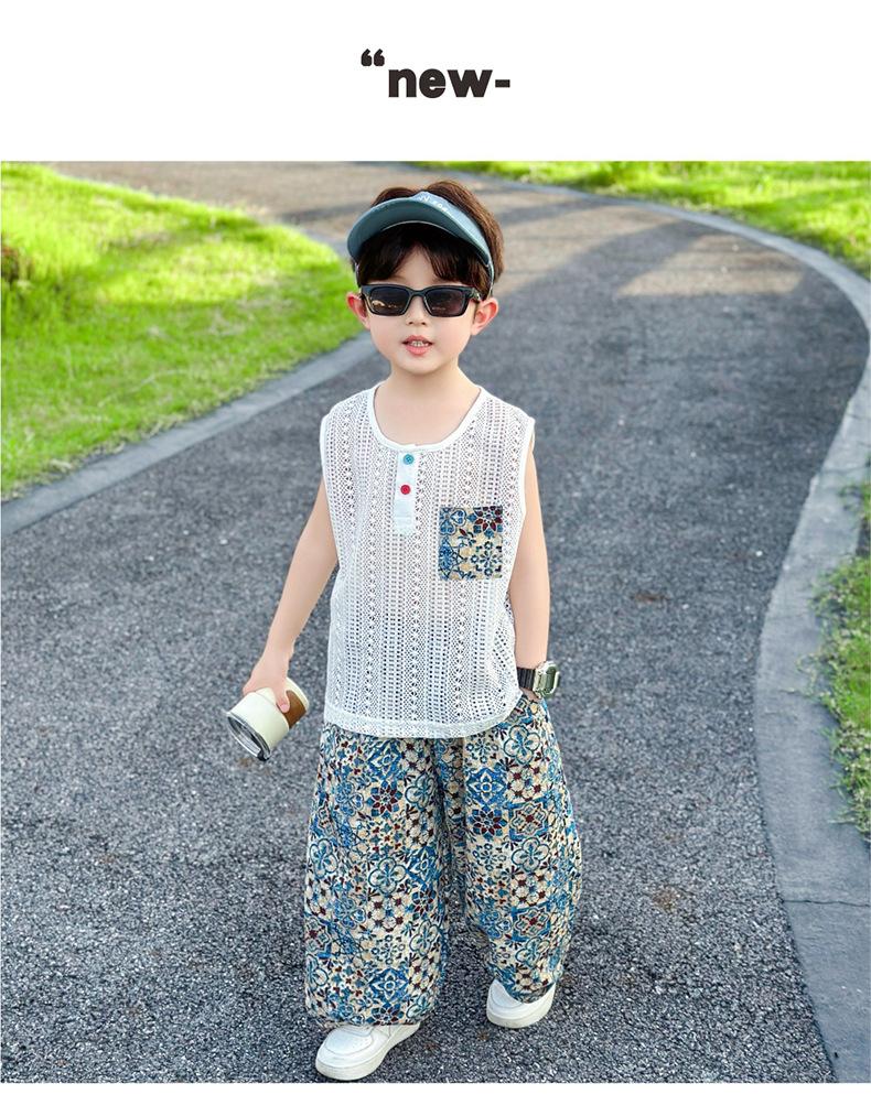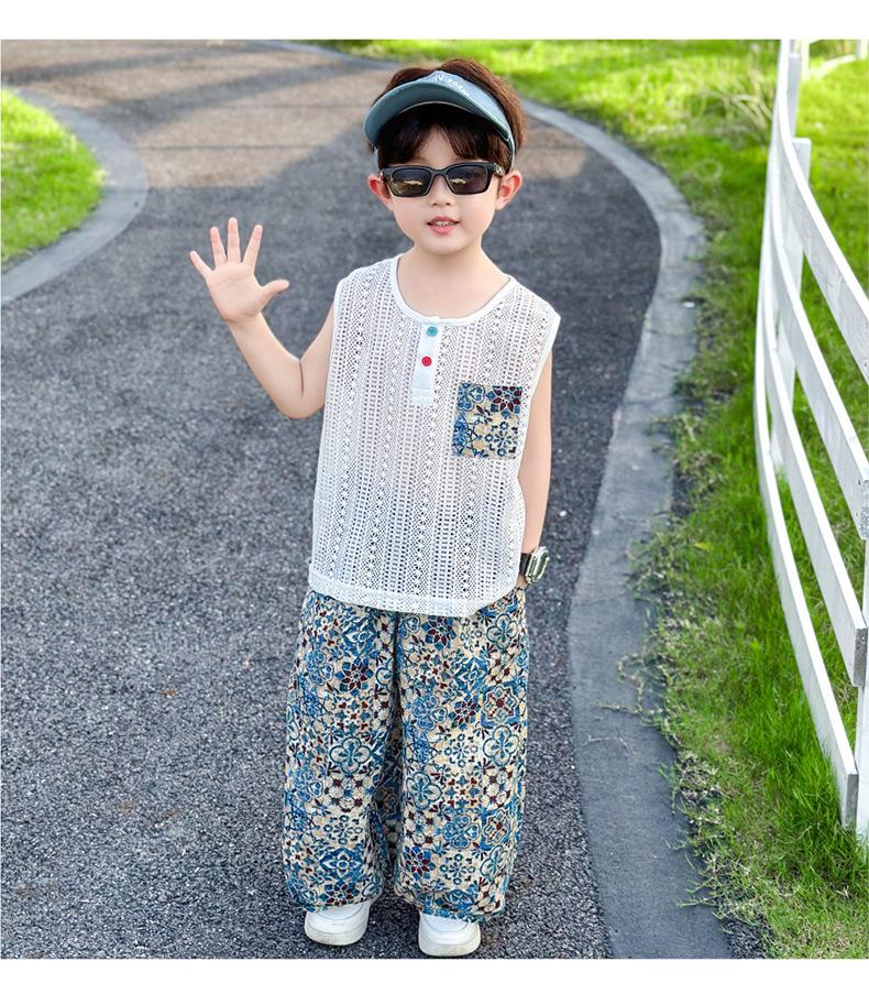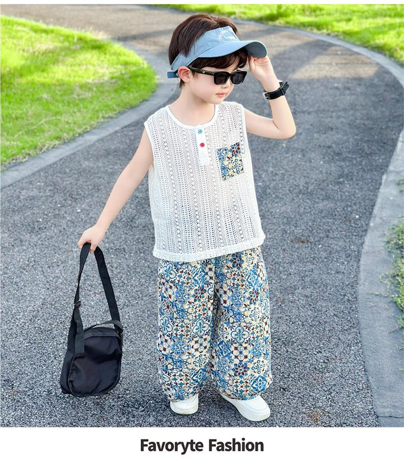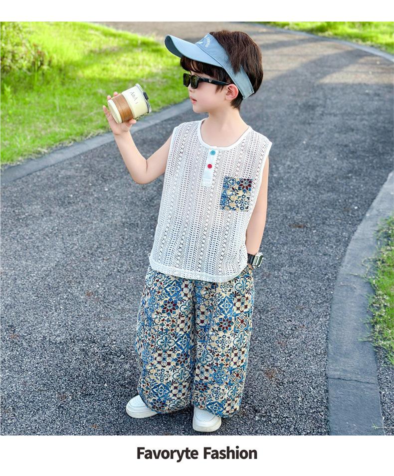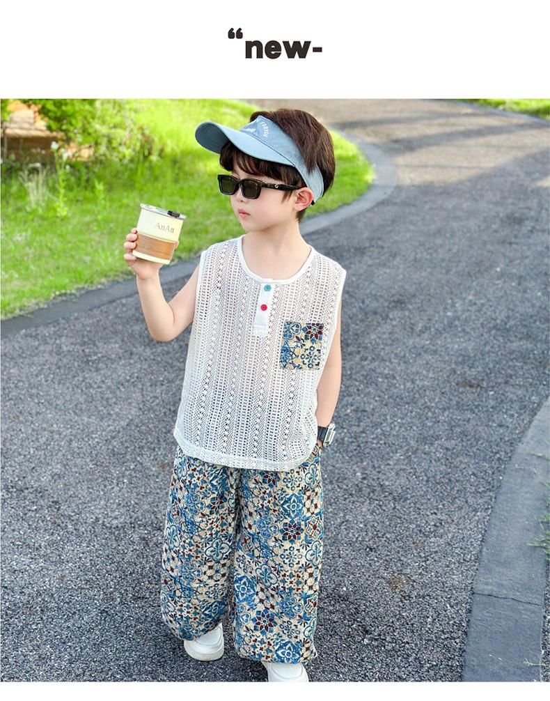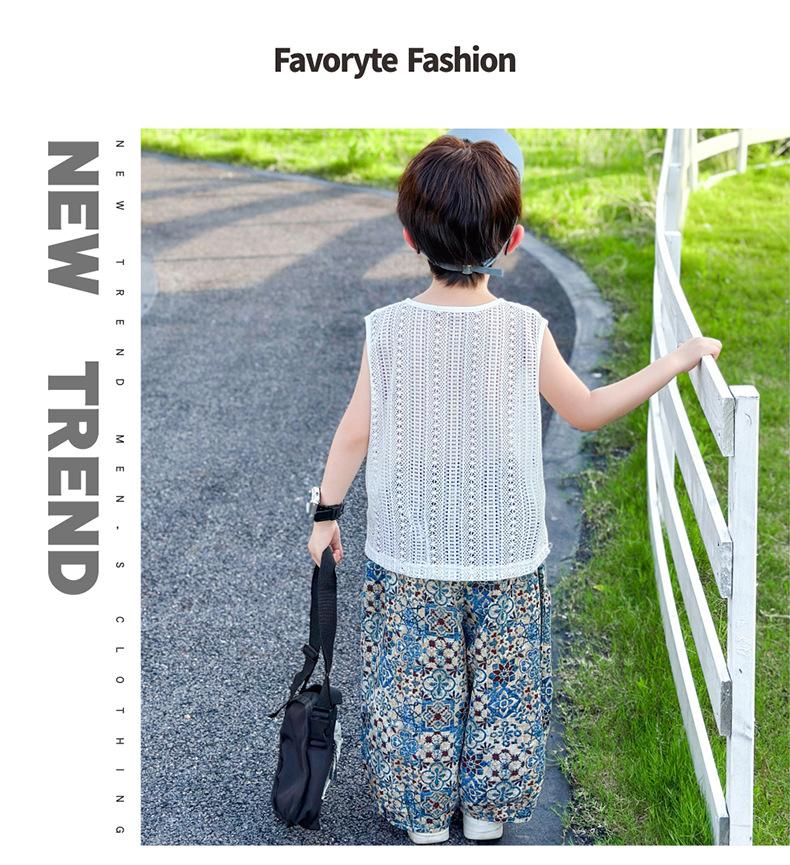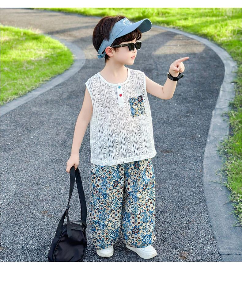 Traje Elegante para Niño 2025 Nuevo Estilo Verano Delgado Bebé Niño Calado Chaleco Urbano Pantalones Antimosquitos Ropa para Niño Pequeño