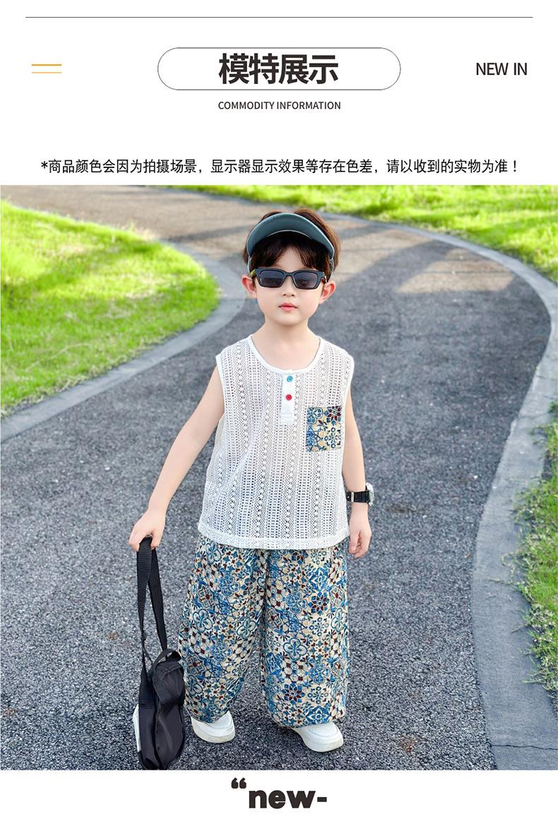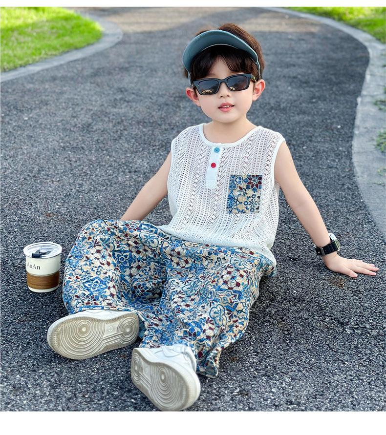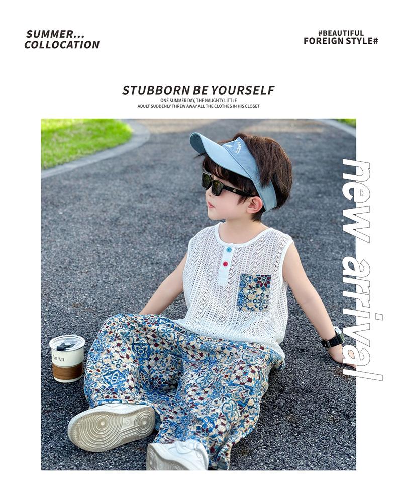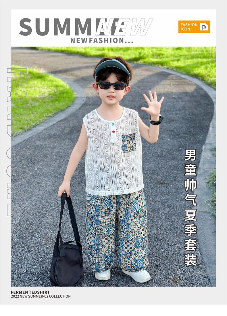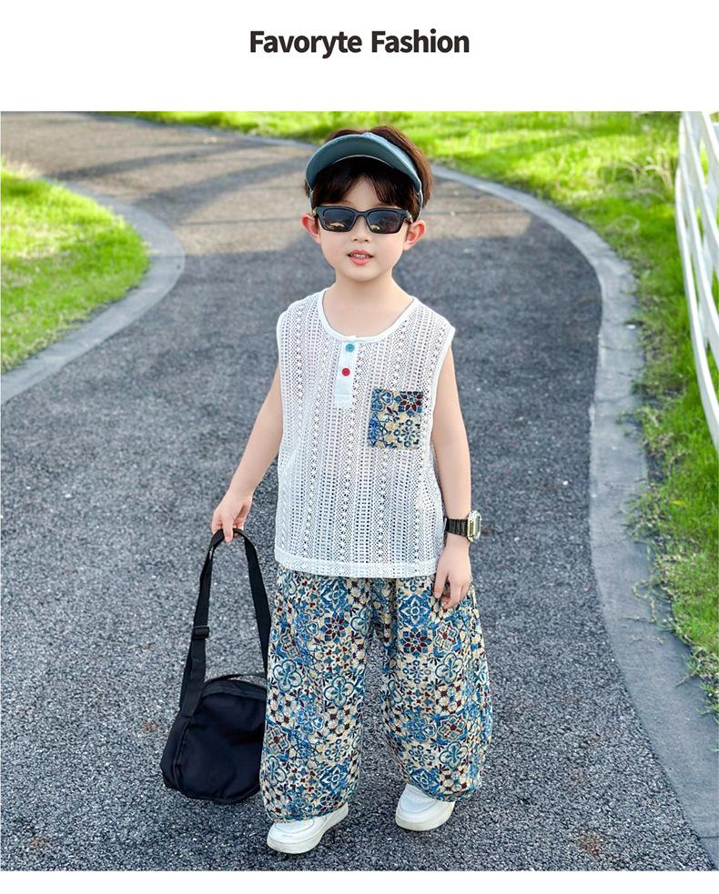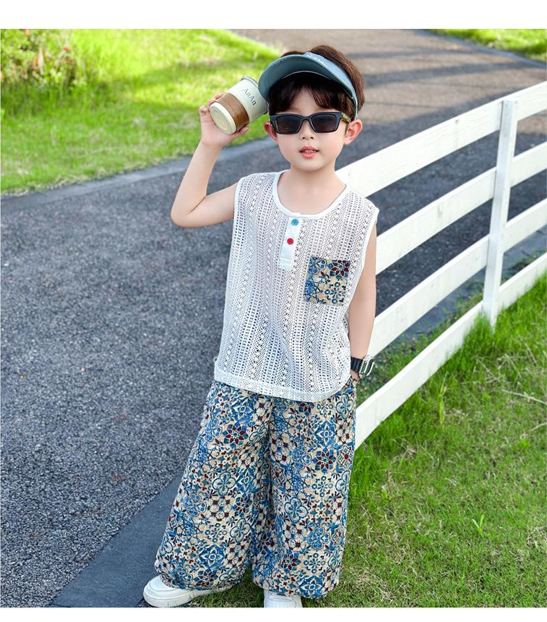 Traje Elegante para Niño 2025 Nuevo Estilo Verano Delgado Bebé Niño Calado Chaleco Urbano Pantalones Antimosquitos Ropa para Niño Pequeño