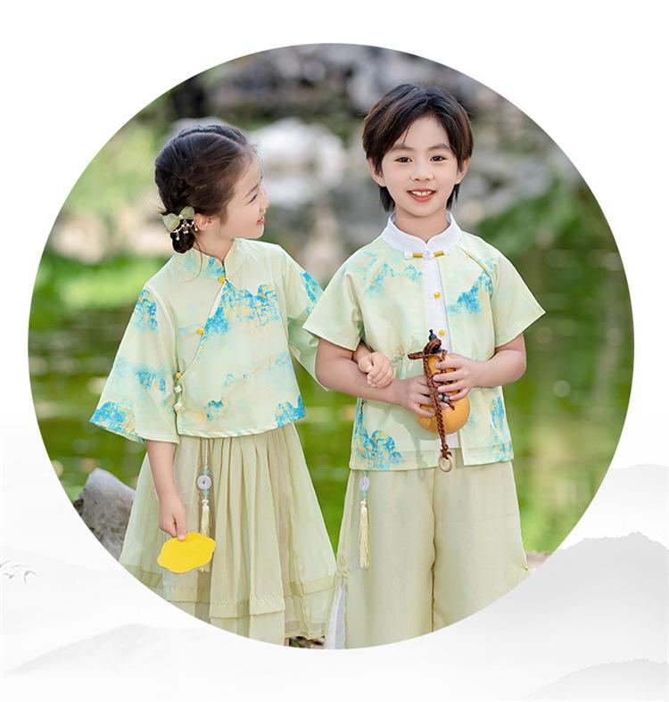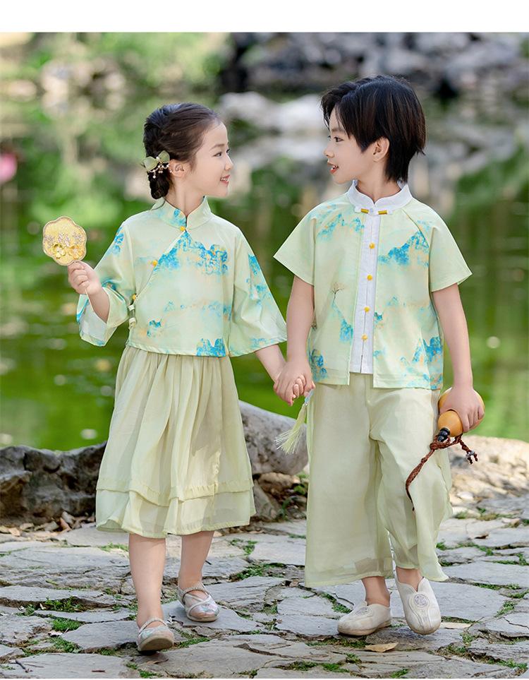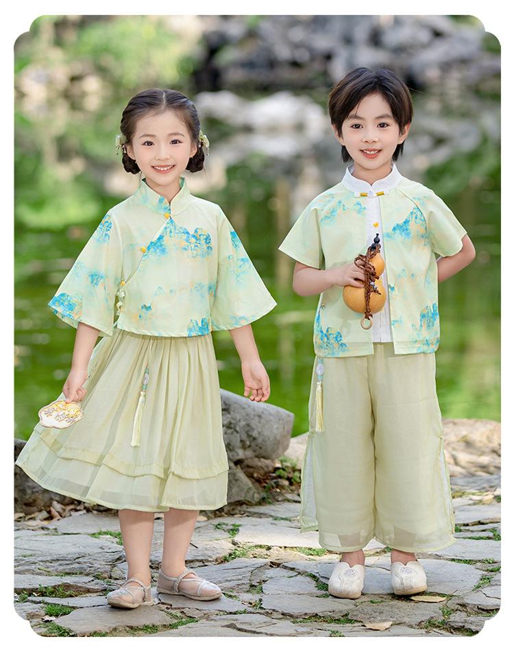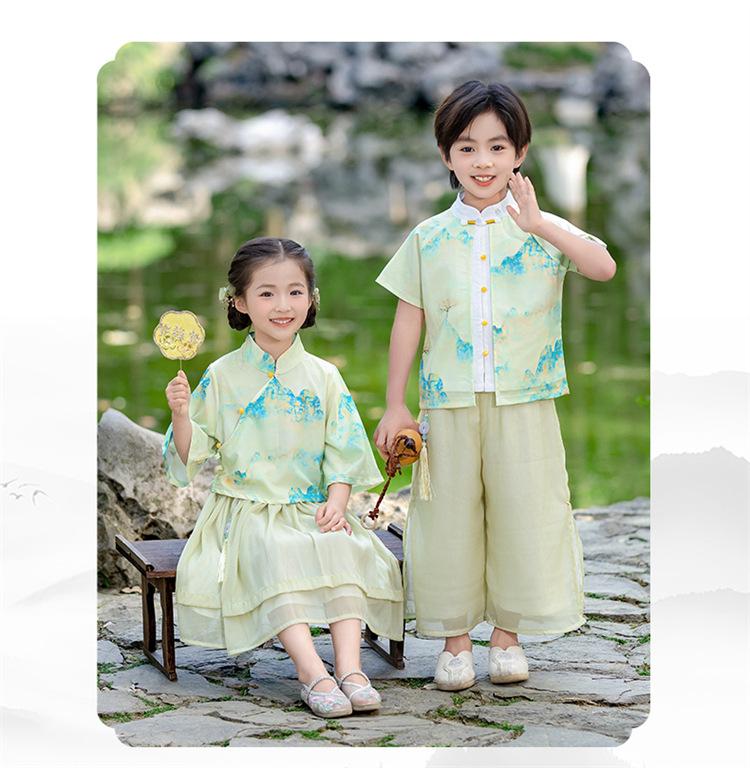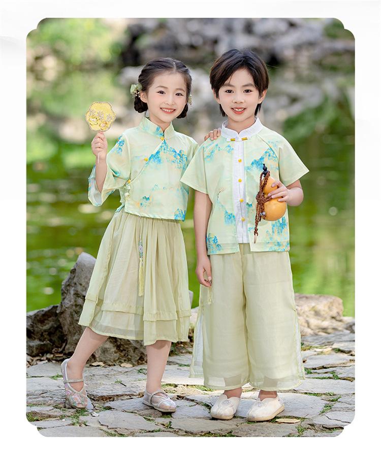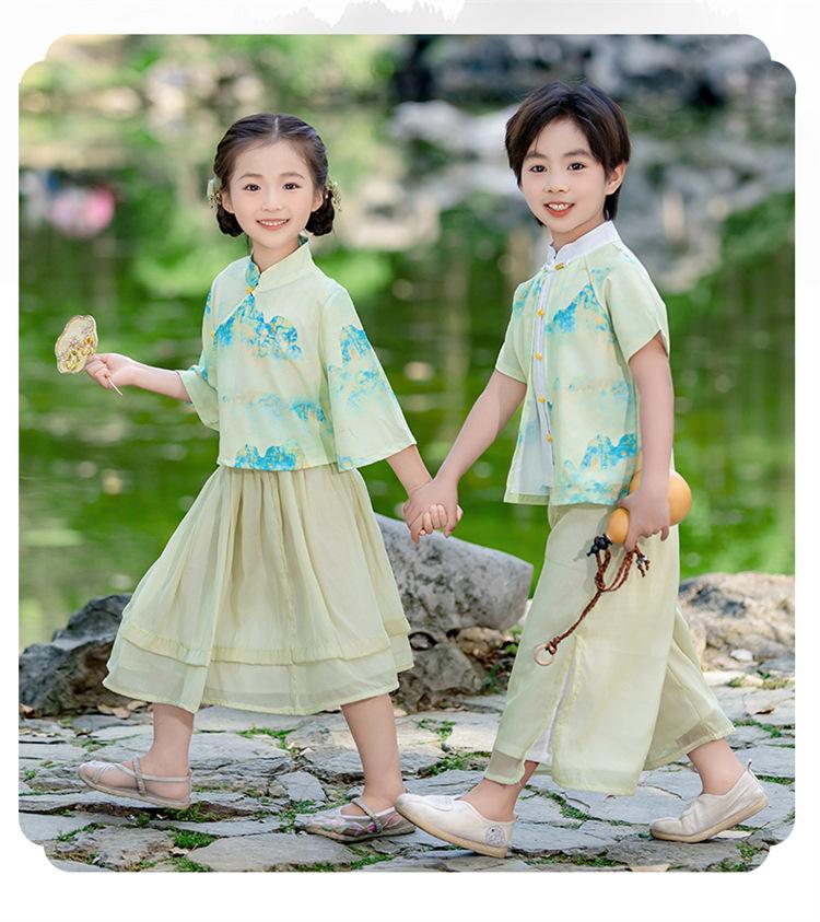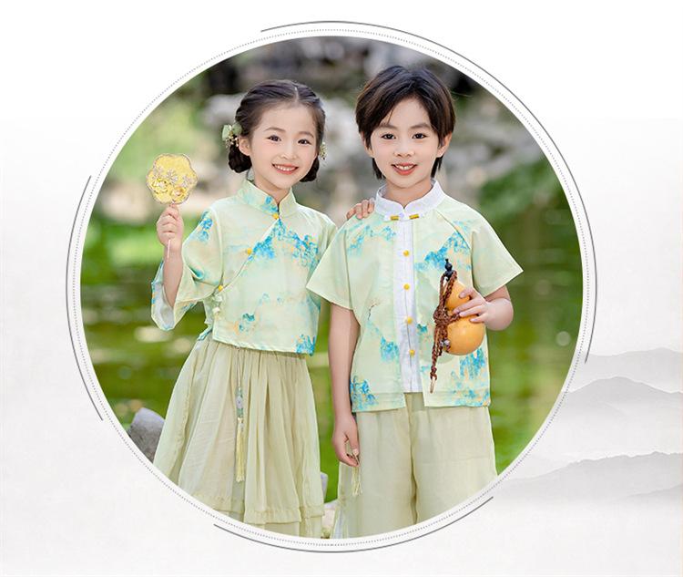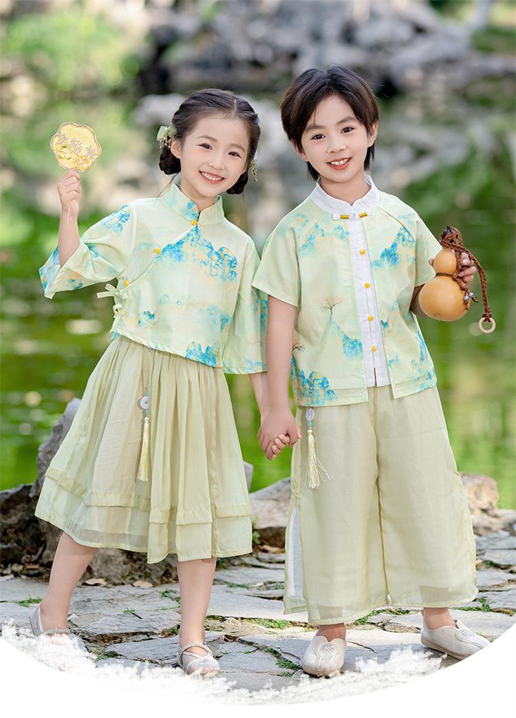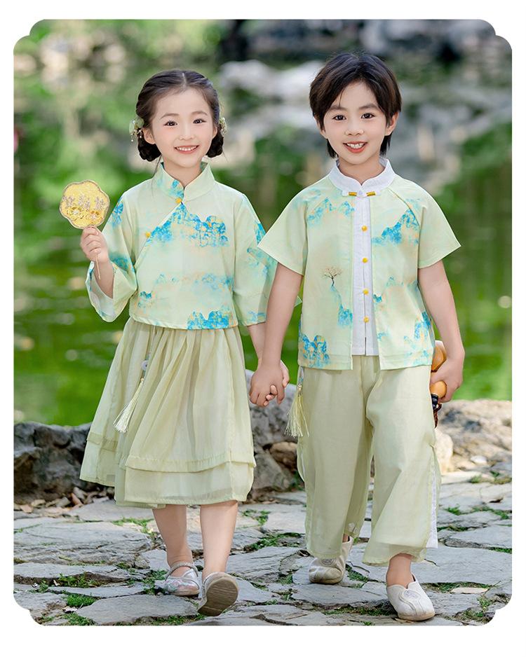 Día del Niño Niños y Niñas Hanfu Verano Estilo Chino Jardín de Niños Estilo Étnico Jardín de Niños Actuación Festival del Bote del Dragón Traje Tang