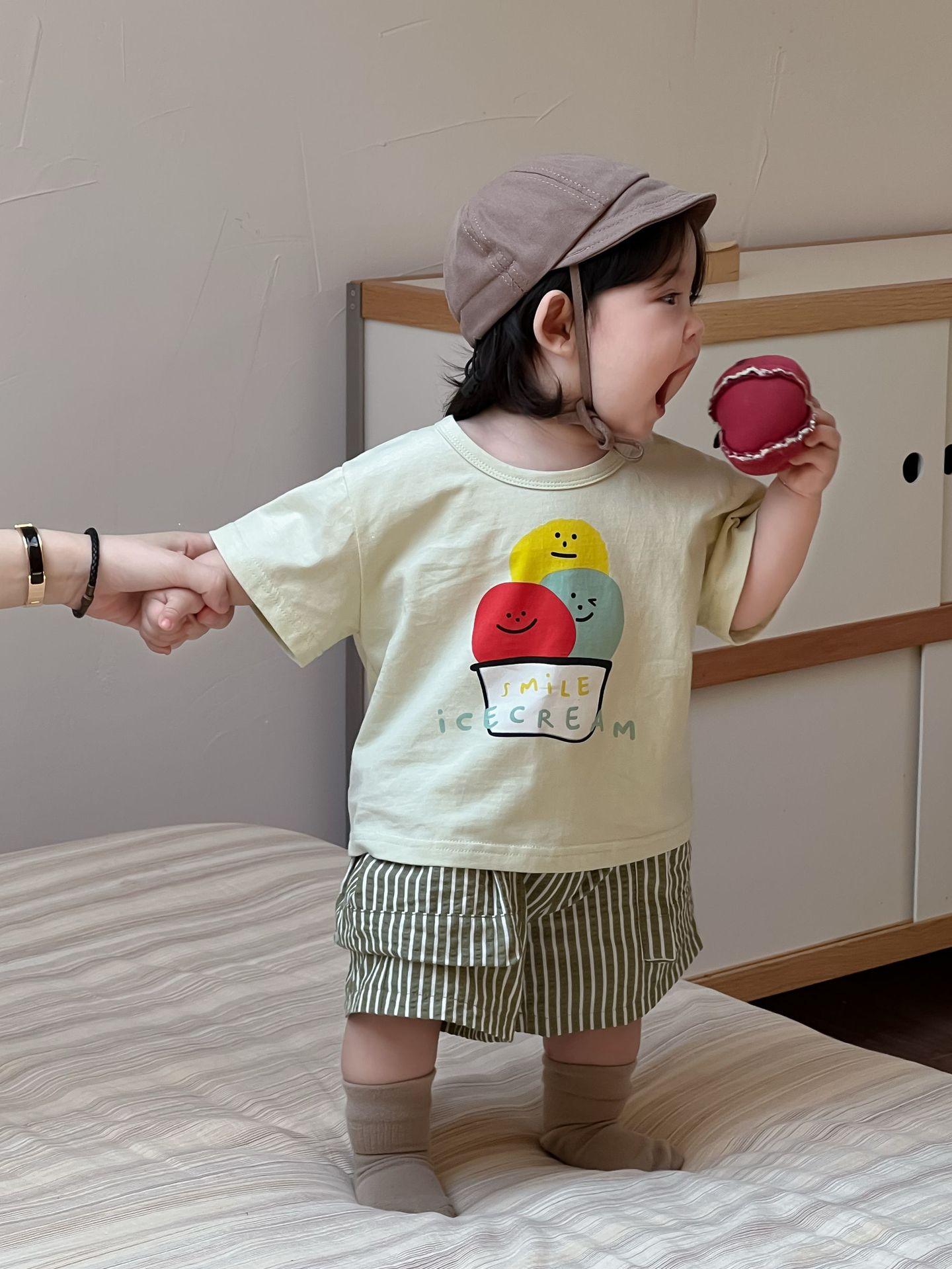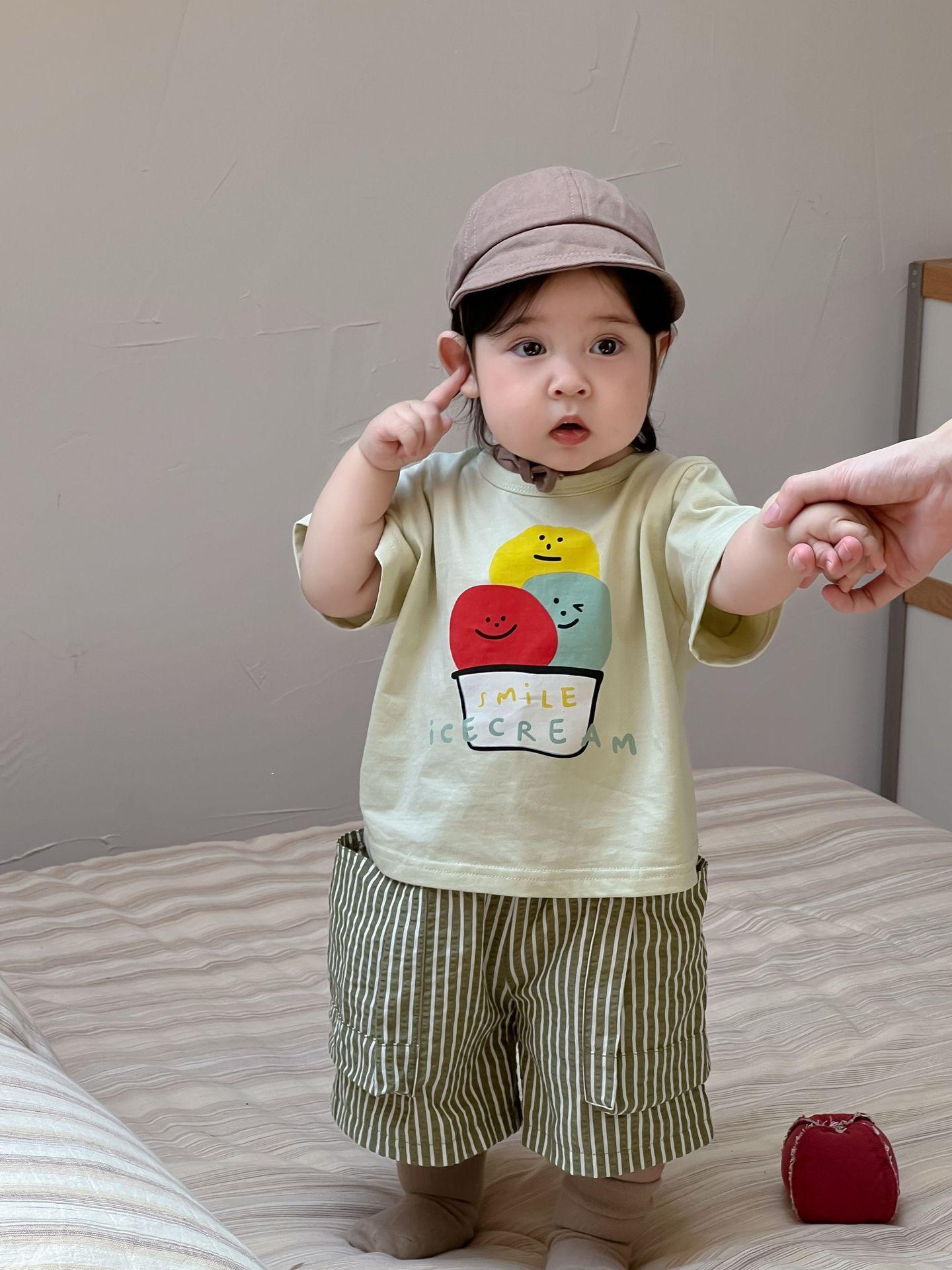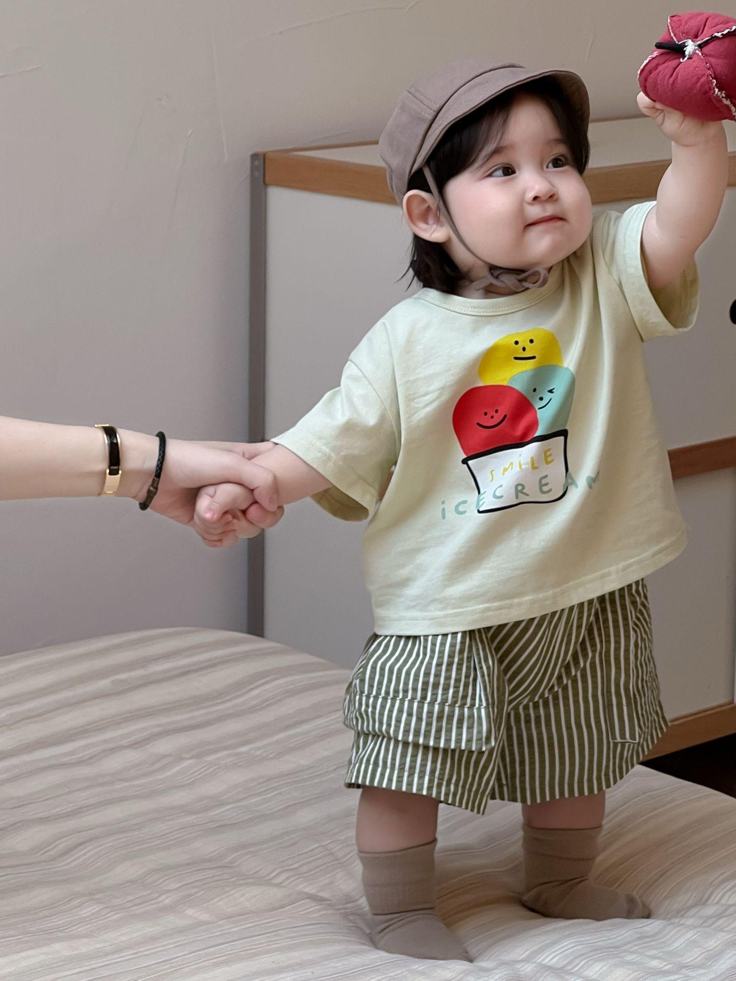 Algodón Verano Niños Estampado de Dibujos Animados Lindo Manga Corta Niños y Niñas Tops Estilo Coreano Camiseta de Bebé Estilo Delgado