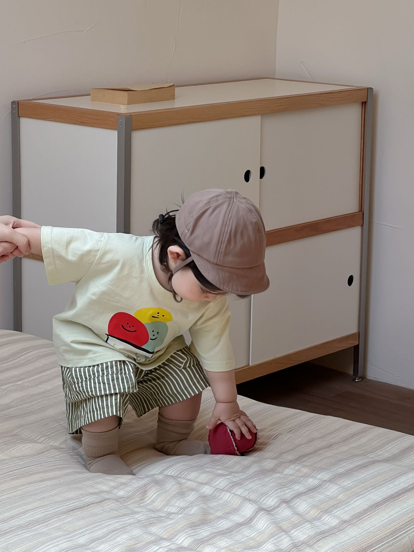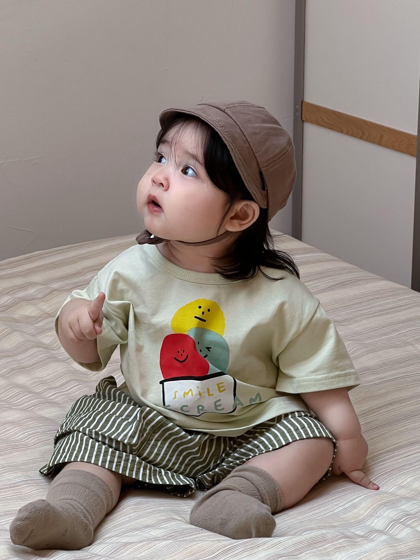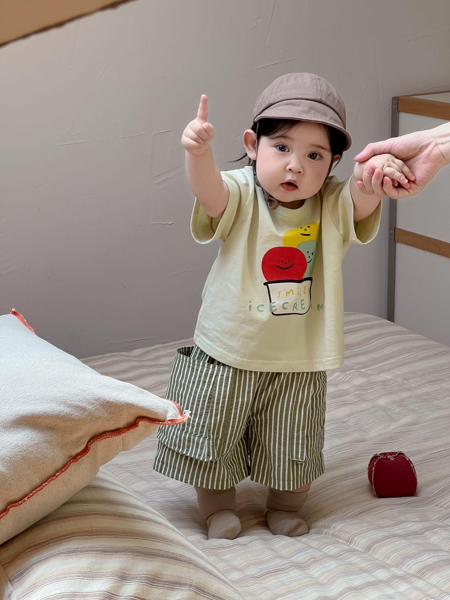 Algodón Verano Niños Estampado de Dibujos Animados Lindo Manga Corta Niños y Niñas Tops Estilo Coreano Camiseta de Bebé Estilo Delgado