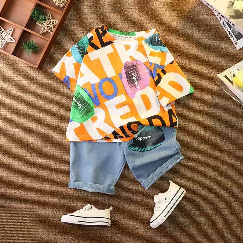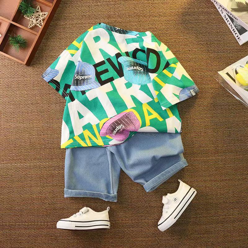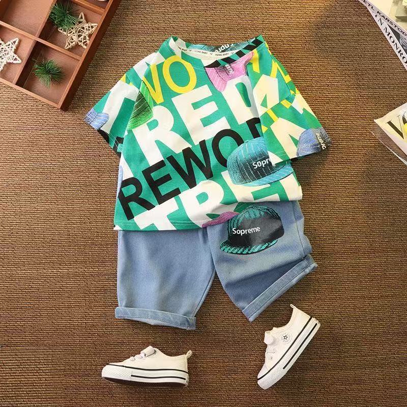 Traje de Verano de Manga Corta para Niños Guapo Ropa de Verano para Niños Nuevo Estilo Coreano para Bebé Conjunto Casual de Dos Piezas a la Moda