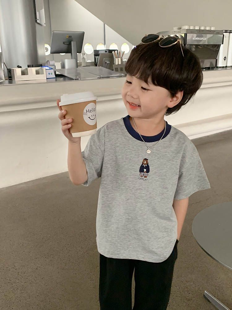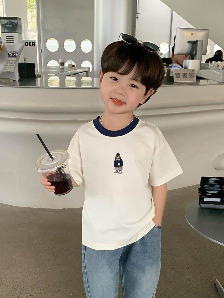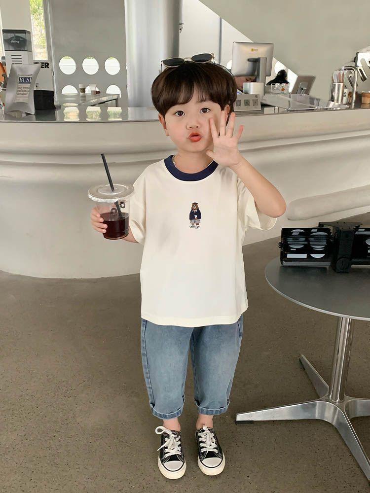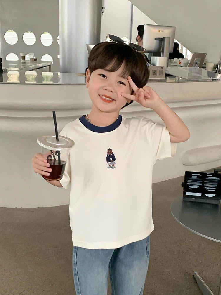 Camiseta de Manga Corta para Niño 2025 Nuevo Estilo Moda Infantil Versátil Tops Guapos de Verano para Niños Ropa de Verano para Bebé