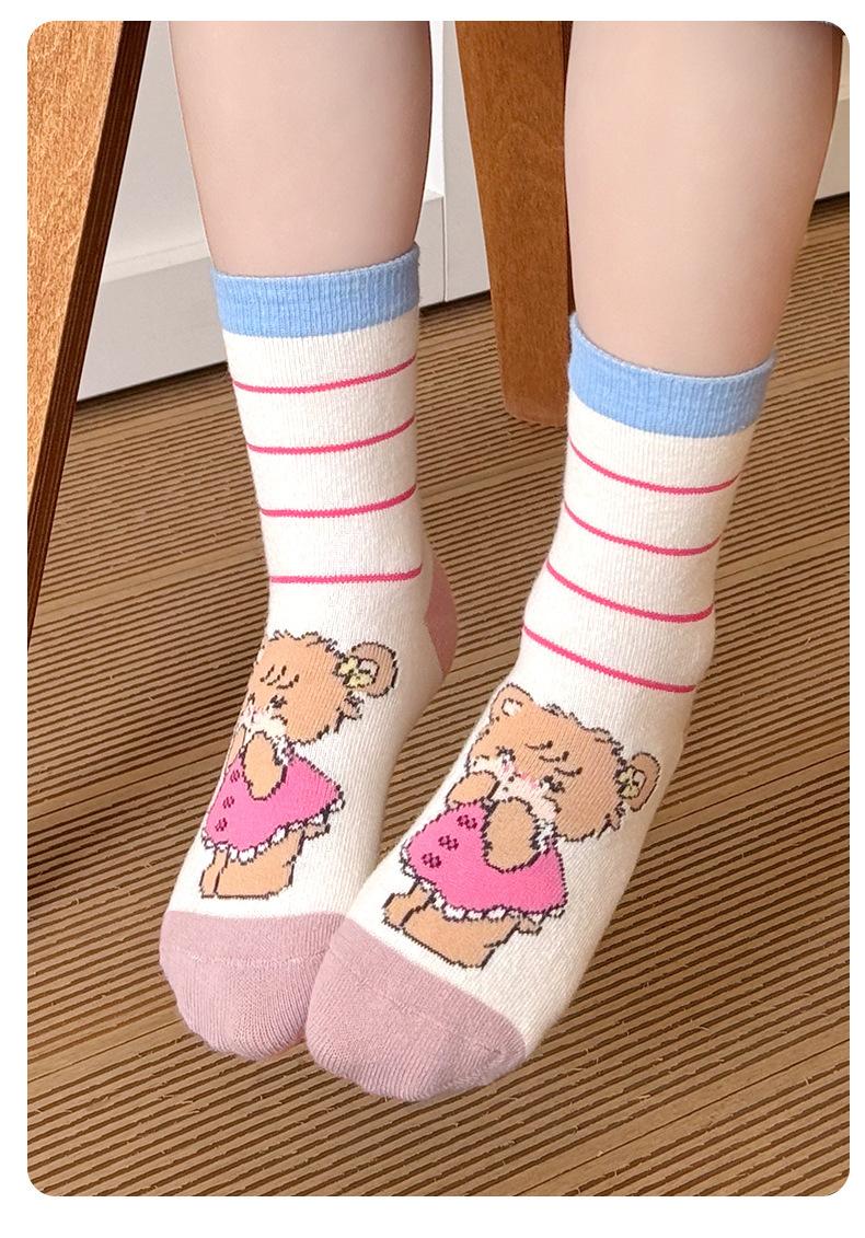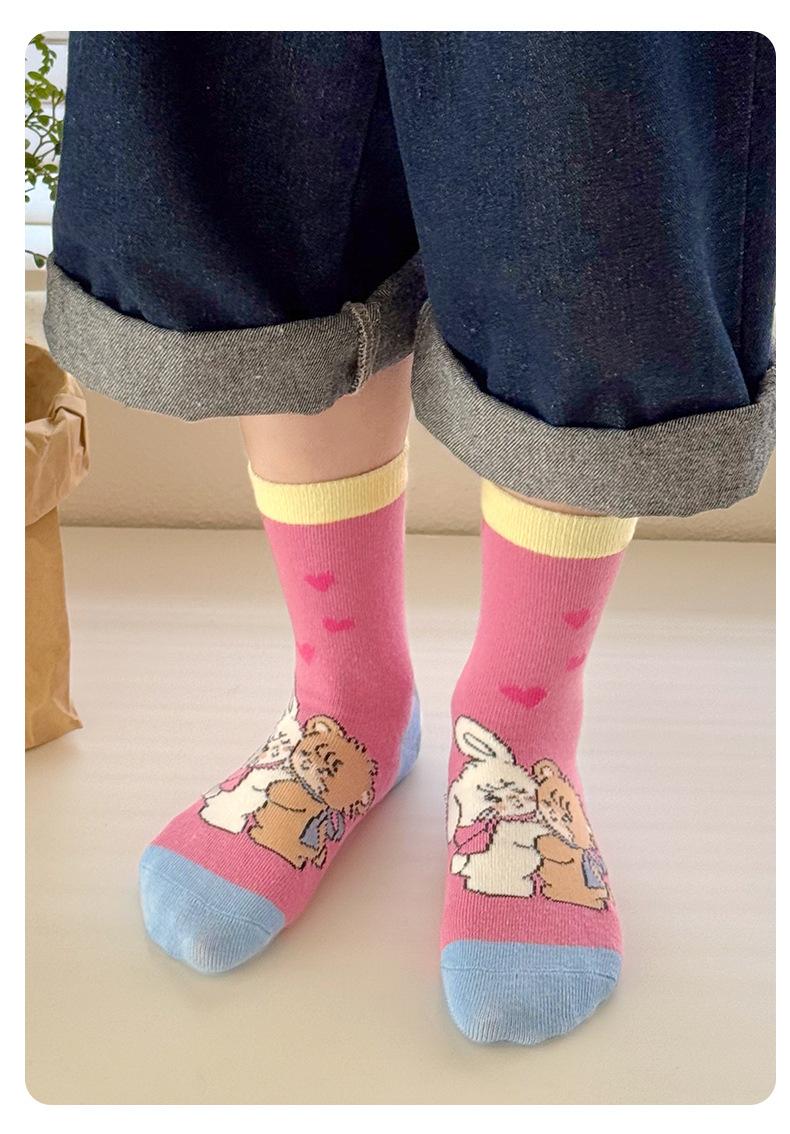 Calcetines Nuevos para Niñas 2025 Otoño e Invierno Dulces Calcetines de Media Caña Calcetines de Dibujos Animados para Niños Calcetines de Algodón Rosa de Primavera y Otoño