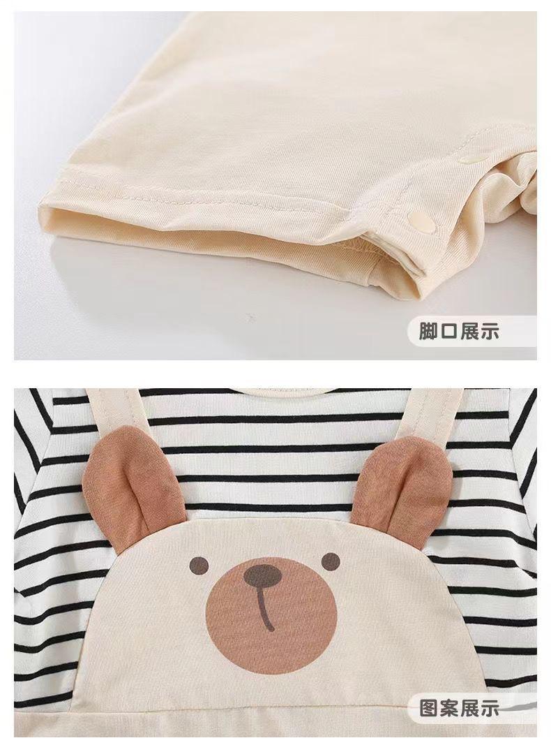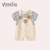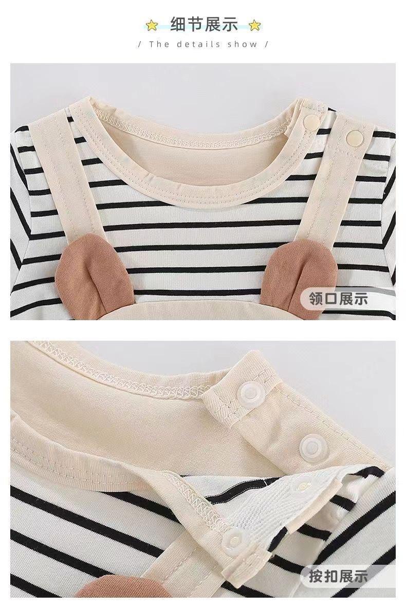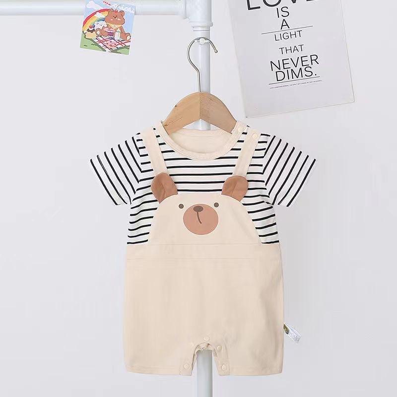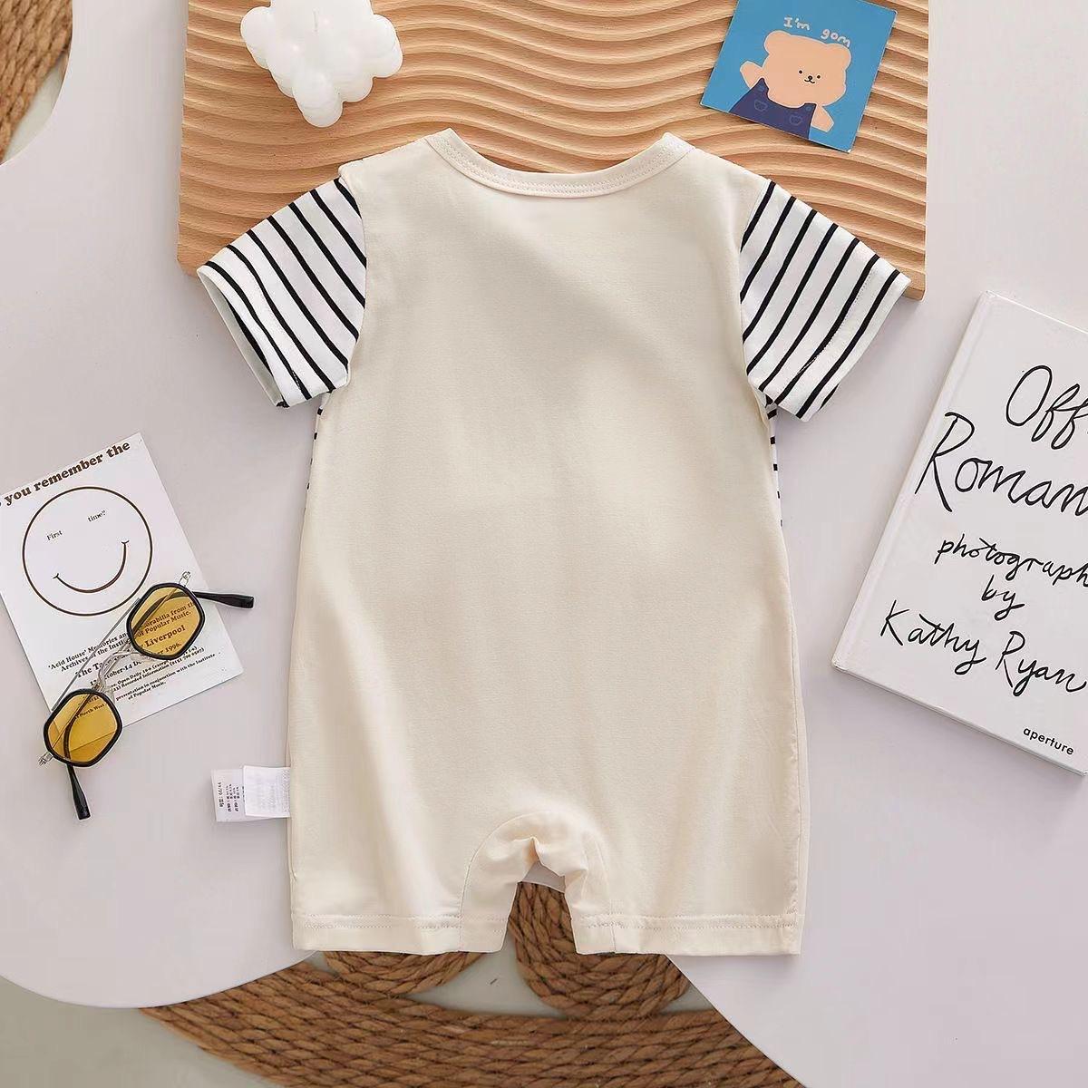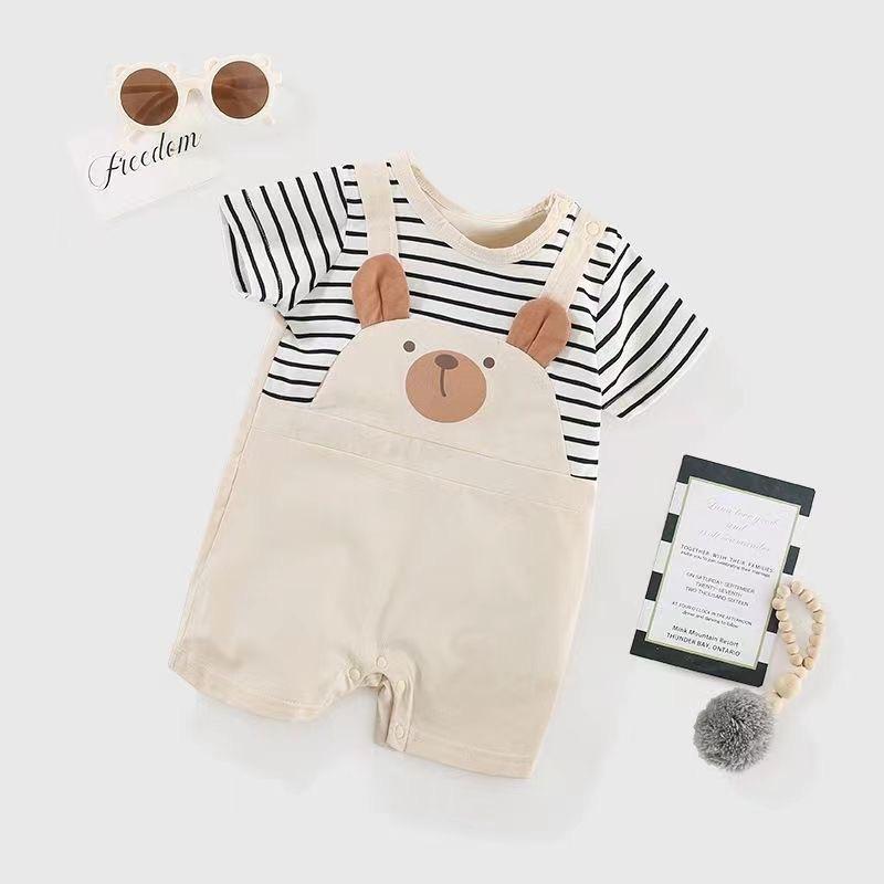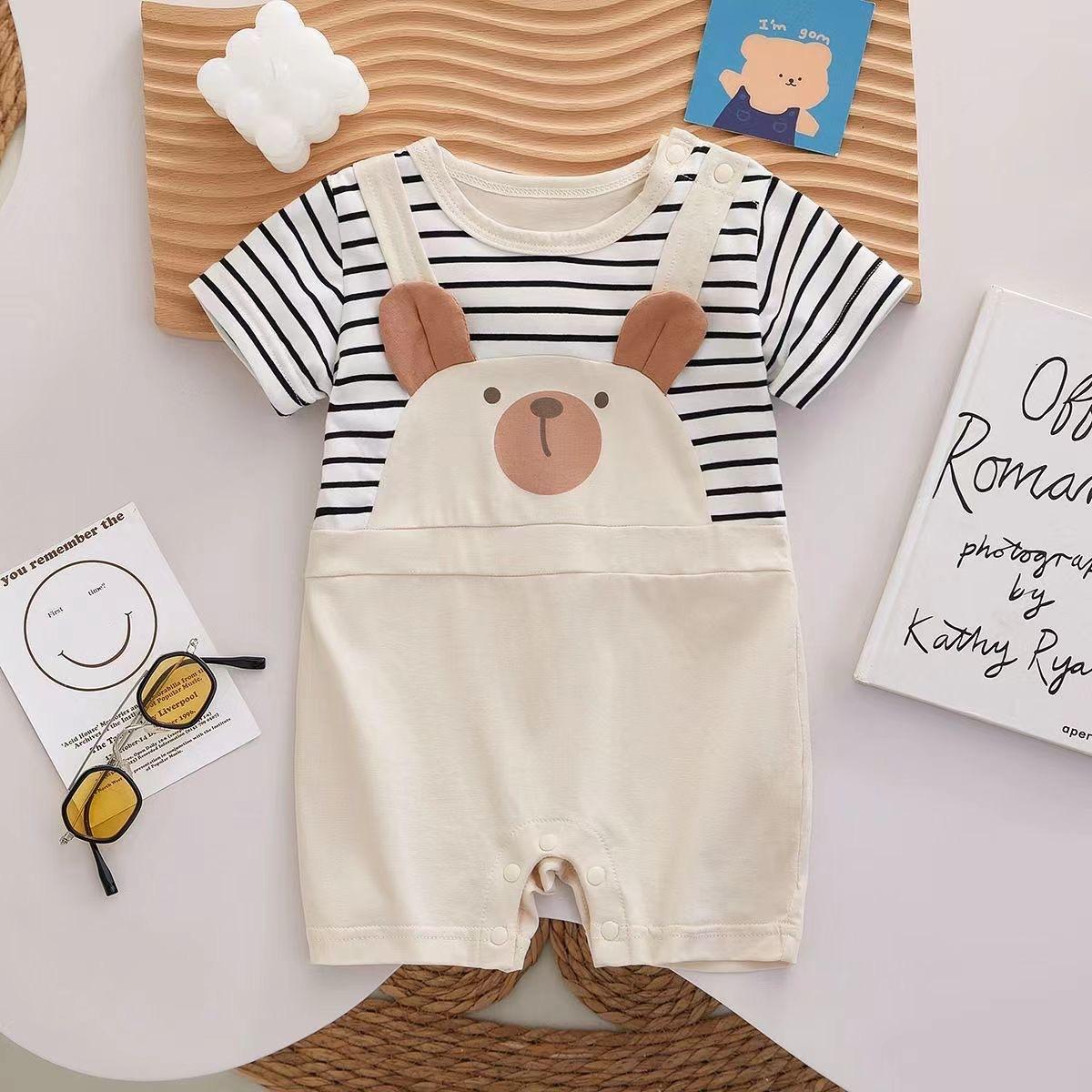 Mameluco de bebé de verano delgado de manga corta de algodón para bebés niños y niñas ropa para gatear ropa para recién nacido oso de dos piezas falsas marea