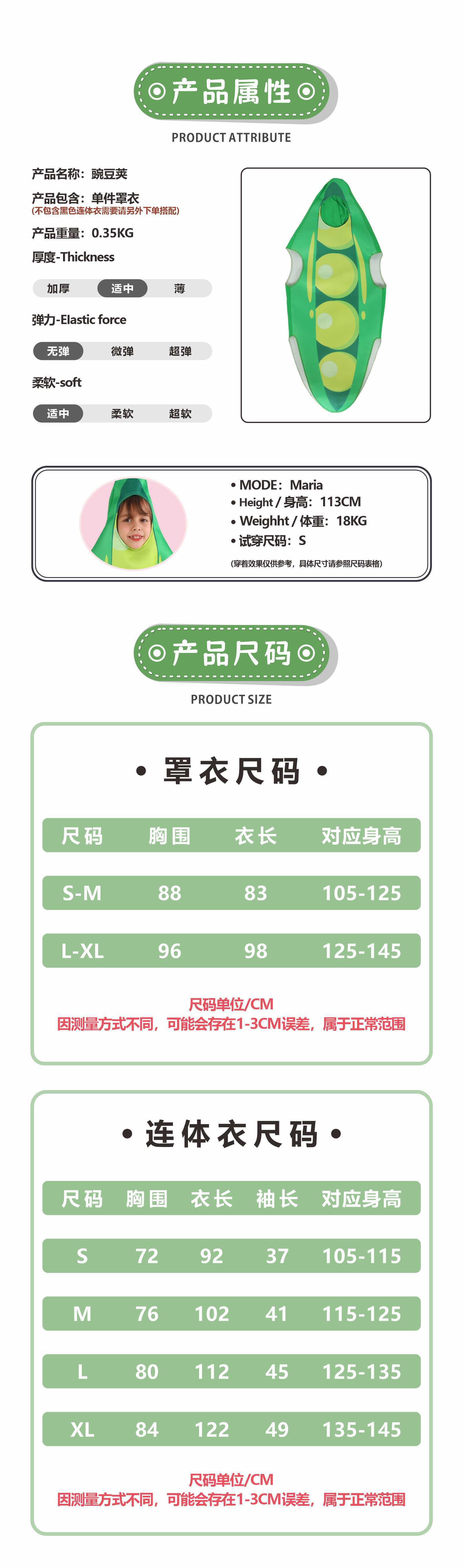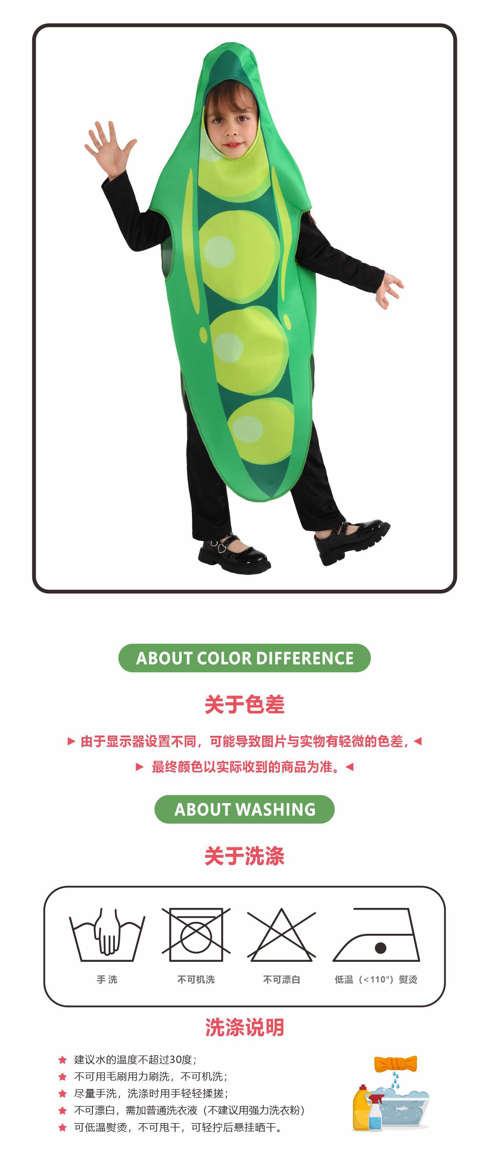 [Producto Nuevo] Bata de Halloween para Niños Disfraz de Vaina de Guisante Disfraz para Actuación Escolar