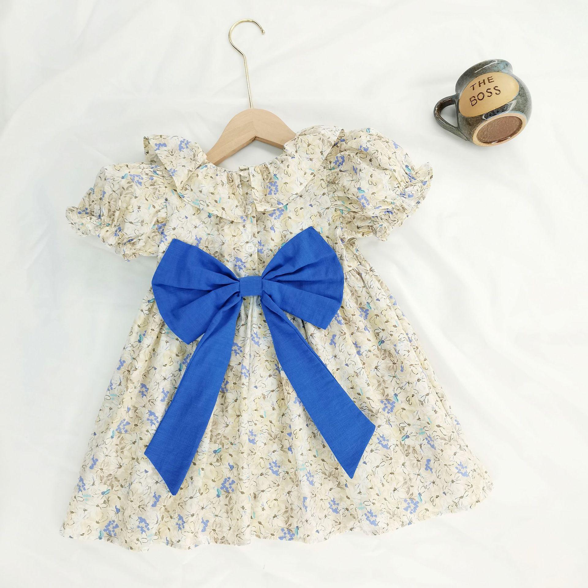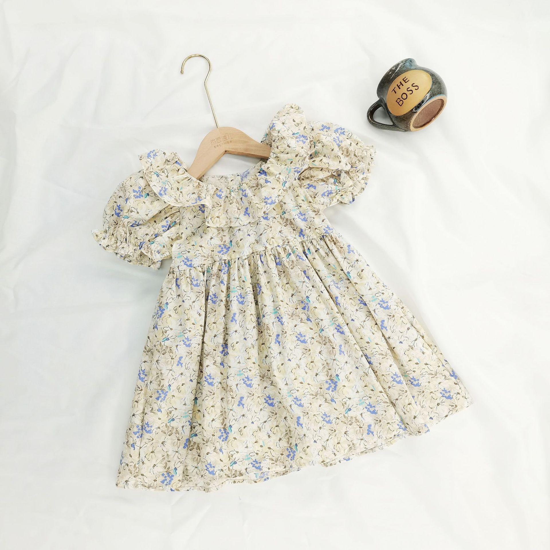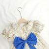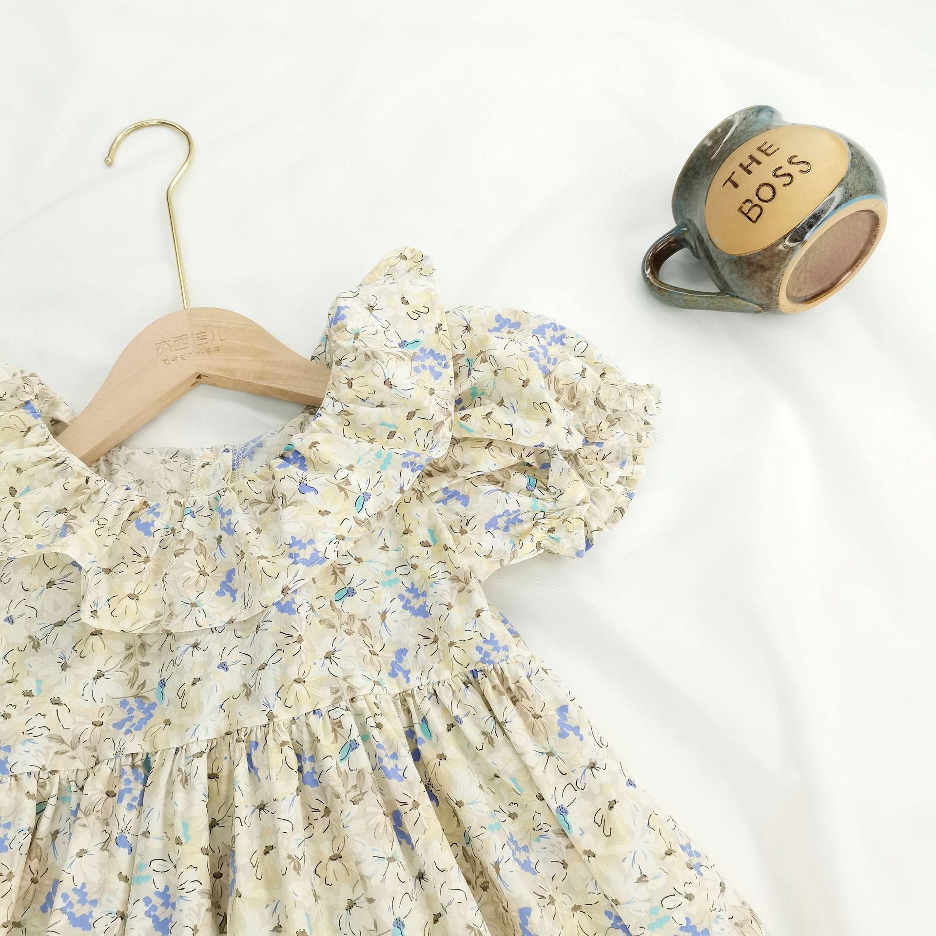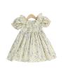 Vestido Nuevo de Verano para Niñas y Bebés Estilo Coreano Ins Retro Dulce Floral Manga Abullonada Lazo Vestido de Princesa